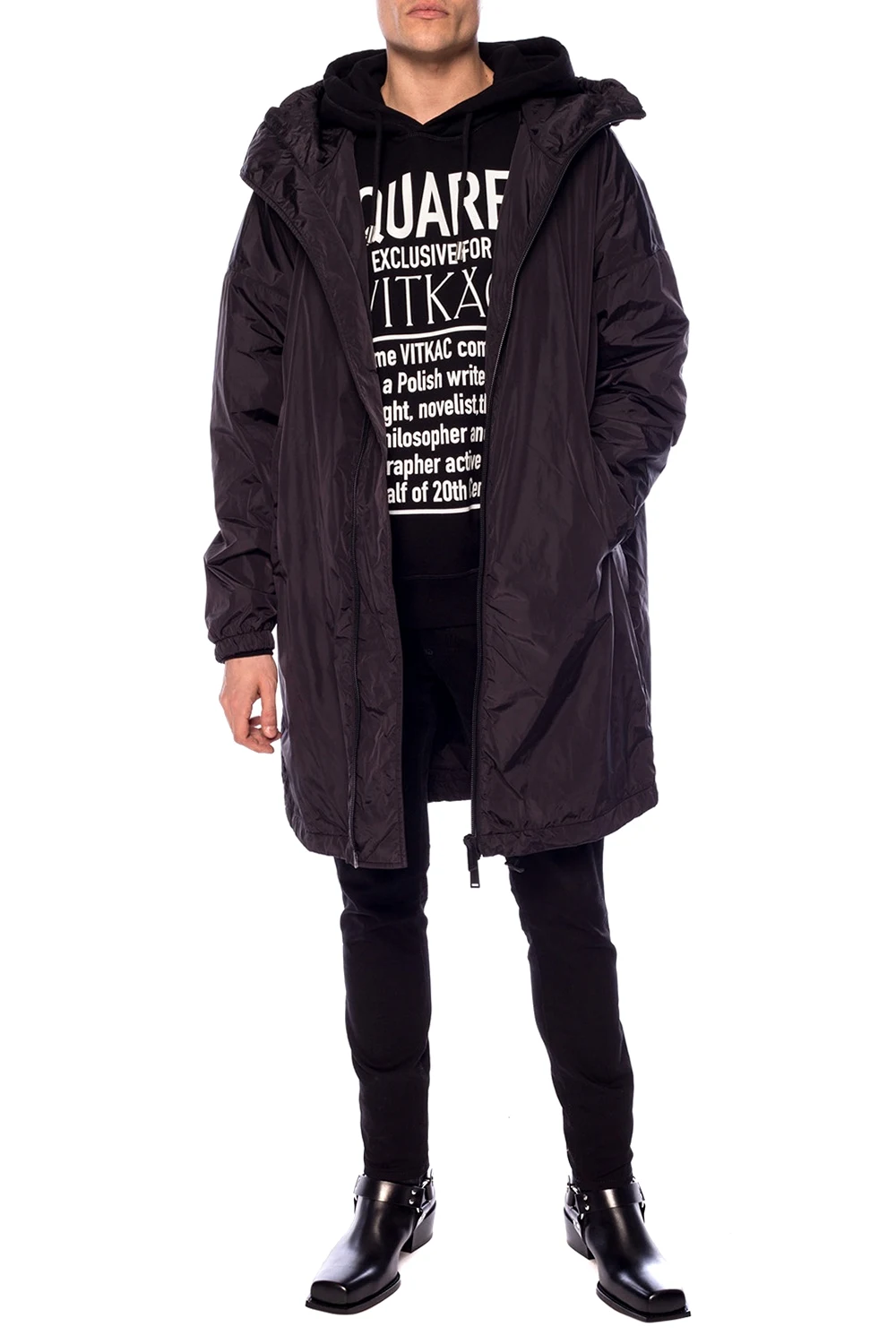 Black hooded sweatshirt from Dsquared2 x Vitkac, limited ‘Exclusive for Vitkac’ collection. Made of cotton. Decorated with a white logo print. Round neck. Drawstring hood. Long sleeves with elasticated cuffs.