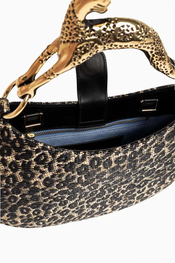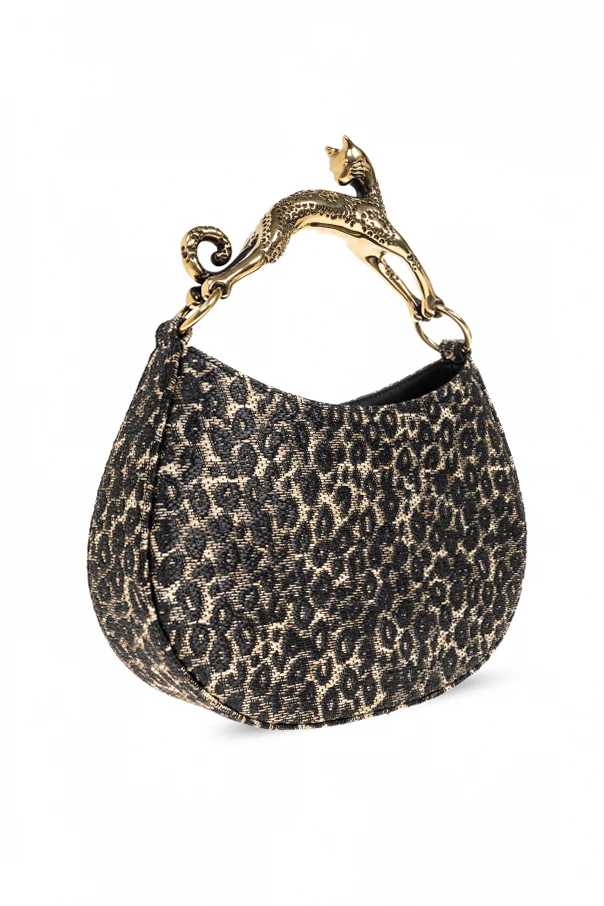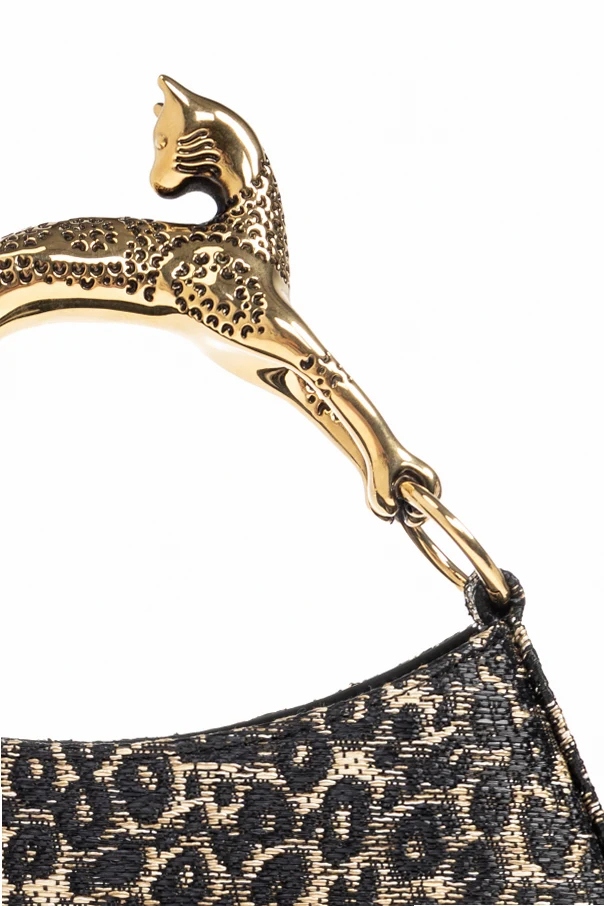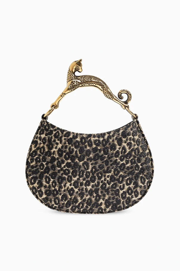 The ‘Hobo Cat’ Handbag by Lanvin evokes urban sophistication through its distinctive semi-circular silhouette and relaxed yet elegant drape. This exquisite piece showcases a leopard-print motif in rich brown hues , creating a refined, modern allure. The exterior—crafted from beautifully textured material with a subtle sheen—combines luxurious appearance with impressive durability, while the fully lined leather interior ensures a plush and lasting finish. A true statement detail, the stylized handle takes the form of a polished golden cat figurine , meticulously crafted for a unique and sculptural effect. A prominent zip closure secures your essentials with ease, seamlessly marrying functionality and opulence. Why choose this product? Exclusive signature design by Lanvin Opulent golden cat-shaped handle for a unique touch Elegant leopard-print pattern in timeless brown Durable, textured exterior with a sumptuous leather lining Secure zip closure for peace of mind