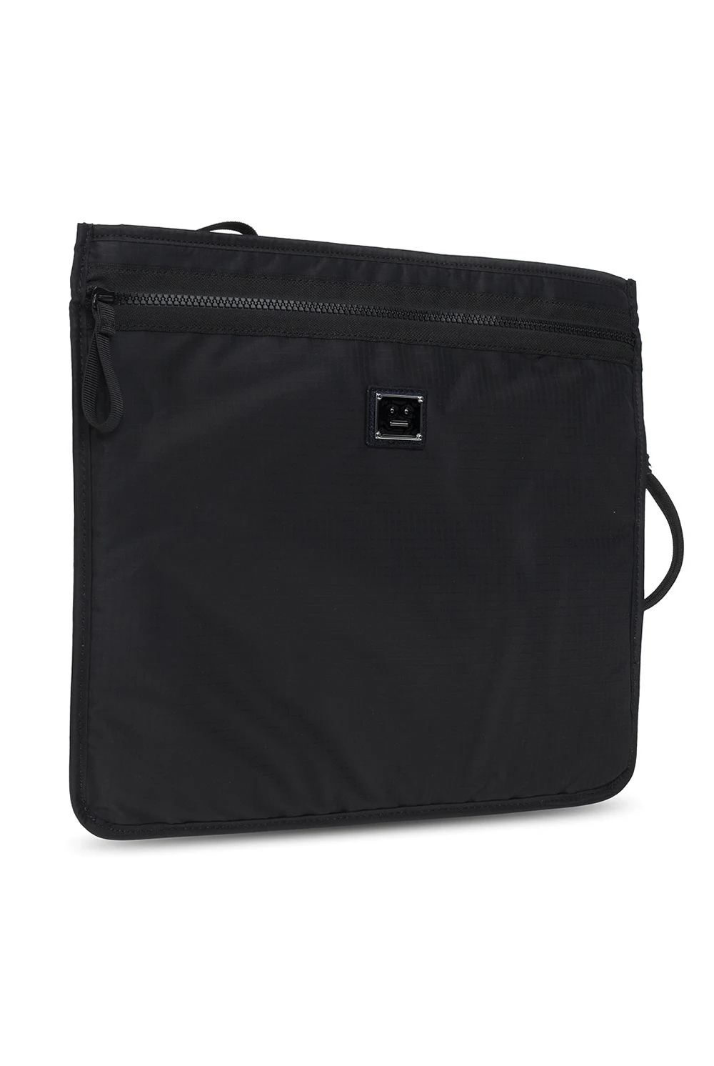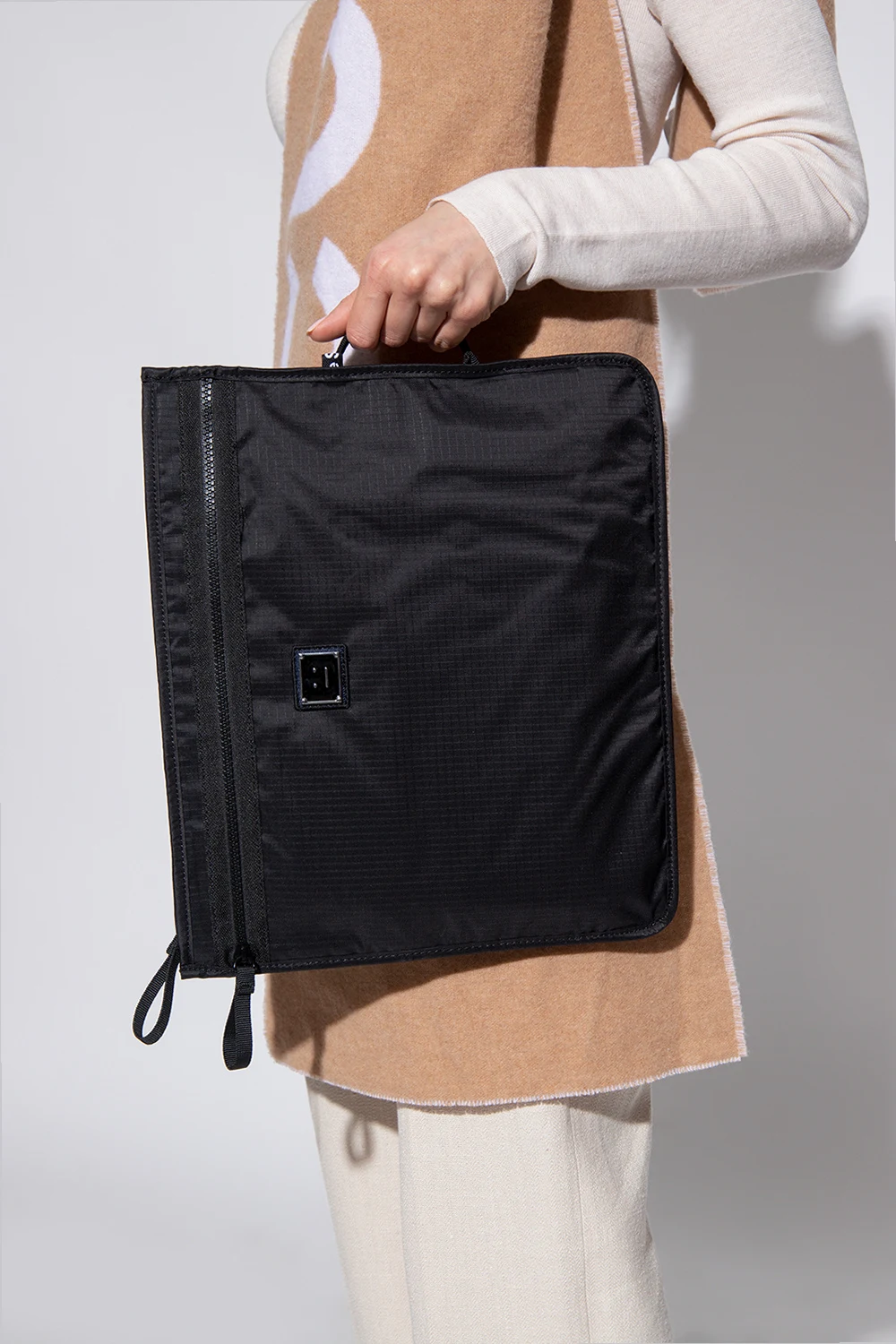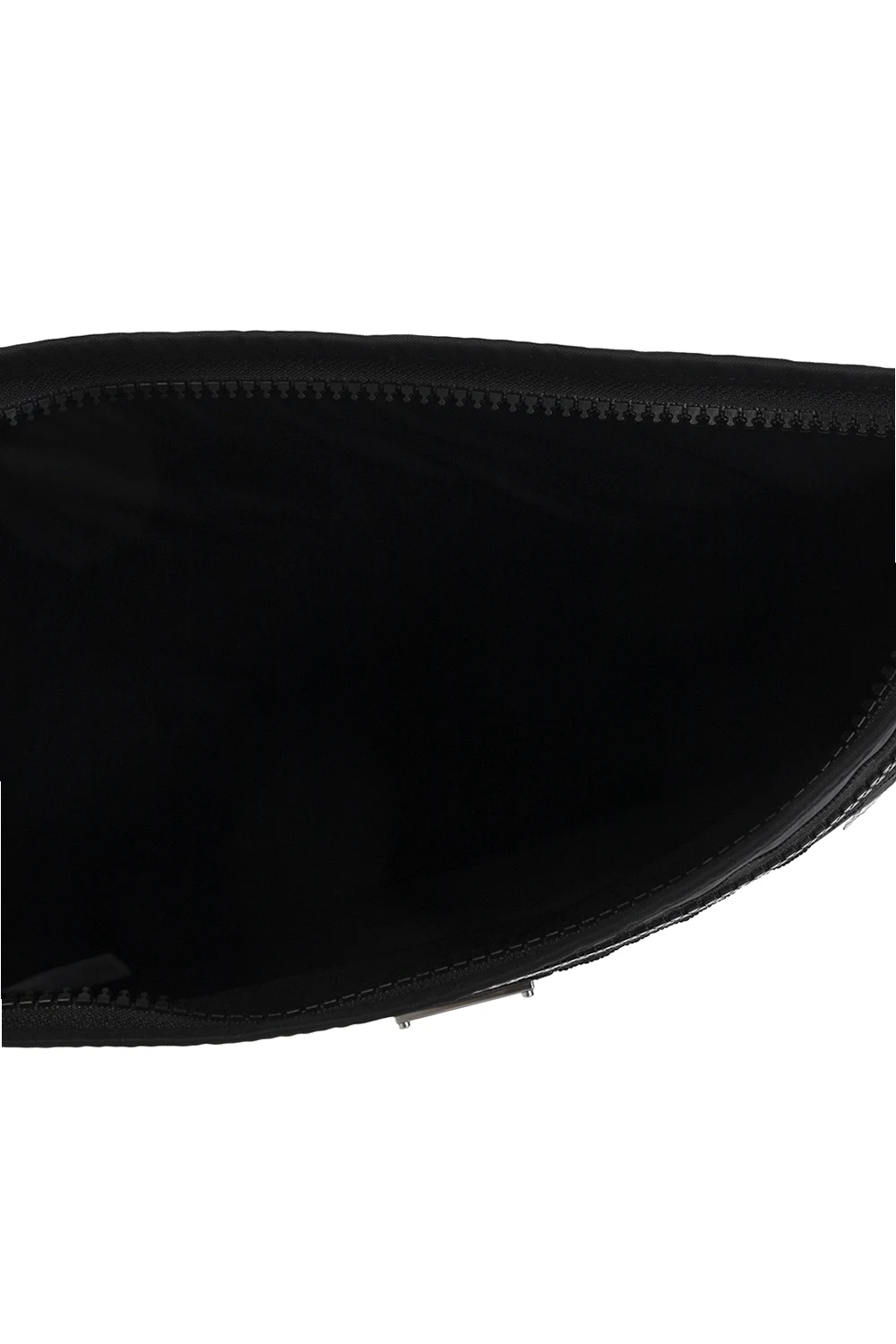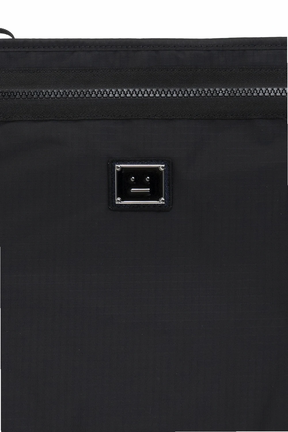Black handbag from Acne Studios. Accentuated with a logo application, this design features a zip fastening, a half-round handle, silver-tone metal hardware and one internal compartment.