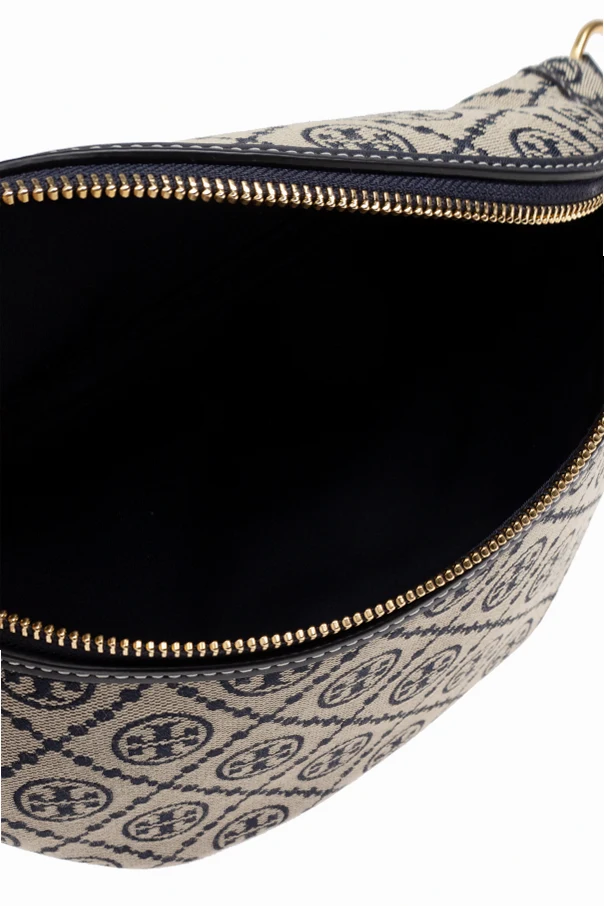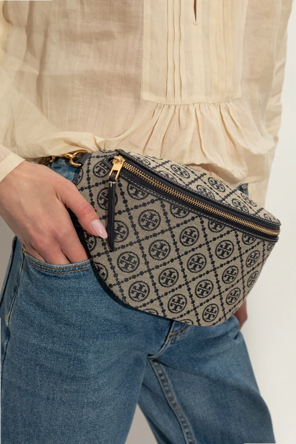 Introducing the T Monogram Belt Bag from the illustrious designer Tory Burch , a paragon of luxury and sophistication. This exquisite accessory is meticulously crafted with a semi-circular silhouette that epitomizes the quintessential belt bag design. Adorned with a beige and navy pattern of repeating monograms, it embodies the brand's distinctive motif. Constructed from a blend of premium leather and durable materials, the bag is built to endure. The golden zipper and metal accents exude an aura of elegance, while the adjustable navy strap provides versatility, allowing it to be worn on the hips or across the shoulder with effortless grace. Perfect for daily use, the bag features a spacious interior compartment, ensuring practicality without compromising on style. Every element reflects the superior craftsmanship and attention to detail synonymous with exclusive fashion houses. Why Purchase This Product? Iconic design from a renowned luxury brand High-quality leather and durable construction Elegant golden accents for a touch of glamour Versatile strap for multiple wearing styles Spacious interior for everyday essentials