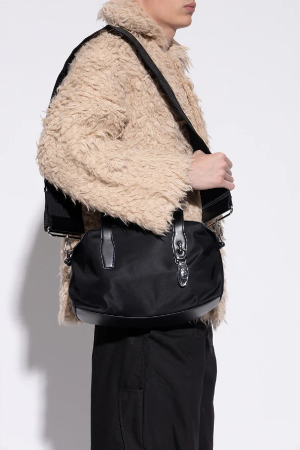 The ‘FLAG-D TOPHANDLE’ handbag by Diesel is a remarkable embodiment of modern sophistication for men. Rendered in timeless black , its refined rectangular silhouette with rounded edges offers both graceful structure and enduring appeal. Masterfully combining supple leather accents with smooth, high-grade textile fabric, this piece demonstrates a harmonious fusion of materials. Elegant short leather handles allow for a confident hand-carry, while a detachable, wide, adjustable shoulder strap—secured by lustrous metal clasps—imparts versatile functionality. A signature, oversized silver-tone metal charm embellishes the front, recalling avant-garde aesthetics and underscoring the bag’s unique character. The robust silver zipper, striking yet understated, affirms the exclusive sophistication expected from Diesel’s atelier. Why choose this product? Impeccably crafted with premium leather and sleek textile Distinctive design elements for elevated style Versatile wear with detachable, adjustable strap Exceptional durability and timeless black color Exclusivity of Diesel’s design legacy