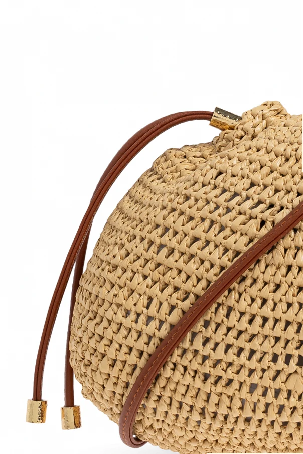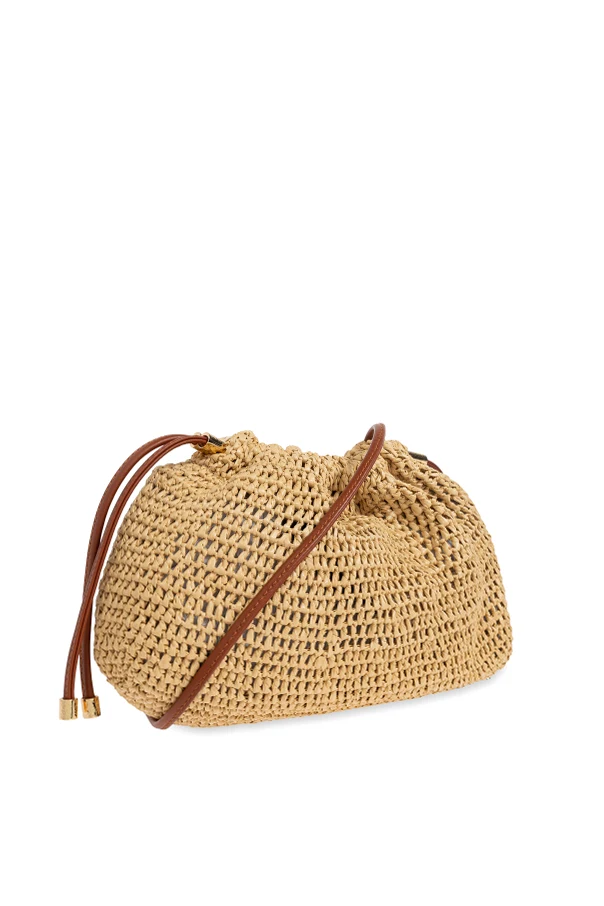 The Lali bucket bag by Ulla Johnson artfully captures the essence of laid-back sophistication. Crafted in Brooklyn and inspired by Manhattan cosmopolitan flair, this piece features a distinctive rounded silhouette and a soft, breathable beige raffia weave, exuding a sense of effortless summer elegance. The naturally textured body is finished with supple brown leather drawstrings, each tipped with luminous gold-tone metal ends for an opulent accent. Notably, the exterior is devoid of overt logos, preserving a refined minimalism that highlights the bag’s impeccable materials and silhouette. Inside, a discreet leather appliqué subtly nods to its designer heritage. Why choose this product? Exquisite blend of natural raffia and premium leather Distinctive bucket shape with modern softness Minimalist luxury—no visible logos or outer branding Artisan craftsmanship informed by global inspiration Elevated with tasteful gold-tone metal detailing