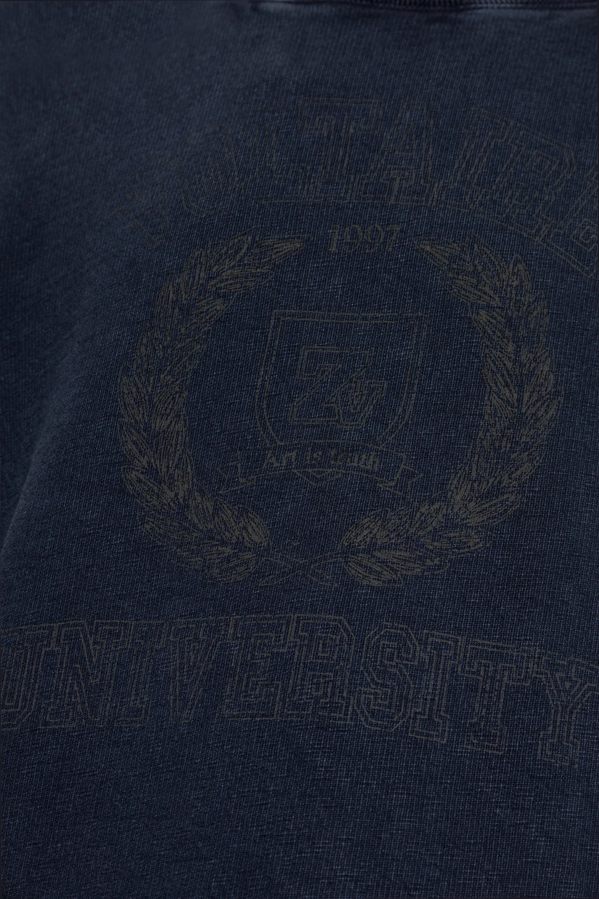 Introducing the ‘Stony’ V-Neck Sweater by Zadig & Voltaire, a harmonious blend of classic style and subtle distinction. Crafted from 100% cotton, this piece resonates with the soft, comfortable touch that defines luxury casual wear. The sweater's deep navy hue serves as a versatile canvas, accentuated by a tone-on-tone logo encircled by a laurel wreath with the inscription "UNIVERSITY" at the base, rendered in a color slightly lighter than the fabric itself for a sophisticated, understated appearance. The ‘Stony’ features a timeless, straightforward cut with long sleeves and ribbed hems, encapsulating the essence of traditional outerwear with a refined twist. Its design eschews visible stitching and zippers, favoring a minimalist yet elegant aesthetic. This garment is a testament to the meticulous craftsmanship and innovative design ethos of Zadig & Voltaire, making it an essential addition to the discerning wardrobe. Why Purchase This Product? Expertly crafted from premium 100% cotton for unmatched comfort and durability. Elegantly designed with a subtle, tonal logo for a touch of exclusivity. Features a classic v-neck and ribbed trims for a timeless appeal. Embraces minimalism and elegance in design, perfect for versatile styling. An exclusive offering from the renowned designer Zadig & Voltaire, renowned for their chic, avant-garde fashion.