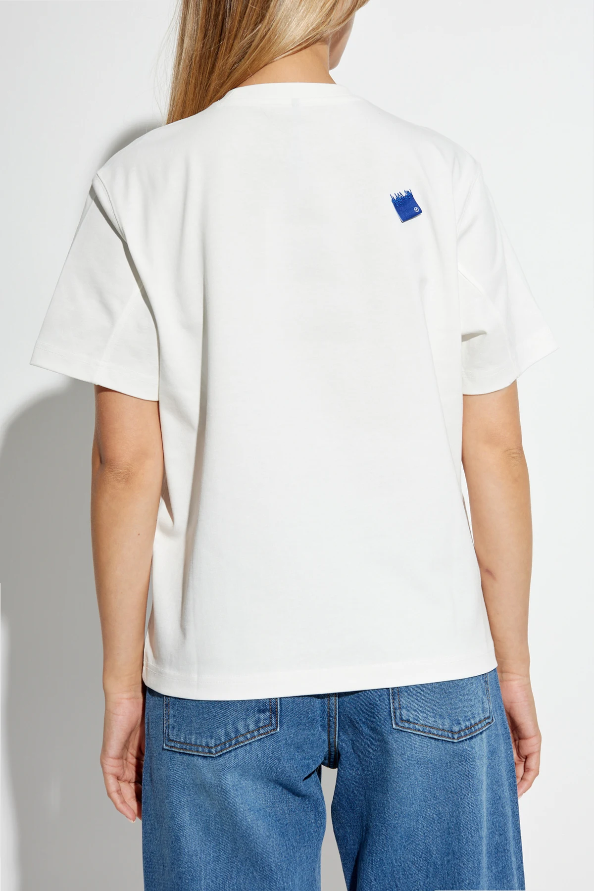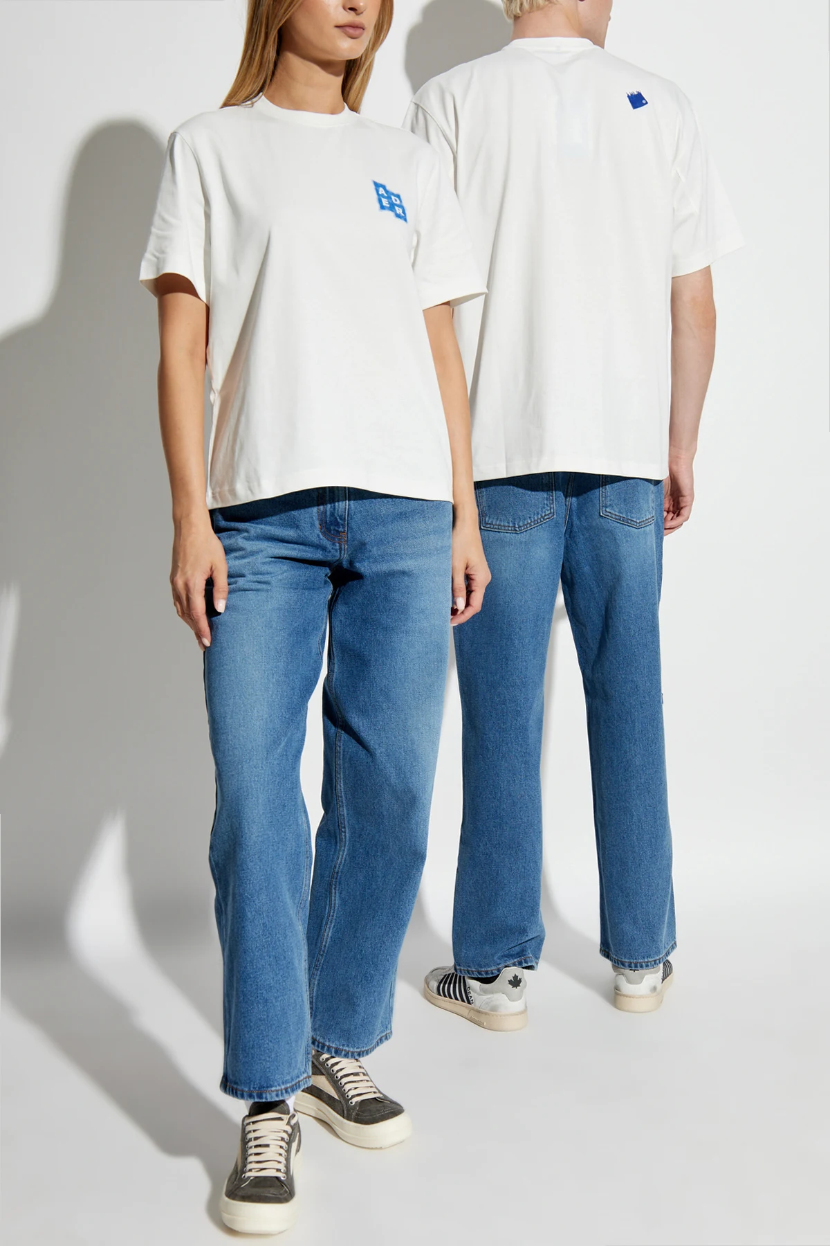 Introducing the Logo T-shirt, a quintessential piece from the esteemed brand Ader Error. This unisex T-shirt, resplendent in pristine white, epitomizes minimalist sophistication. Crafted from a blend of cotton and polyester, this T-shirt promises unparalleled softness and comfort. The classic, straight cut with short sleeves and a standard length provides a relaxed fit, perfect for both casual and stylish outings. Distinguished by its subtle yet impactful design, the T-shirt features a blue logo emblazoned on the left chest, with the word "ADER" rendered in white letters within a brushstroke-like rectangular field. A smaller rendition of the logo graces the upper back, adding a touch of understated elegance. Highlighted by its unisex nature, this T-shirt is modeled on both male and female figures, showcasing its versatile appeal. The round neckline further enhances its timeless charm. Dlaczego warto kupić ten produkt? Exquisite blend of cotton and polyester for ultimate comfort. Classic design with a modern logo accent. Unisex fit, catering to diverse styles and preferences. Minimalist aesthetic, suitable for any occasion. Endorsed by the innovative and creative brand, Ader Error.