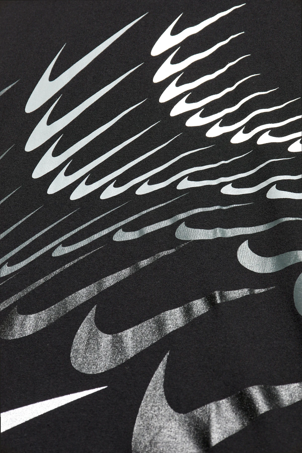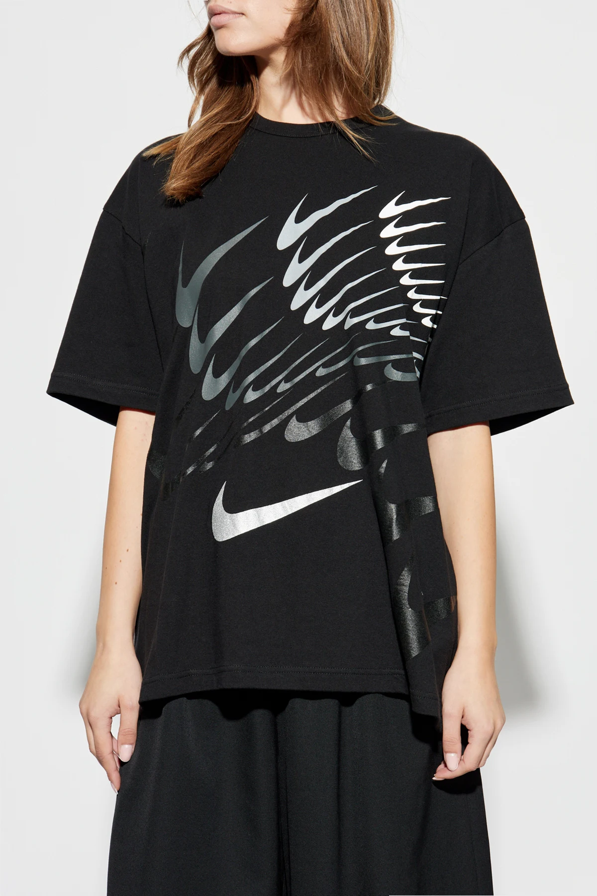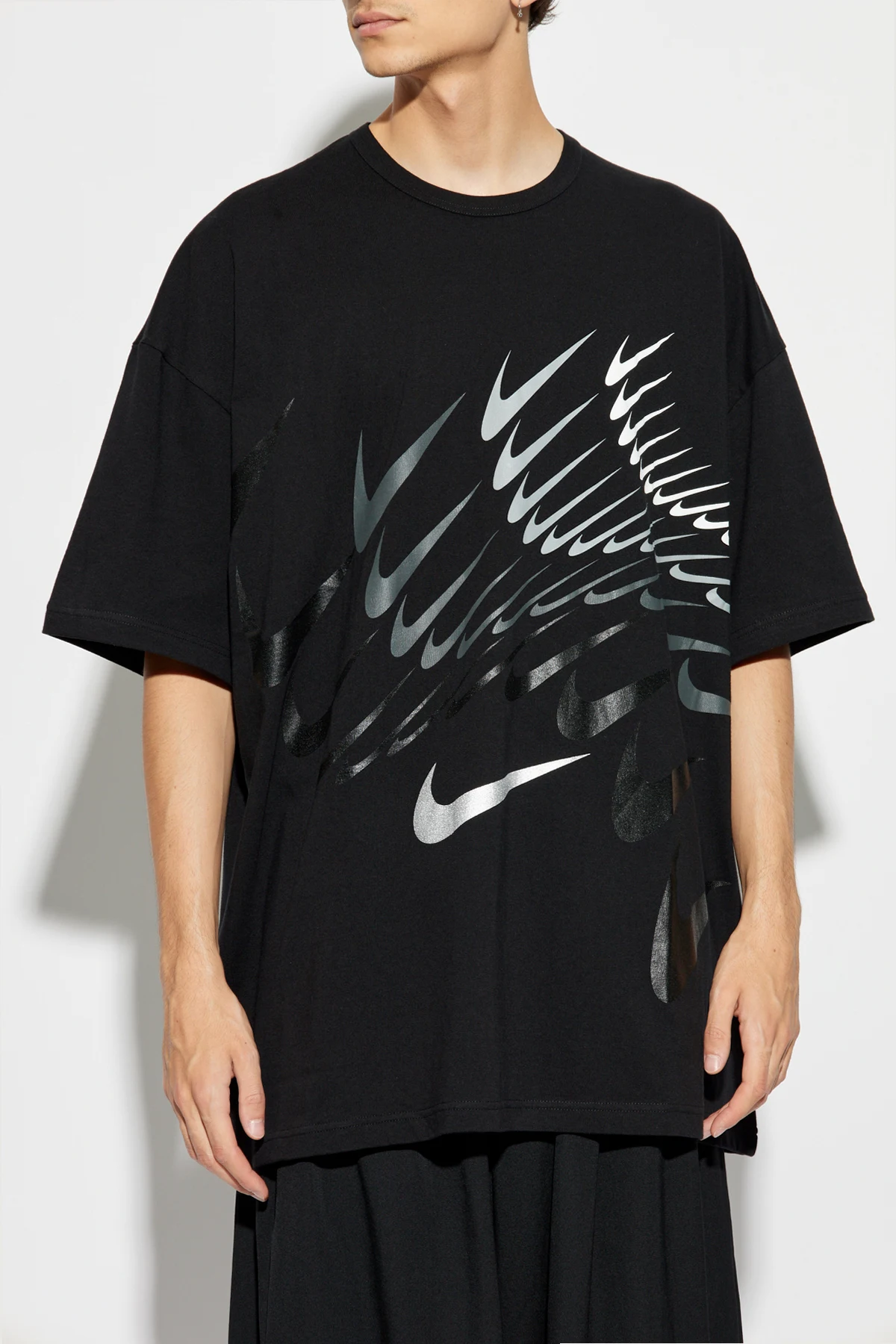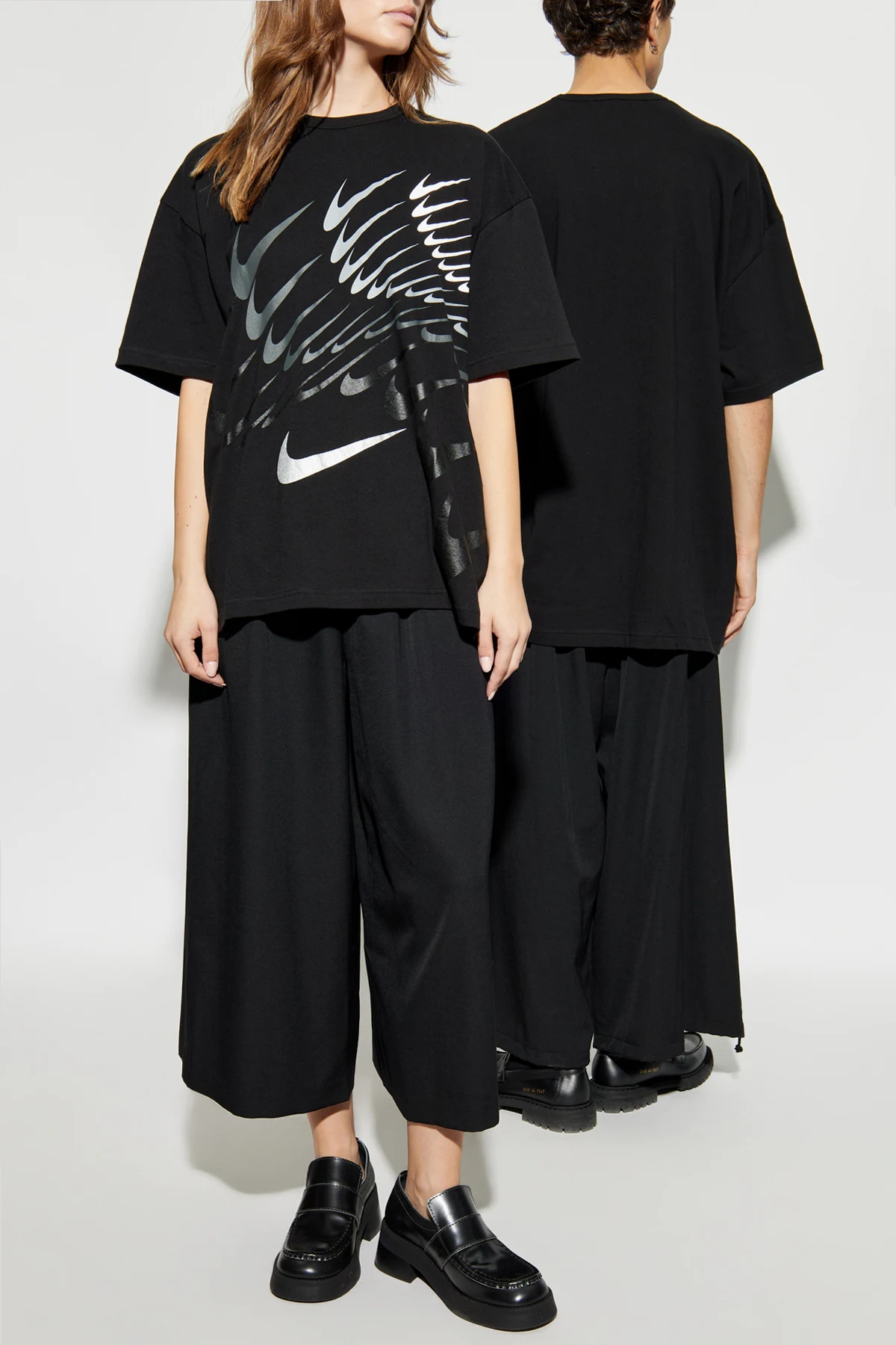 Experience the pinnacle of contemporary fashion with this exclusive black oversized T-shirt from the collaboration between renowned brands Comme des Garçons Black and Nike. This T-shirt epitomizes modern luxury with a relaxed fit and sophisticated design. Crafted from 100% cotton, this T-shirt promises a soft and comfortable wear. The loose, oversized cut ensures freedom of movement, making it an ideal choice for both casual and chic ensembles. Featuring short sleeves and a classic round neckline, it offers a timeless silhouette. The front of the T-shirt is adorned with a dynamic pattern of multiple Swoosh logos in varying shades of gray and white, creating a striking gradient effect. The back remains elegantly plain, highlighting the premium quality of the material. This unisex piece is perfect for both men and women, seamlessly blending style and comfort. Why Choose This Product? Designed by the iconic Comme des Garçons Black in collaboration with Nike. Crafted from premium 100% cotton for ultimate comfort. Features a unique gradient pattern of Swoosh logos. Unisex design suitable for all fashion-forward individuals. Part of an exclusive collection, ensuring high-quality craftsmanship.