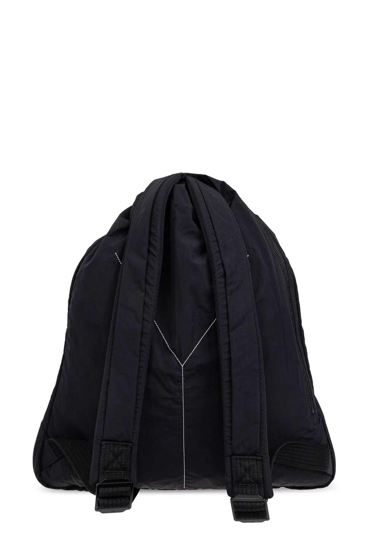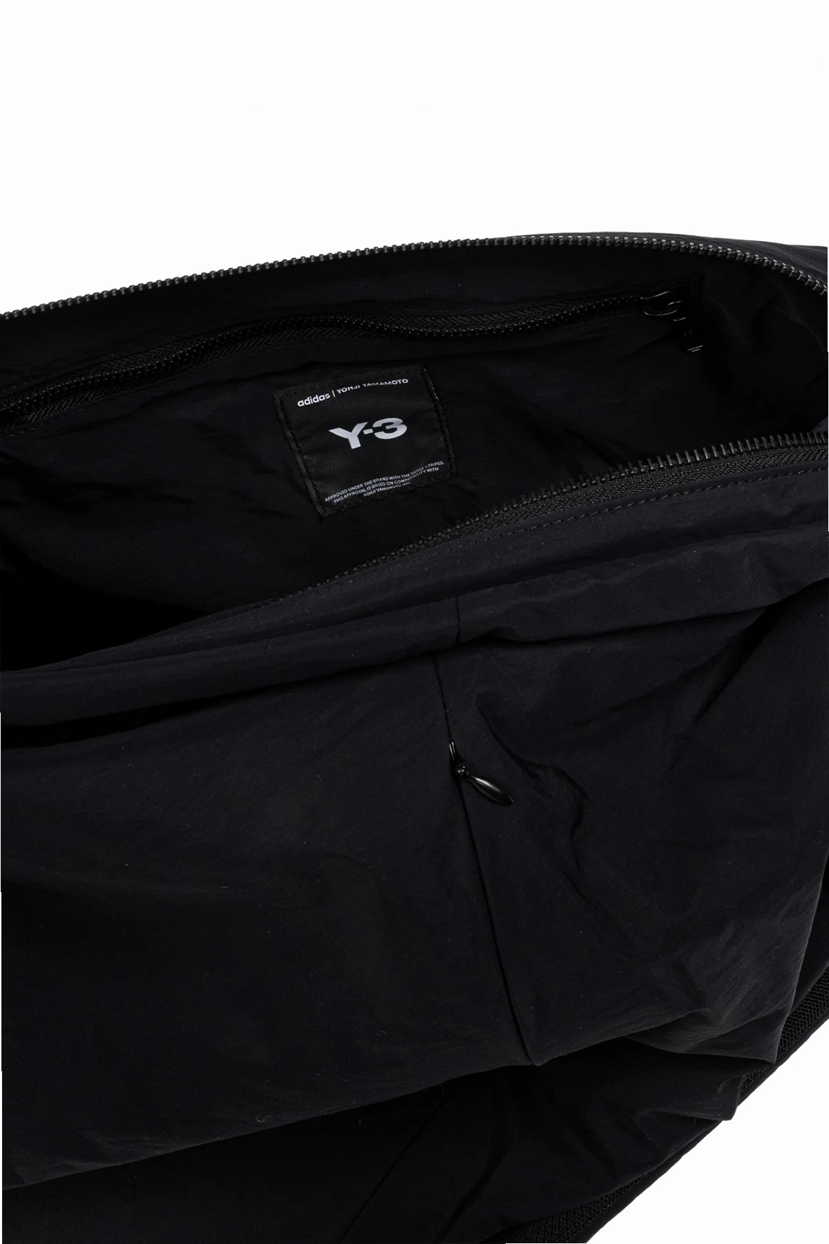 Introducing the exquisite Y-3 Backpack, a paragon of modern elegance and minimalist design. Crafted from a lightweight, waterproof material, this black backpack is both functional and stylish, making it an indispensable accessory for everyday use. The harmonious blend of 70% recycled polyamide and 30% polyamide ensures durability and sustainability, reflecting a commitment to both quality and environmental consciousness. Adorned with the iconic white "Y-3" logo, prominently displayed on the front, this backpack exudes a subtle yet bold character. Its geometric, slightly rounded shape is enhanced by subtle stitching and an exterior zipper, adding an air of contemporary sophistication. The interior boasts a spacious compartment with a zipper closure, along with two additional pockets, providing ample room for all your essentials. Adjustable straps allow for a customizable fit, ensuring comfort and versatility for any silhouette. Why Choose This Product? Minimalist and modern design with a unique, rounded shape Crafted from environmentally-conscious materials Prominent Y-3 logo for a distinct style statement Spacious interior with multiple compartments for convenience Adjustable straps for a personalized fit