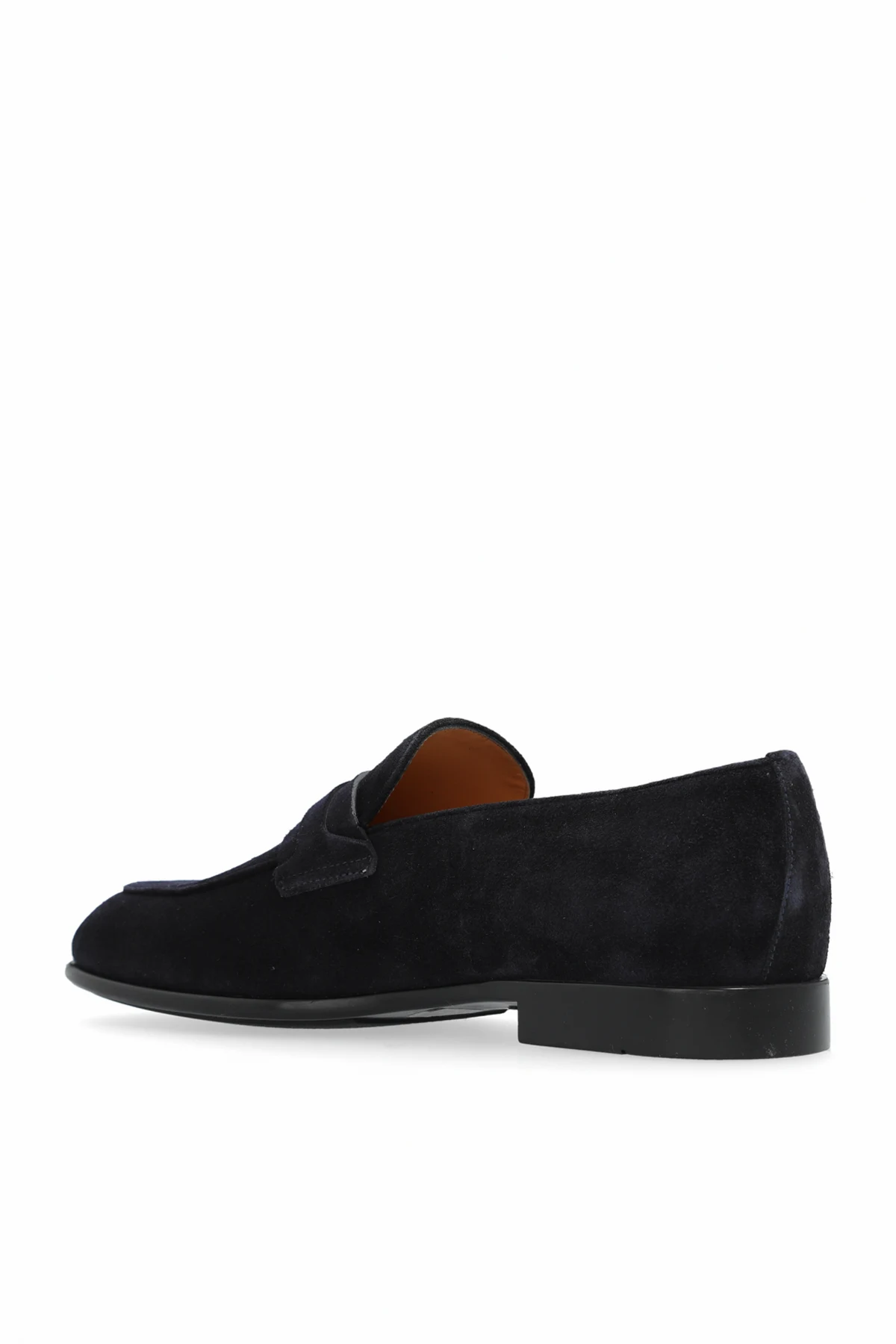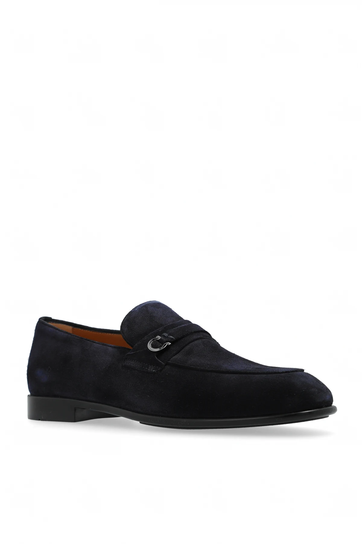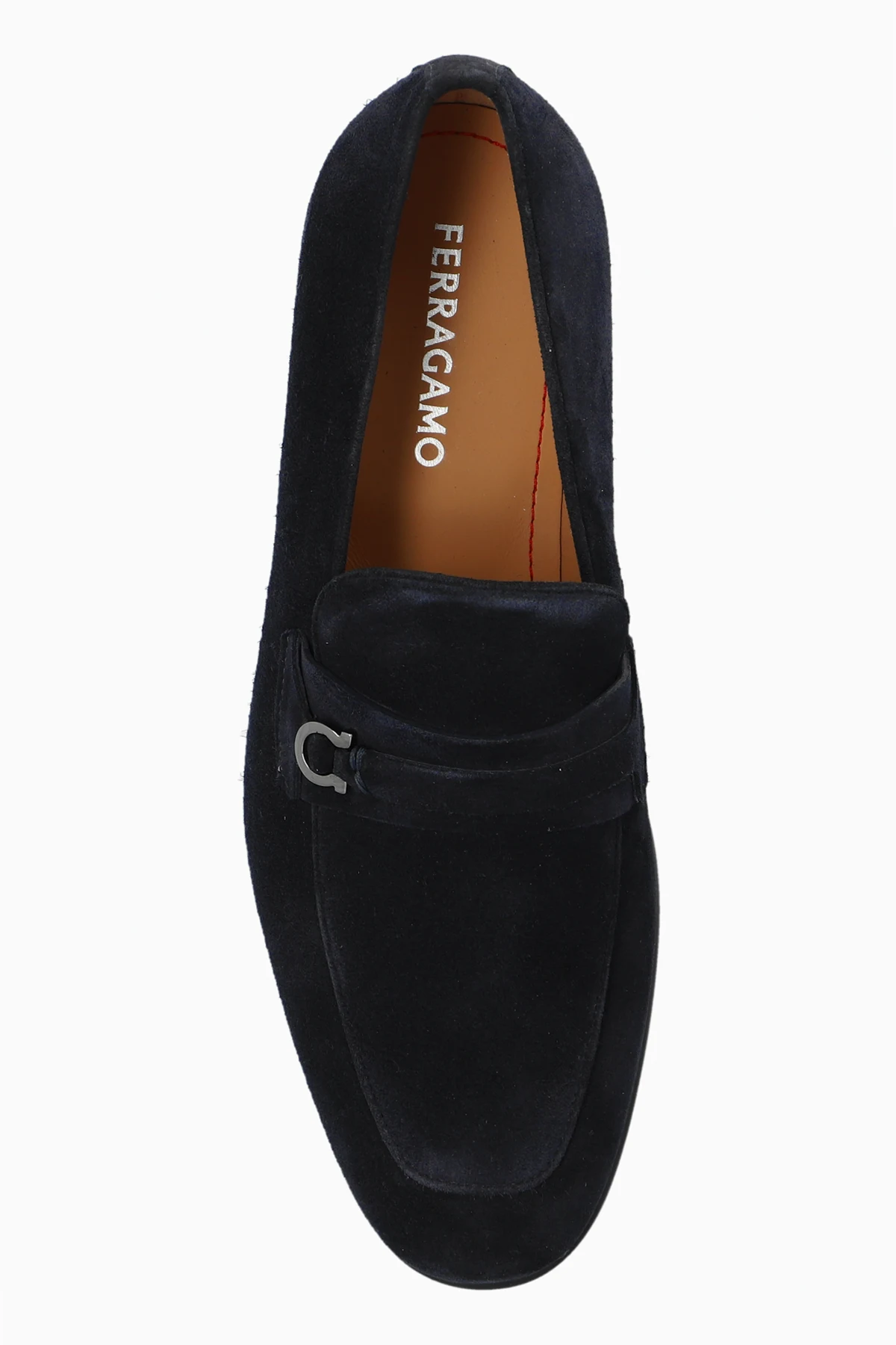 Introducing the ‘Desio’ Leather Loafers by FERRAGAMO, an epitome of refined craftsmanship and understated luxury. Crafted from high-quality suede, these loafers present a deep navy hue that exudes a sense of sophisticated allure. The plush suede texture, complemented by a distinctive metal buckle on each shoe, adds a touch of elegance and serves as a hallmark of the brand's attention to detail. The interior boasts a supple leather insole in a light brown shade, featuring a contrasting brand inscription that signifies luxury with every step. Designed with a flat rubber sole and rounded toe, these loafers blend classic styling with modern comfort. The additional width in the insole ensures an exceptionally comfortable fit, making the ‘Desio’ loafers not only a statement of style but also a testament to thoughtful design. Their lightweight and versatile nature allows them to transition seamlessly between casual and formal settings, perfectly complementing tailored trousers and blazers. The meticulous stitching along the front edge further accentuates their classic silhouette, showcasing the quality synonymous with the FERRAGAMO legacy. Why Purchase These Loafers? Unparalleled Quality: Crafted from superior suede and leather, offering durability and a luxurious feel. Elegant Design: The deep navy color and distinctive metal buckle add a touch of elegance and exclusivity. Versatile Style: Perfect for any occasion, these loafers can elevate any outfit, whether casual or formal. Enhanced Comfort: The extra-wide insole ensures a comfortable fit, ideal for extended wear. Legacy of Craftsmanship: Designed by FERRAGAMO, a brand renowned for quality and timeless style.
