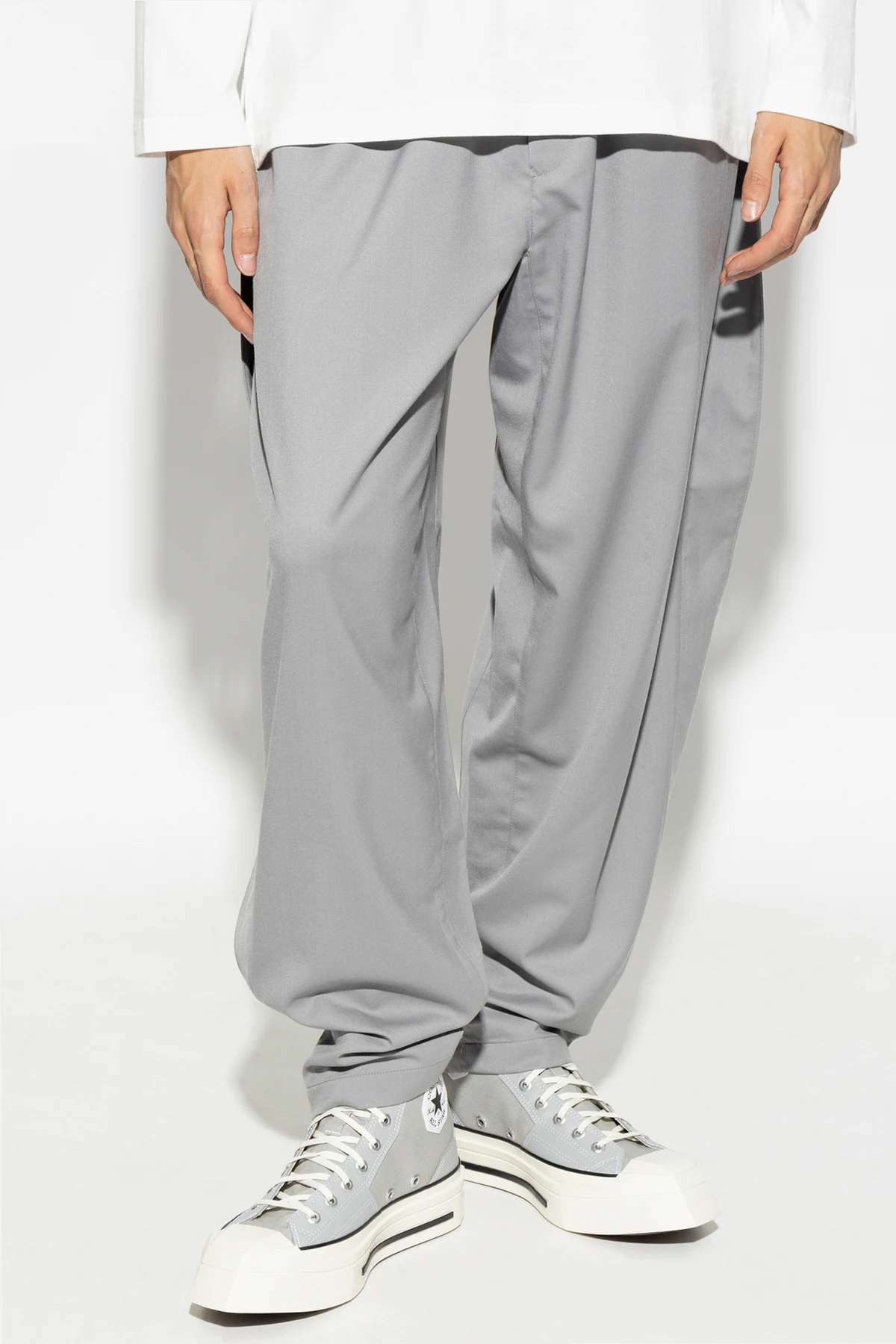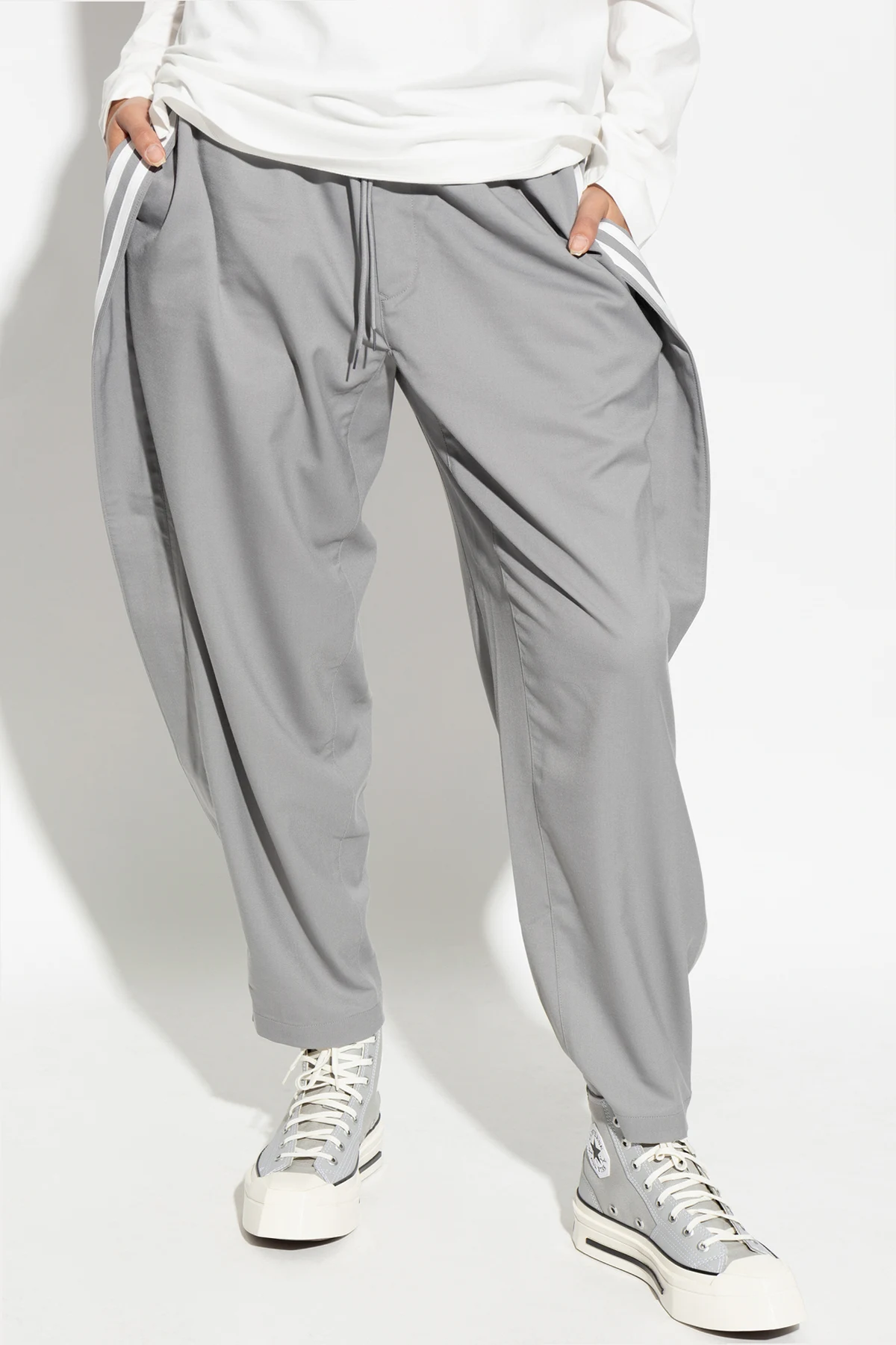 Introducing the Loose-Fit Trousers from the exclusive collection by Y-3 Yohji Yamamoto. These trousers epitomize the perfect amalgamation of high fashion and sporty chic, a testament to the renowned collaboration between Japanese designer Yohji Yamamoto and the German sports brand Y-3. Crafted from a light, breathable blend of 70% Polyester and 30% Wool, these trousers ensure unparalleled comfort and durability. The design features a relaxed fit with a dropped crotch and wide legs, accentuated by an elastic waistband with an additional drawstring for a customizable fit. The minimalist gray hue is complemented by the distinctive three white stripes along the side seams, hinting at the sporty heritage of the brand. The trousers boast meticulously finished edges and robust buttons, ensuring they stand out in both quality and style. Why Choose This Product? Exclusive Design: A unique blend of avant-garde fashion and sporty elegance. Optimal Comfort: Made from lightweight, breathable materials for all-day wear. Adjustable Fit: Elastic waistband with drawstring for a perfect fit. High-Quality Craftsmanship: Well-finished edges and sturdy buttons for a premium look. Versatile Style: Ideal for casual yet stylish everyday wear.