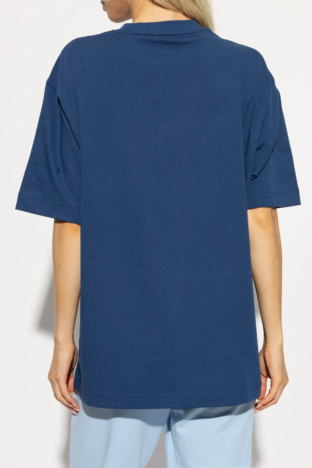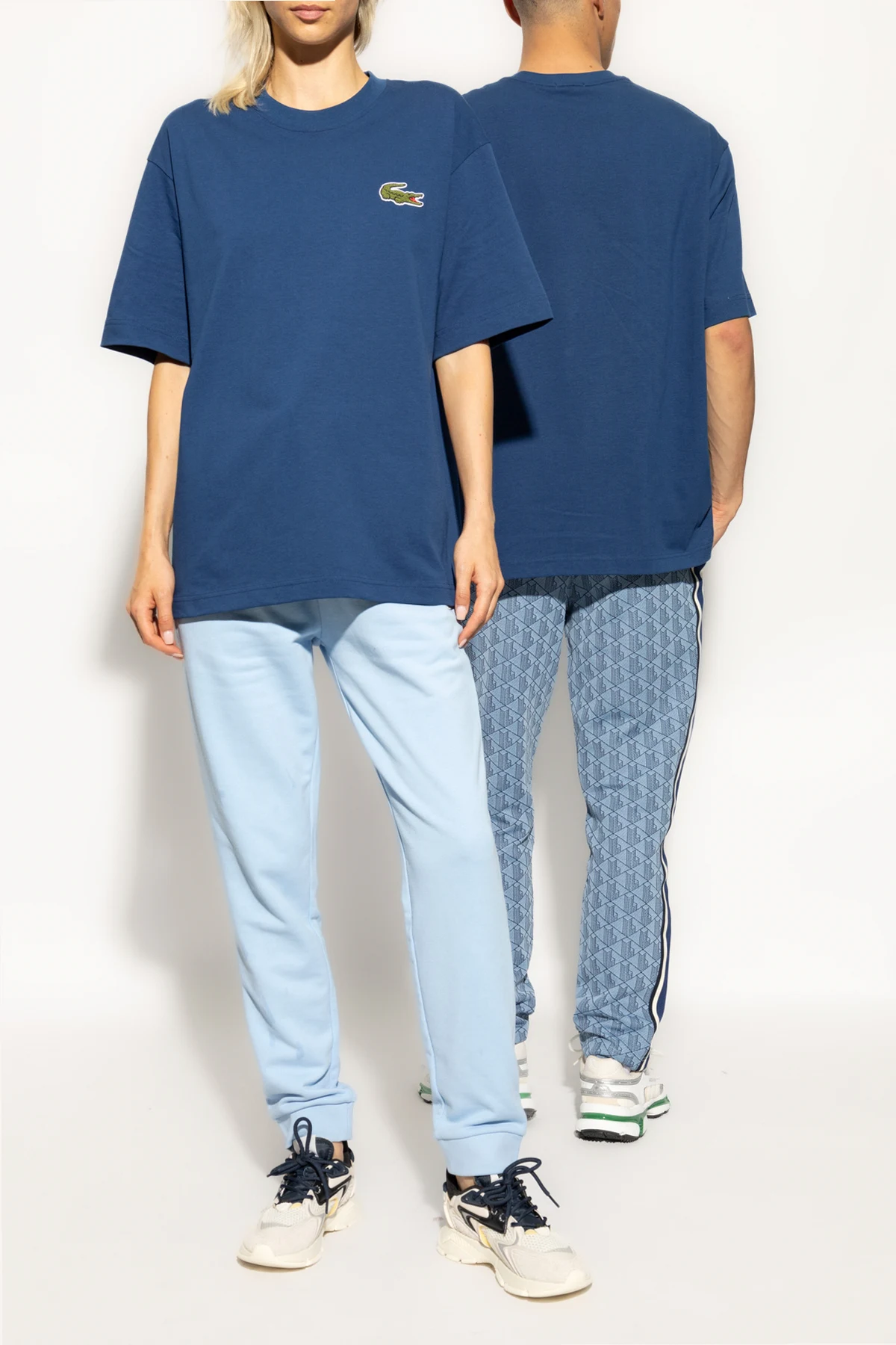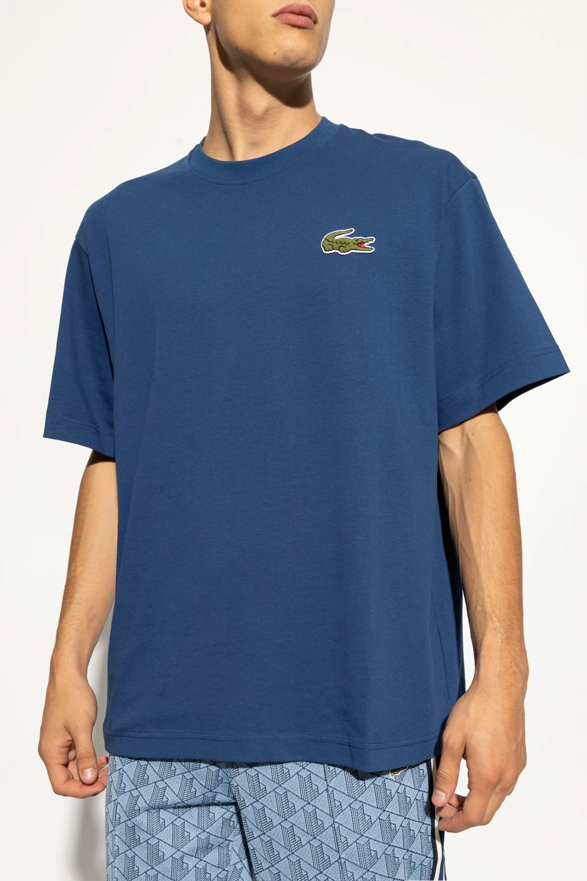 Introducing the Unisex T-shirt with Logo by the illustrious brand Lacoste. This elegant blue T-shirt features a classic, straightforward cut with short sleeves, embodying a relaxed and comfortable oversized style. The minimalist design is accentuated by the iconic embroidered green crocodile logo with a red accent on the snout, discreetly placed on the left chest, epitomizing the brand's sophisticated aesthetic. Crafted from premium 100% cotton, this T-shirt promises unparalleled comfort and breathability, making it an ideal choice for daily wear. The round neckline adds a timeless touch to this versatile piece, suitable for both men and women. Showcased on models in various styles, the T-shirt highlights its universal appeal and adaptability. Founded in 1933 by tennis legend René Lacoste, the Lacoste brand is synonymous with French heritage and sports elegance. Renowned for introducing the first polo shirt with a piqué design, Lacoste seamlessly blends functional cuts with daily wear, offering a refined and timeless collection that enhances your unique style. Why Choose This Product? Iconic Design: Features the classic Lacoste crocodile logo. High-Quality Material: Made from 100% breathable cotton. Versatile Style: Suitable for all genders and various occasions. Timeless Elegance: Minimalist design with a touch of sophistication.