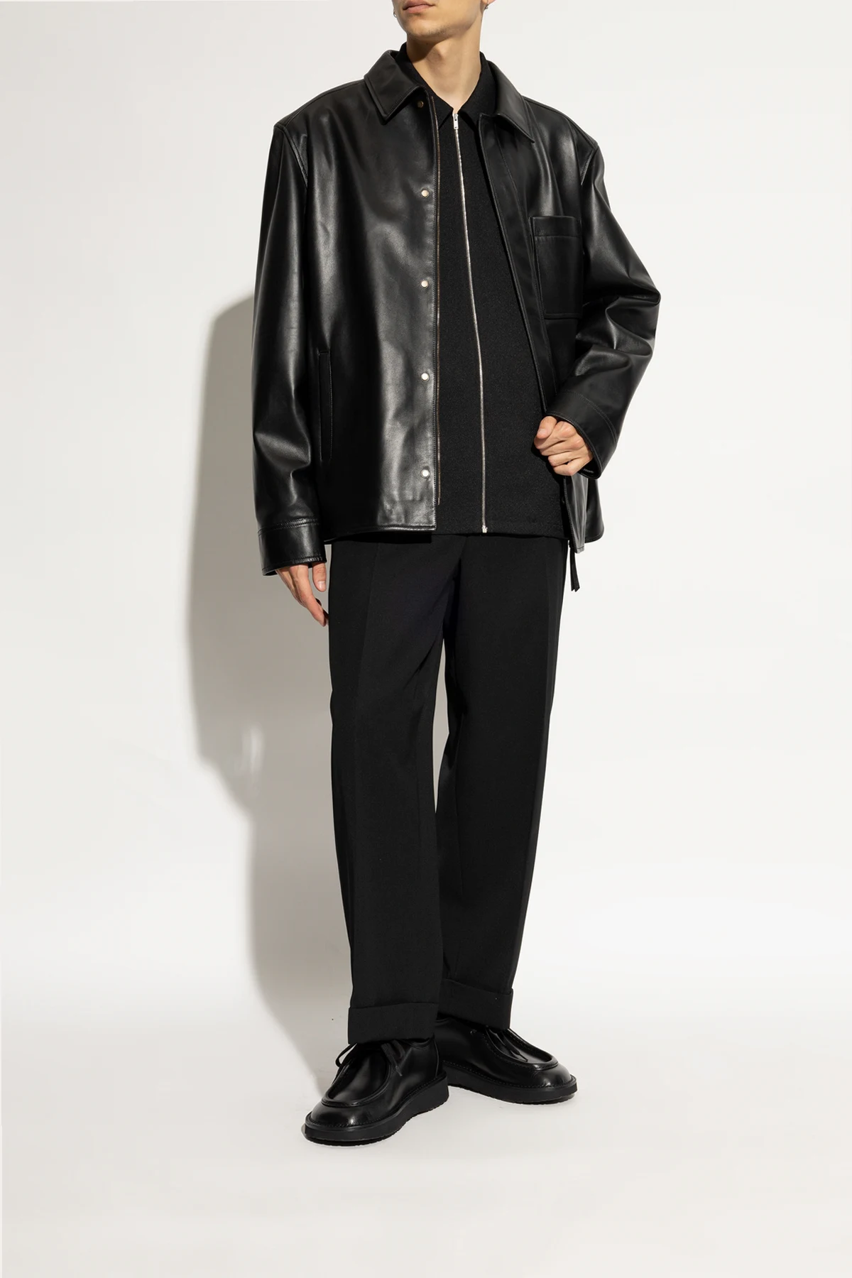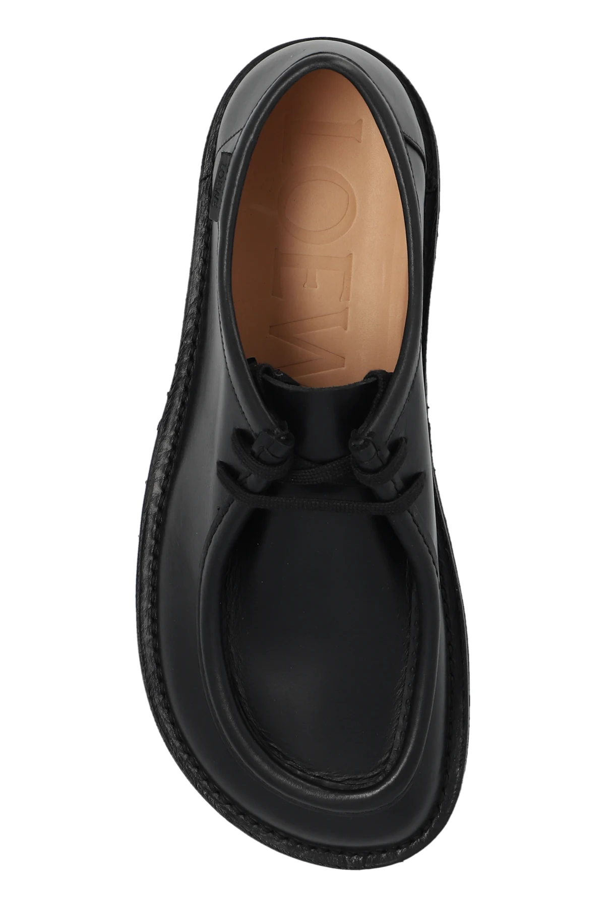Introducing the Loewe Black Leather Derby Shoes, a masterpiece of craftsmanship and timeless design. These shoes epitomize sophistication and luxury, making them an essential addition to any distinguished wardrobe. Expertly crafted from premium black leather, these Derby shoes feature a classic open-lacing system and a rounded toe, exuding a refined and elegant aesthetic. The interior is lined with soft leather, ensuring unparalleled comfort throughout the day. Subtle yet striking details enhance their exclusivity: a discreet designer logo adorns the side, while the sturdy rubber sole provides exceptional grip and durability. The black laces seamlessly blend with the overall design, and the light brown inner lining adds a touch of contrast. Why Choose These Shoes? Timeless Derby design with a modern twist Luxurious black leather exterior and interior Discreet designer logo for an exclusive touch Durable rubber sole for excellent traction Comfortable fit with a soft leather lining