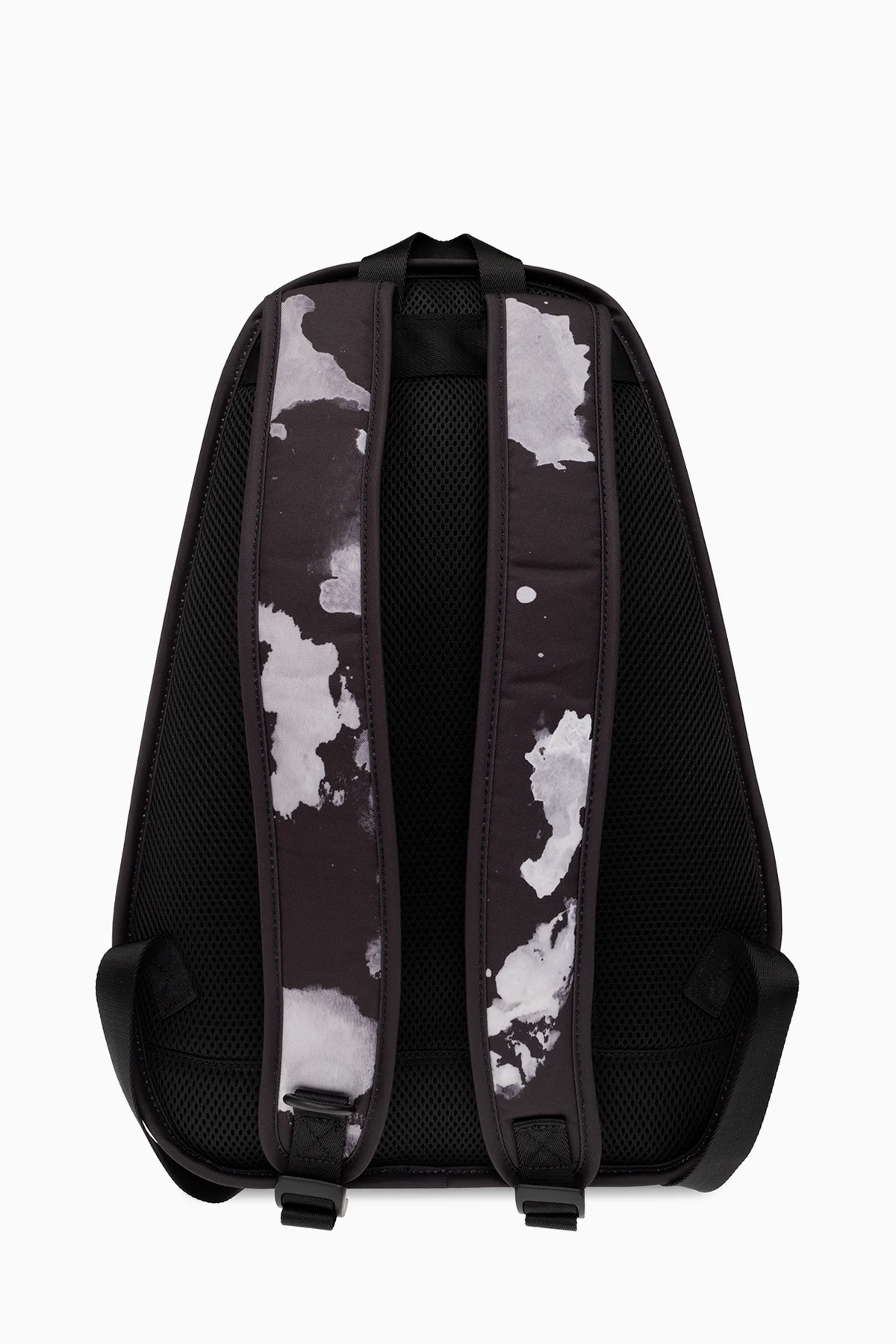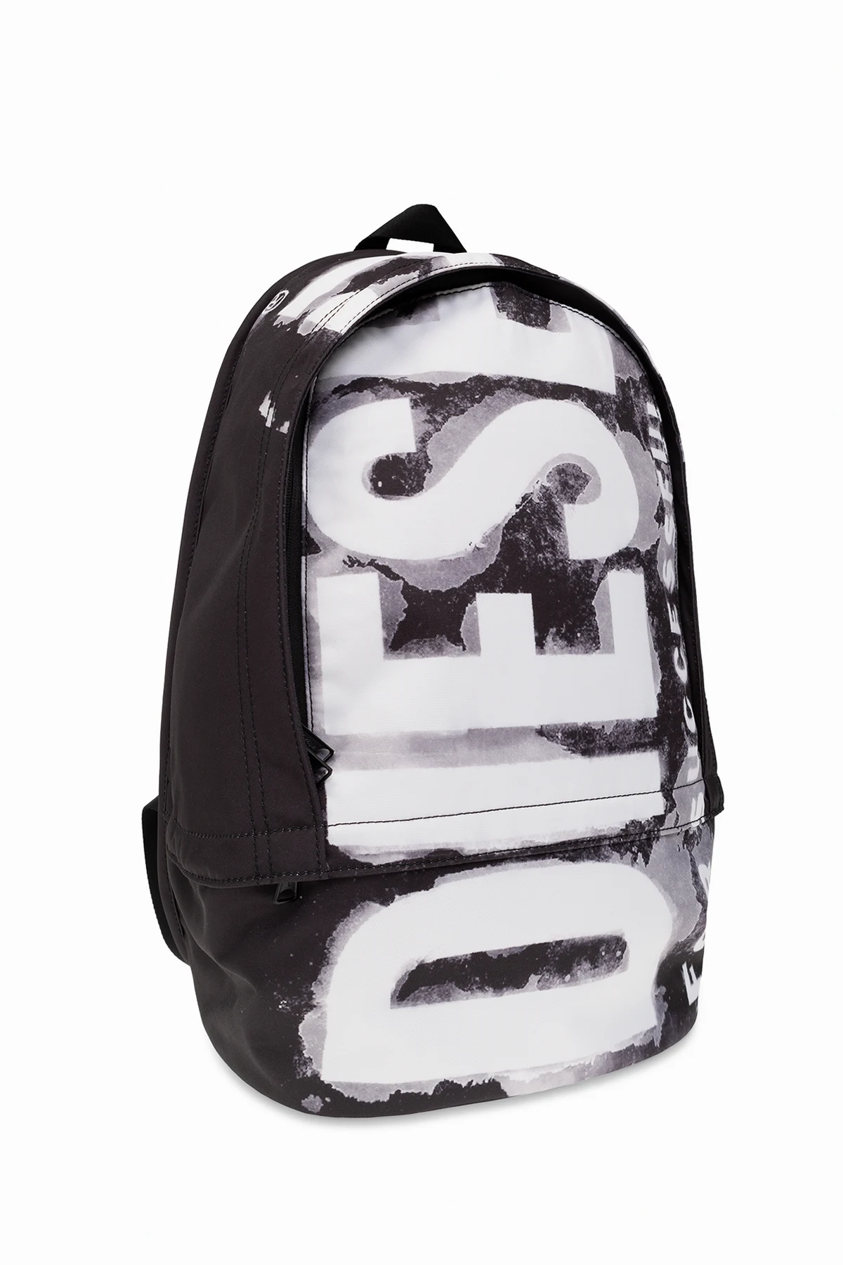 Black and white ‘RAVE’ backpack from Diesel. Made of fabric, this model features a two-way zip, logo detail, front zip pocket, half-round handle, adjustable shoulder straps and one internal compartment with one zip pocket and one slip pocket.