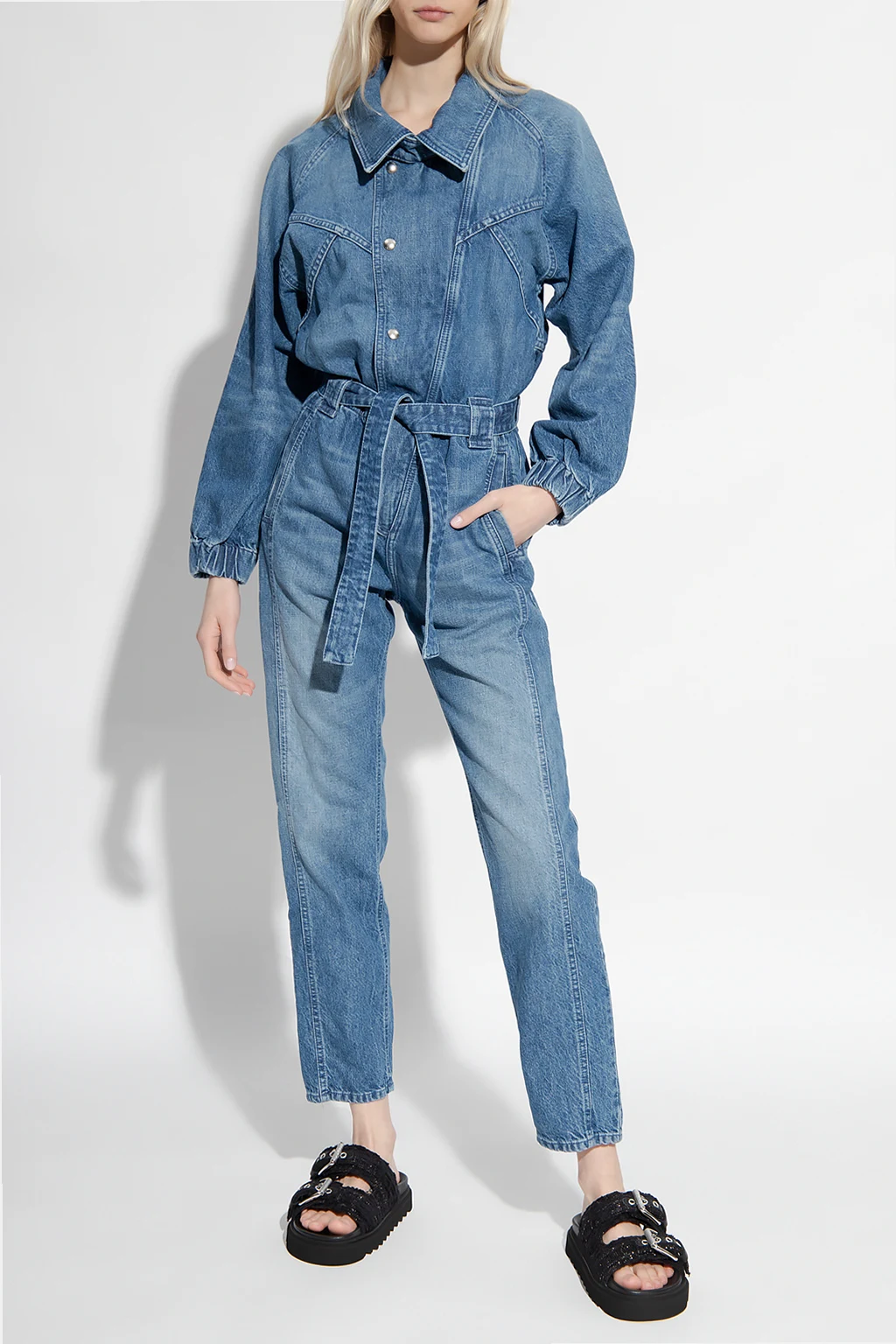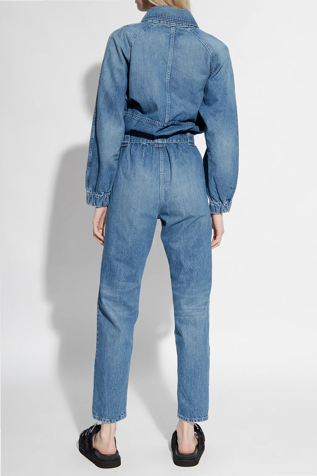 Blue denim jumpsuit from Iro. Made of a cotton and linen blend, this design features zip and snap fastenings, tie waist, two slip pockets, long sleeves and long legs.