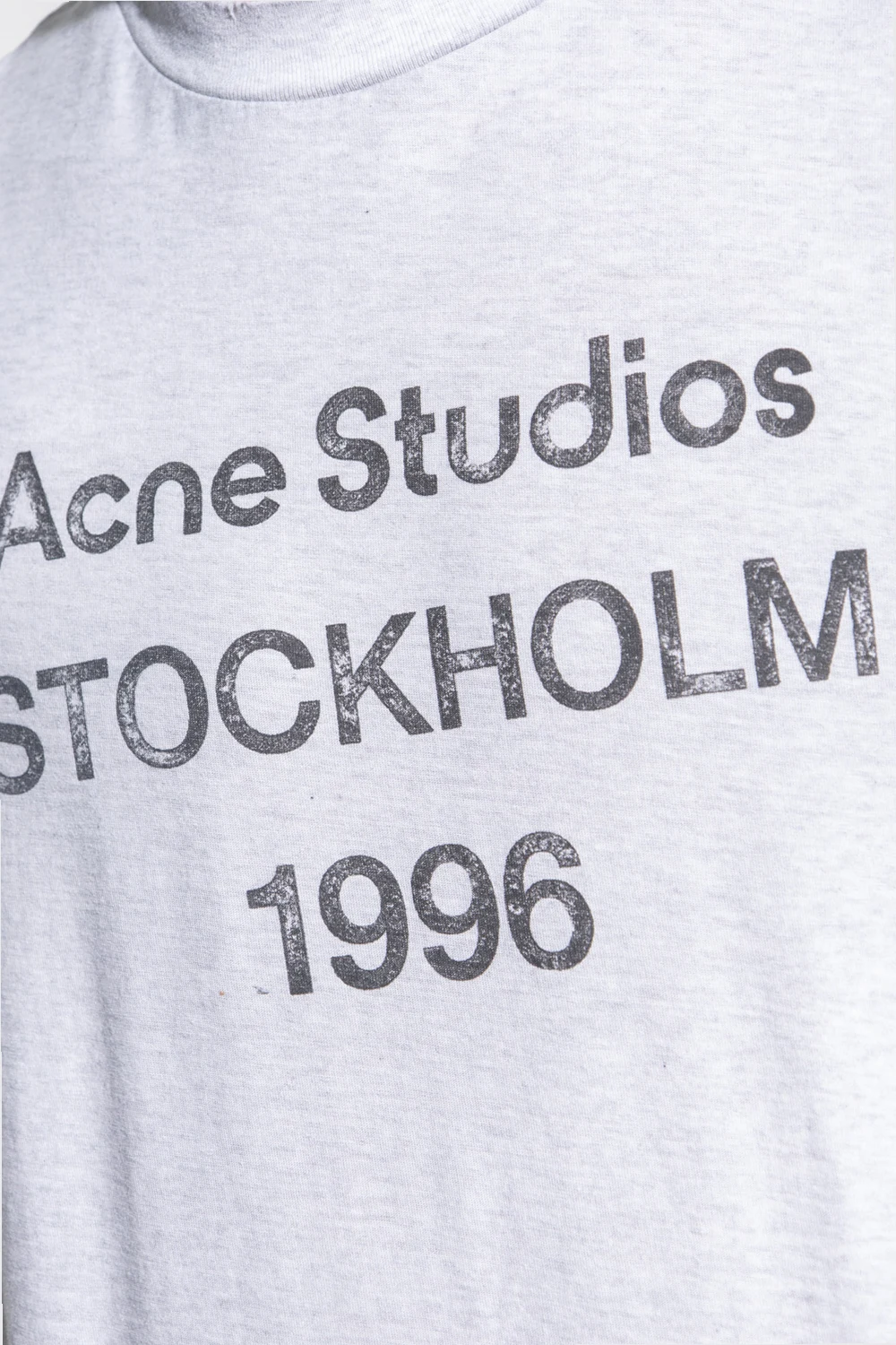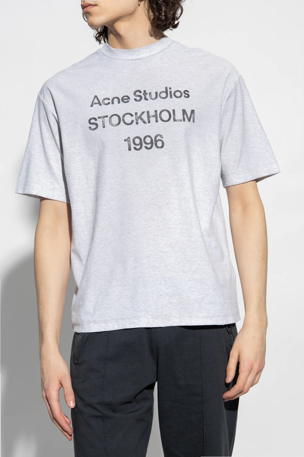 Grey T-shirt with a vintage effect from Acne Studios. Made of cotton, this short sleeve design features a black logo print and ribbed crew neck.