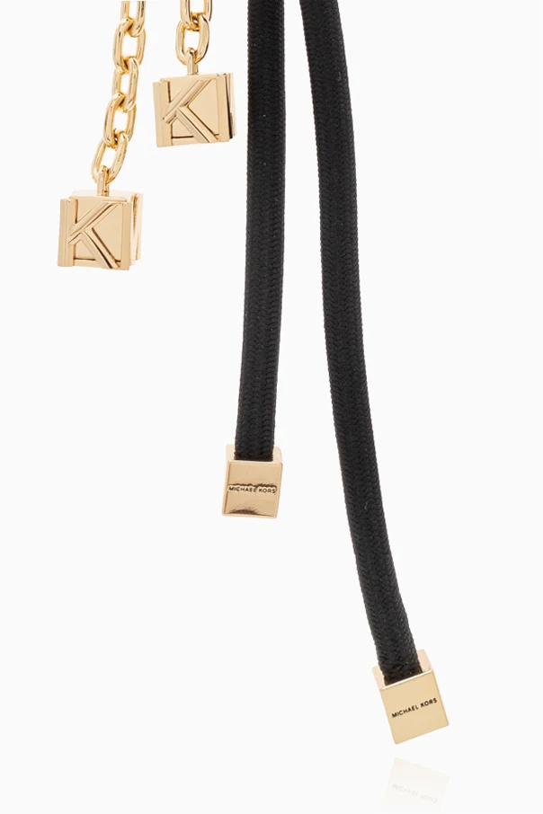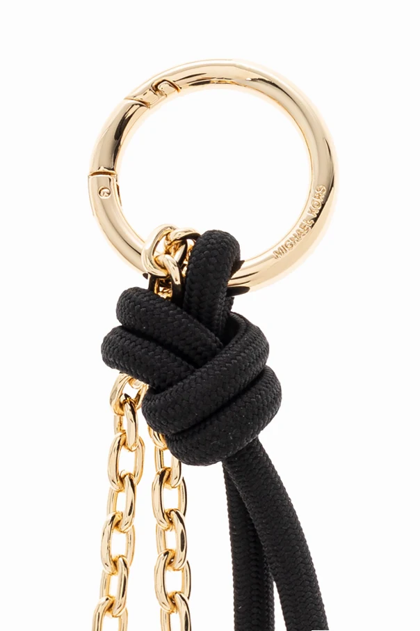 Discover an exquisite blend of modern minimalism and iconic American sophistication with this Logo Keychain from Michael Michael Kors . Meticulously designed, it features a smooth, gold-tone metal ring paired with supple black cords finished by polished gold-tone metal tips. Two elegant gold chains adorned with geometric cubic charms infuse the piece with a contemporary flair, while the laser-engraved signature "K" boldly affirms its distinguished heritage. The refined contrast of flawless metal and resilient, silk-touch textile creates a discreet yet captivating accessory—perfect for elevating your everyday essentials. A harmonious fusion of striking details and luxury materials celebrates an unmistakably exclusive lifestyle. Why choose this product? Distinctive, designer-engraved geometric charms Timeless black and gold colorway for effortless style Crafted from premium metal and high-quality polyester Enduring elegance emblematic of the Michael Kors brand Functional artistry elevating everyday moments