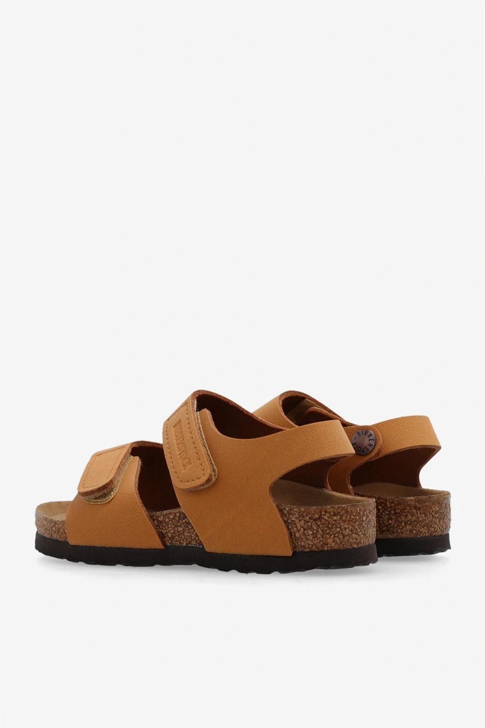 Brown ‘Palu’ sandals from Birkenstock Kids. Crafted from environmentally friendly Birko-Fior, this pair features velcro fastening, appliqué, embossed logo, the brand’s signature cork-latex footbed and brown outsole made from foam and EVA.