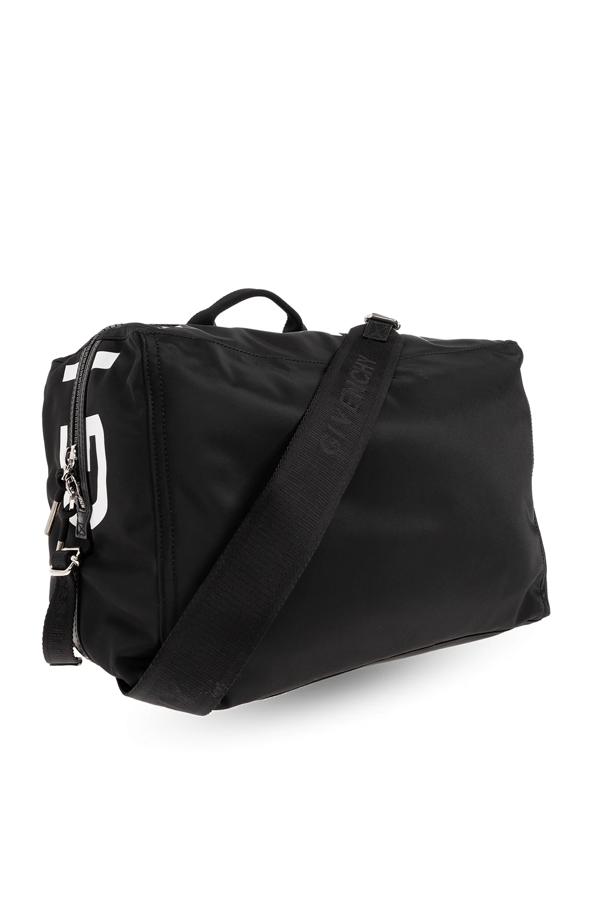 Black ‘Medium Pandora’ shoulder bag from Givenchy. Flaunting a white graphic print with the brand's logo, this design secures via a two-way zip and features an adjustable shoulder strap, one half-round handle and one internal compartment with a zip pocket