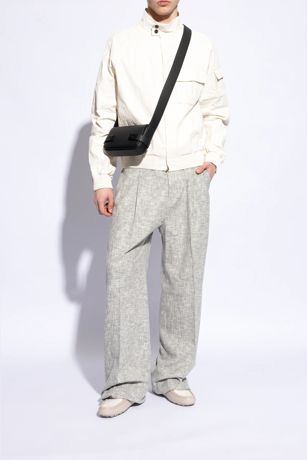 Introducing the Fendi 'O'Lock Moccasins, a testament to timeless elegance and unparalleled craftsmanship. These cream-white moccasins are meticulously crafted from the finest pebble-grain leather, ensuring not only supreme comfort but also enduring style. The iconic shape, characterized by its low heel and broad, rounded toe, captures the essence of classic sophistication. The distinctive feature of these moccasins is the silver-tone metal adornment on the vamp, shaped like the letter "H" or a similar stylized element, likely a buckle signifying the designer's hallmark or series. This detail, coupled with the designer's monogrammed fabric on the upper, infuses the footwear with an air of exclusivity and luxury. The robust, cream-colored rubber sole not only enhances the aesthetic appeal but also offers increased traction and comfort, making these moccasins a perfect blend of form and function. Why Purchase the Fendi 'O'Lock Moccasins? Expertly crafted from premium pebble-grain leather for durability and style. Embellished with a unique metal application and designer's monogram, adding a touch of exclusivity. Equipped with a sturdy rubber sole for enhanced grip and long-lasting wear. Exudes timeless elegance, seamlessly complementing any high-end wardrobe.