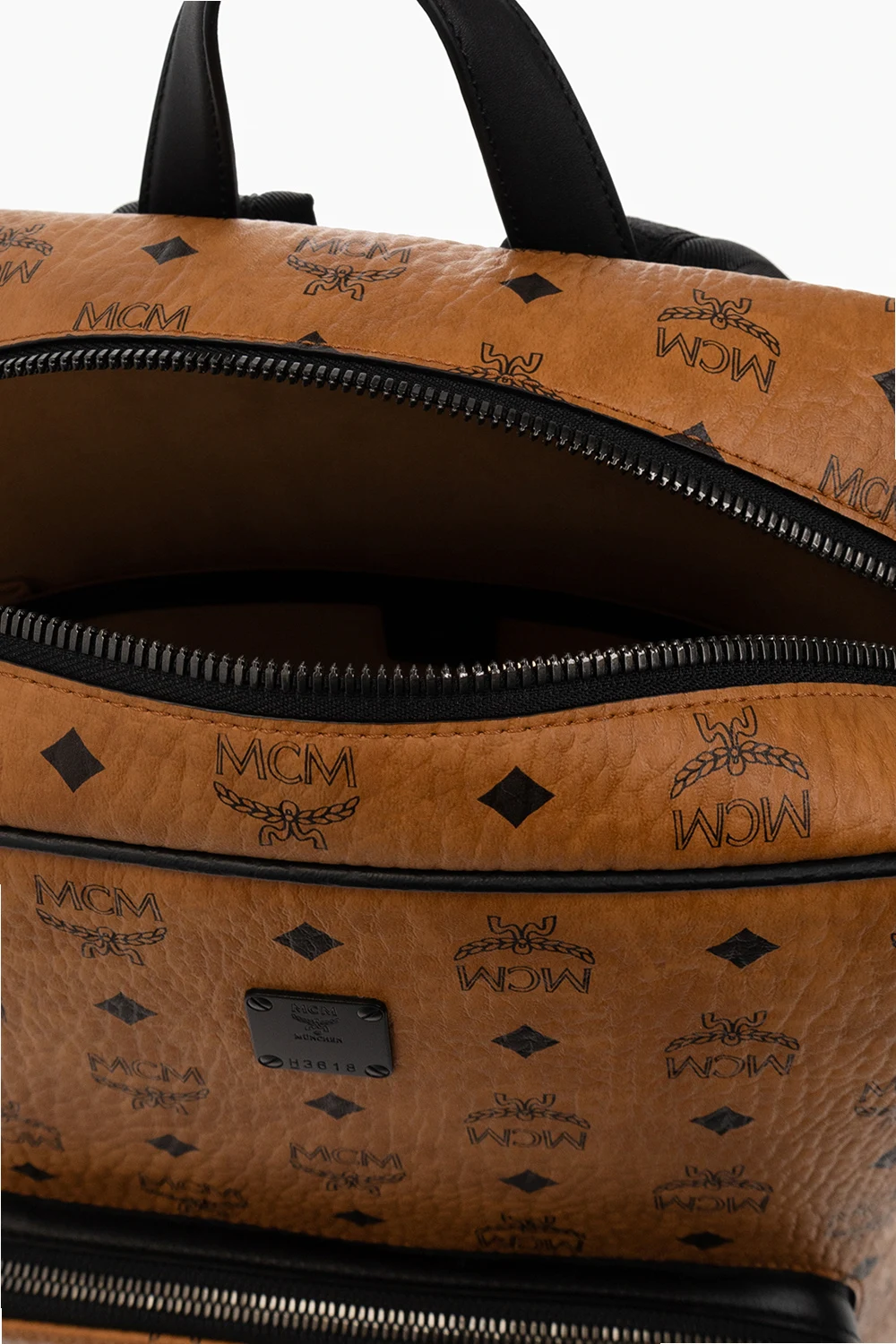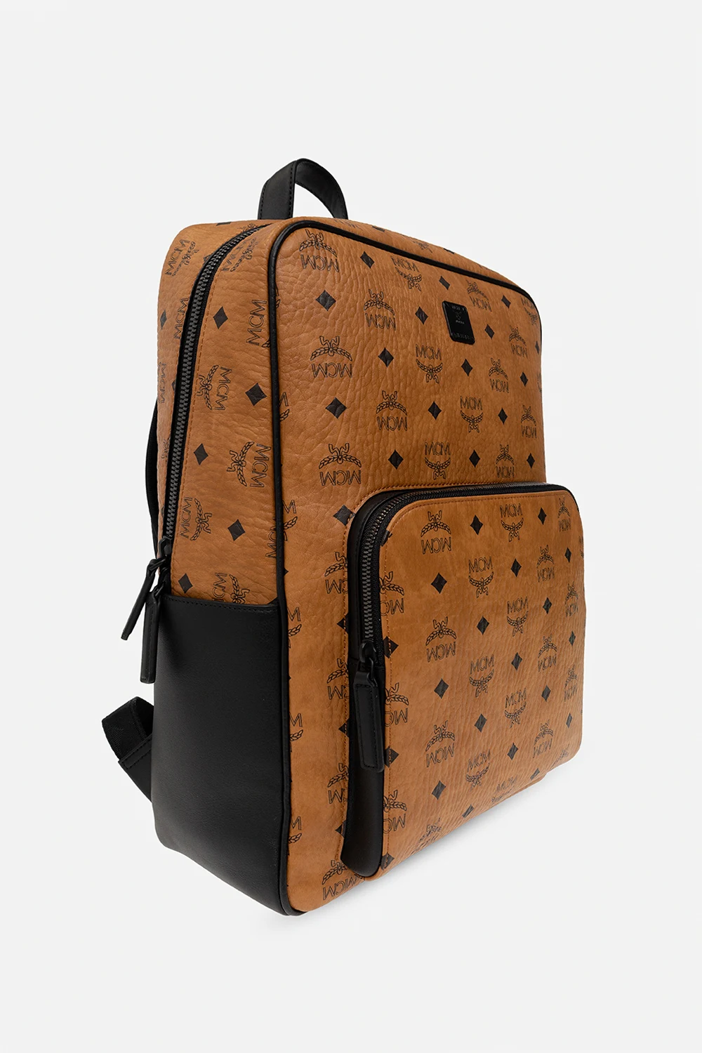 Brown and black backpack from MCM. Crafted in coated ‘Visetos’ monogrammed canvas, this design features a two-way zip fastening, leather trims, logo-engraved hardware accompanied by a zip pocket on the front, slip pockets on the sides, a top handle, adjustable shoulder straps and one internal compartment with two slip pockets.