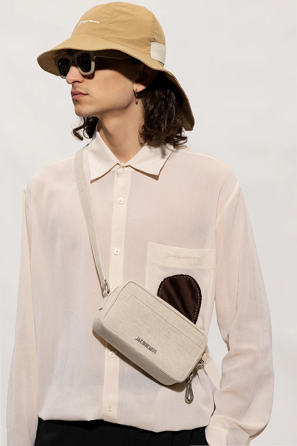 Cream ‘Le Baneto’ shoulder bag from Jacquemus. Crafted from canvas, this design secures with a zipper and features a metal logo plaque on the front, two external slip pockets on the front and back, a detachable and adjustable shoulder strap, silver-tone metal hardware and one internal compartment with a card slot.