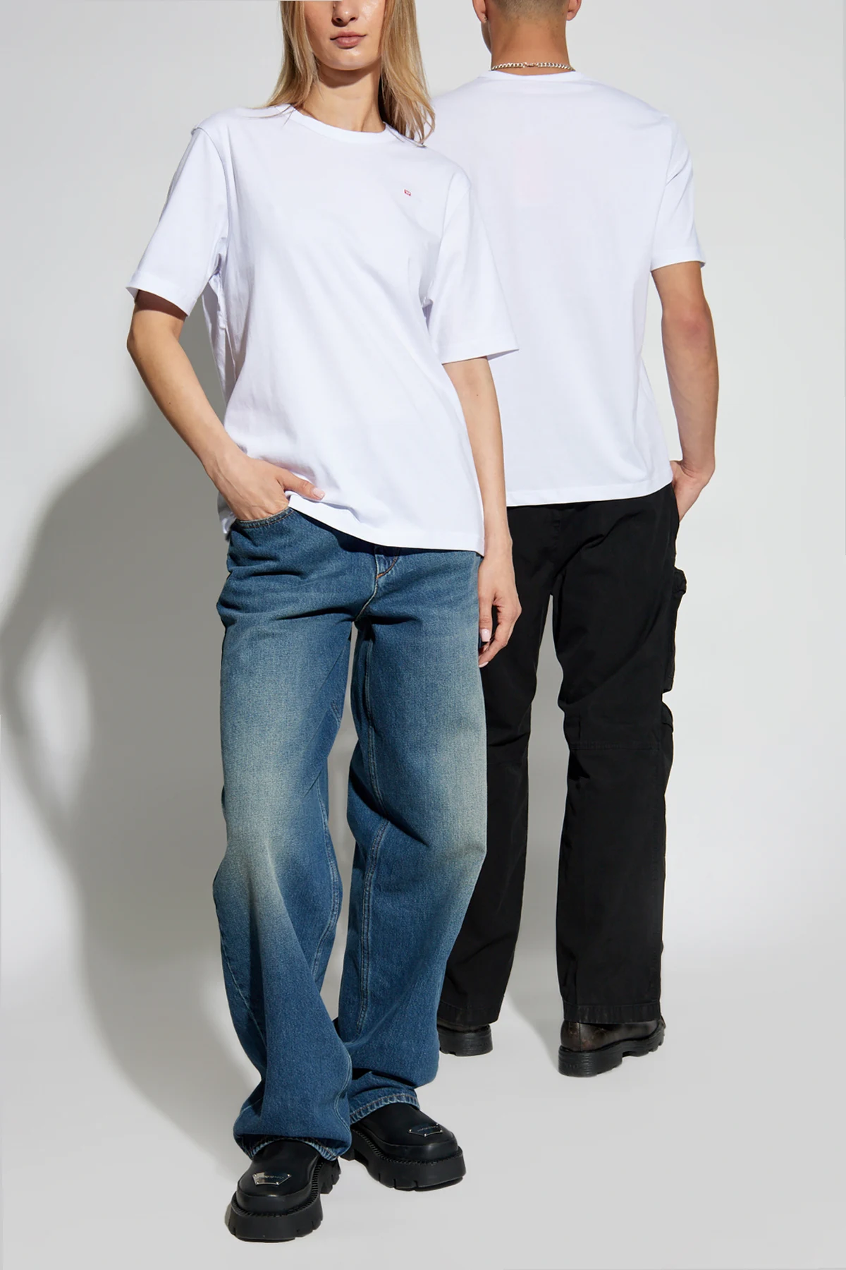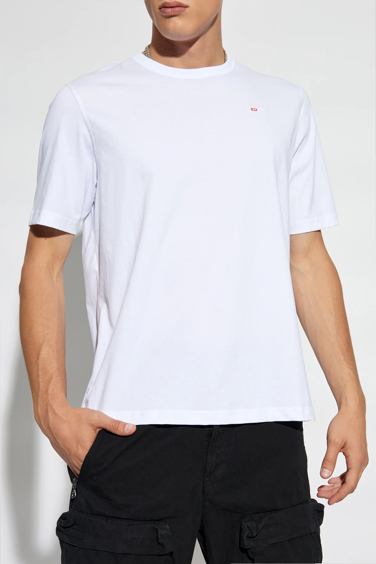 Introducing the T-ADJUST-MICRODIV, an exquisite white t-shirt from the exclusive collection by the renowned designer Diesel. This unisex tee is a testament to sophisticated minimalism and unparalleled comfort. Crafted from premium white cotton, the T-ADJUST-MICRODIV features a classic, straightforward cut that promises a timeless appeal. The short sleeves and round neckline enhance its versatile design, making it suitable for any occasion. The t-shirt boasts a minimalist aesthetic, adorned only with a subtle red logo on the left chest, which elegantly displays the designer's name in white. This discreet yet distinctive detail adds a touch of exclusivity to the garment, making it a standout piece in any wardrobe. Why Purchase This Product? Classic design with a sophisticated edge. High-quality cotton ensures comfort and durability. Unisex appeal, suitable for both men and women. Exclusive designer logo for a touch of luxury. Versatile piece, perfect for various occasions.