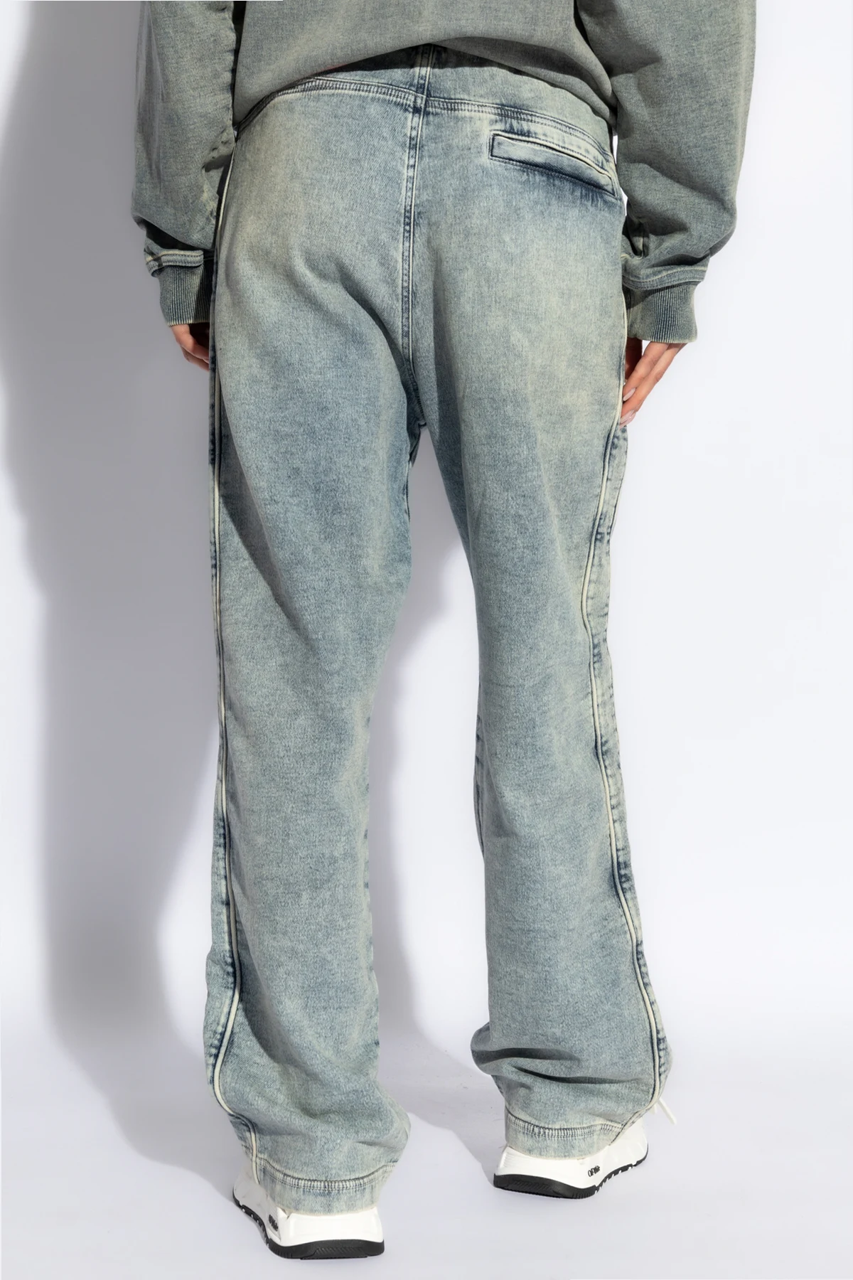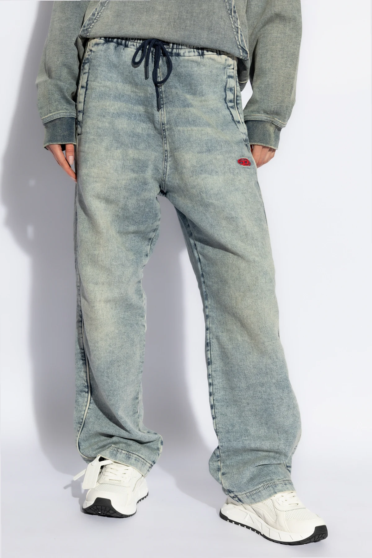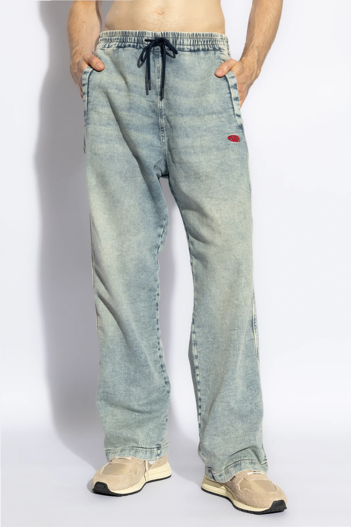 Introducing the D-MARTIANS trousers by renowned designer Diesel, a masterpiece that embodies the epitome of casual luxury and timeless style. Crafted from a premium blend of 98% Cotton and 2% Elastane, these trousers offer unmatched comfort and durability, ensuring they remain a staple in your wardrobe for years to come. The trousers boast a light blue hue, accentuated with a vintage stone washed effect and deliberate distressing, offering a nod to classic denim aesthetics while presenting a modern twist. The relaxed fit and straight-leg design, slightly tapered towards the bottom, ensure a flattering silhouette for all body types. The inclusion of an elastic waistband with black drawstring allows for customizable fitting, enhancing the overall comfort and wearability of the trousers. Distinctive features such as the vibrant red designer logo near the waistband elevate the trousers from ordinary to extraordinary, marking them as a genuine Diesel creation. The intricate denim weave is visible upon closer inspection, showcasing the quality and attention to detail that Diesel is celebrated for. Why Purchase This Product? Versatile stone washed design that complements any ensemble. High-quality blend of materials ensuring longevity and ease of care. Adjustable fit for maximum comfort and a personalized silhouette. Signature Diesel logo as a testament to designer quality and authenticity.