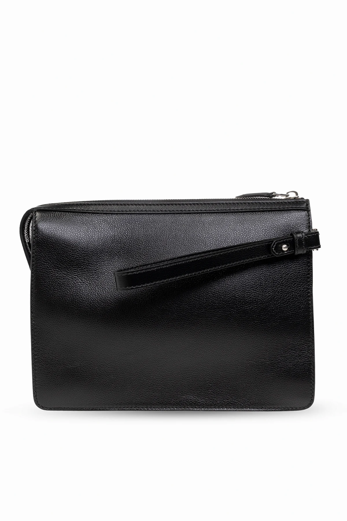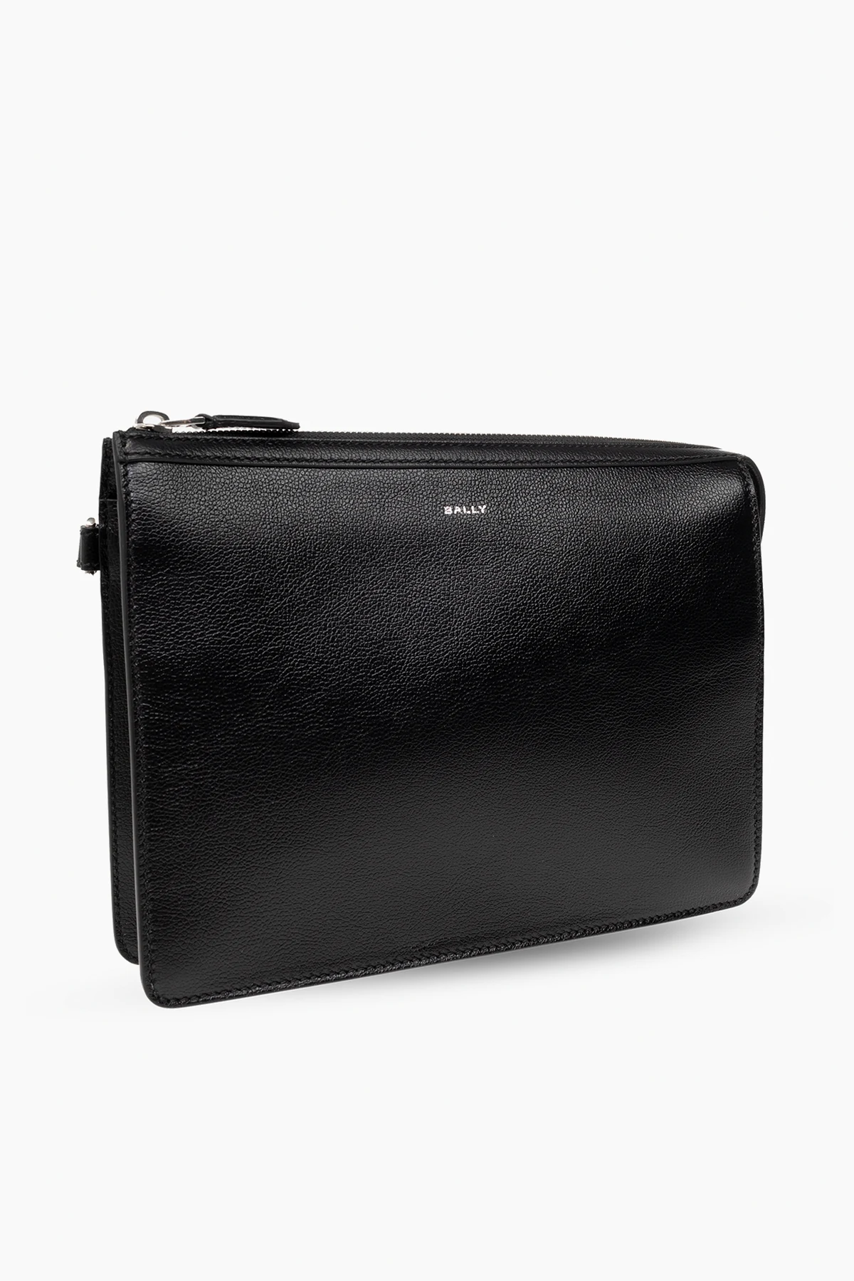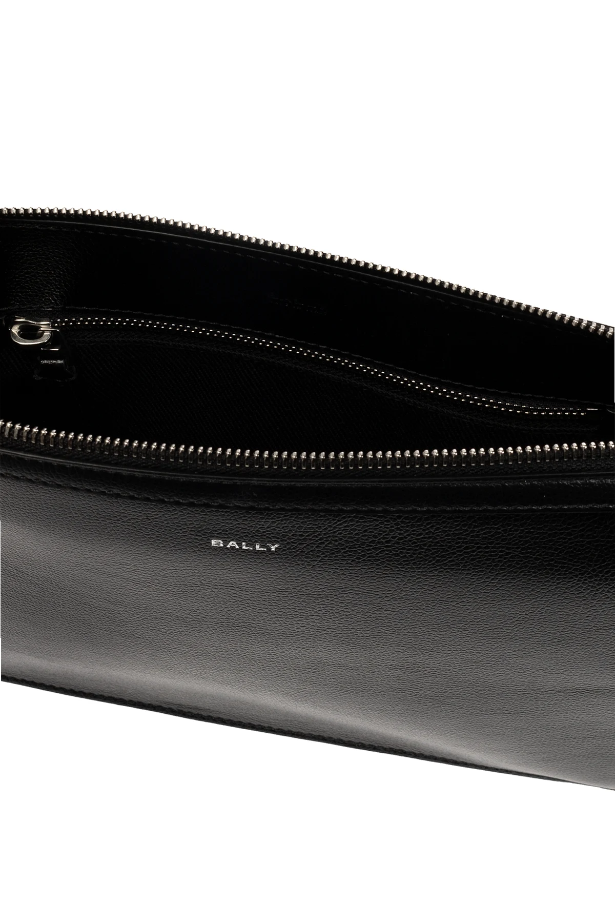 Black handbag from Bally. Crafted from leather, this item fastens with a zip and showcases a logo detail to the front, a removable wrist strap and an internal compartment with one zip and one slip pocket. The design is complete with silver-tone metal hardware.