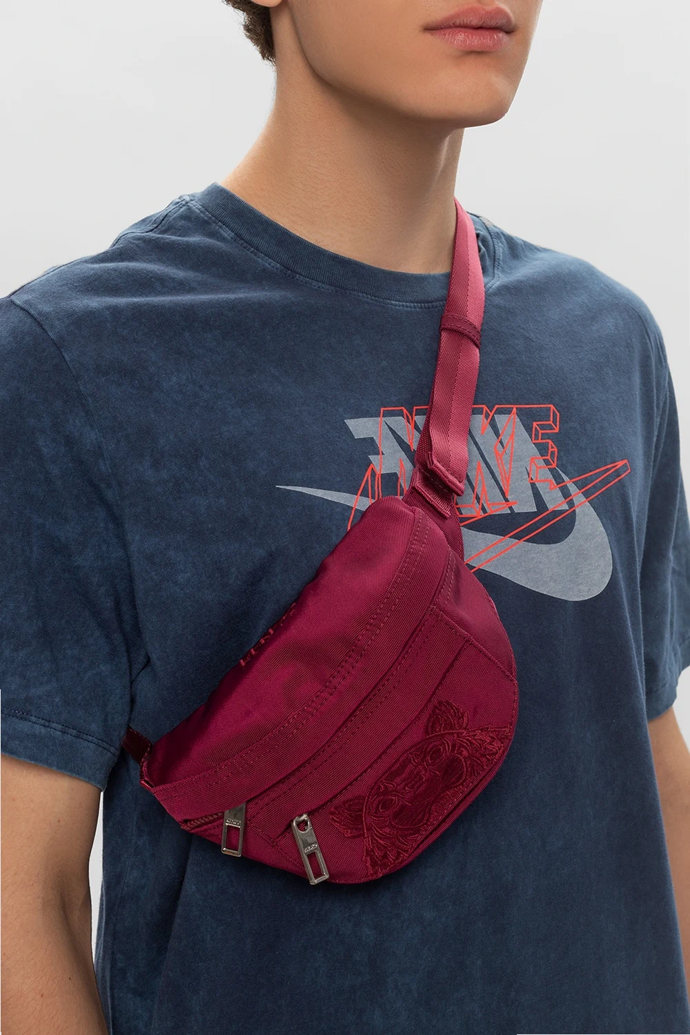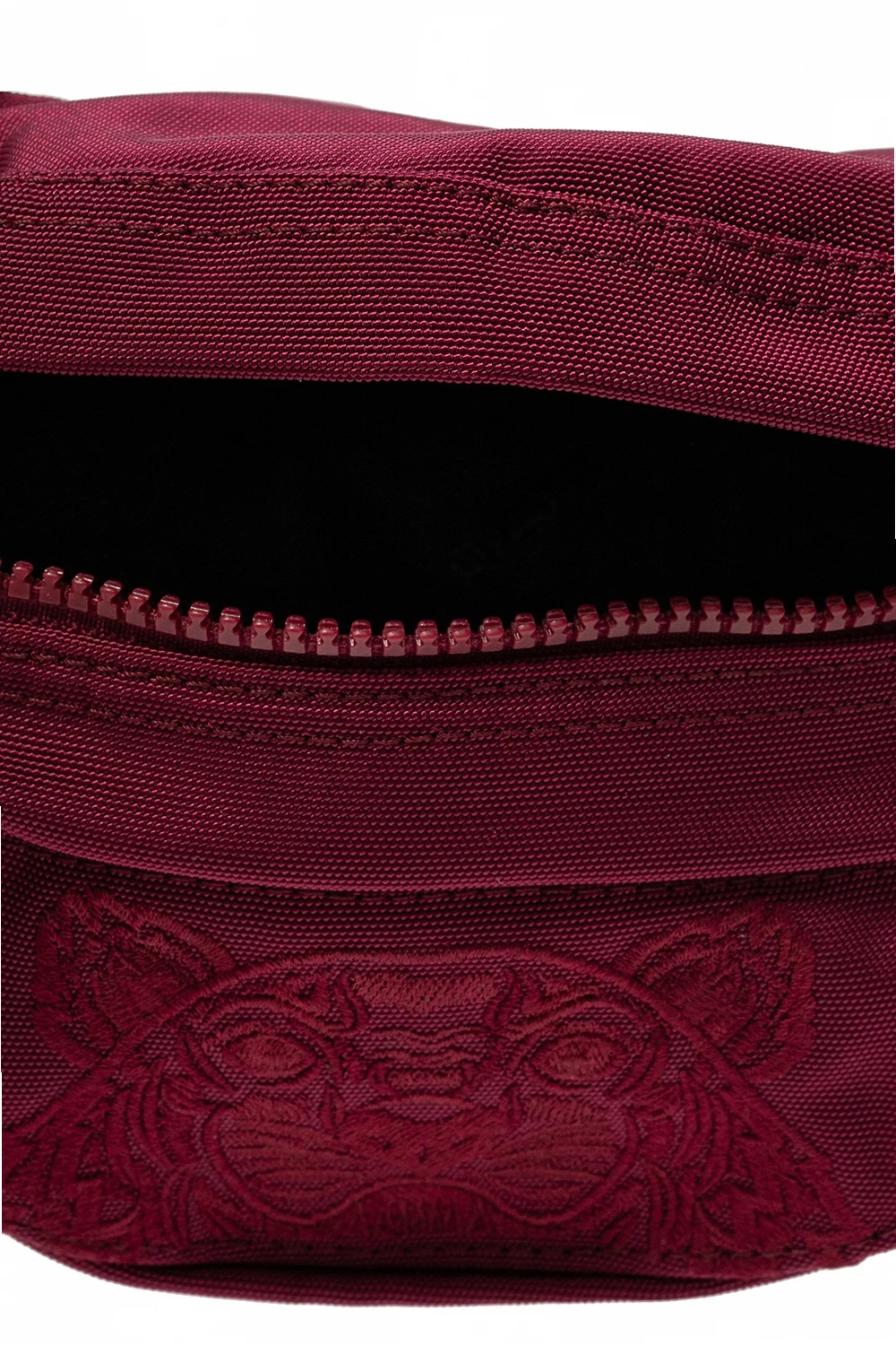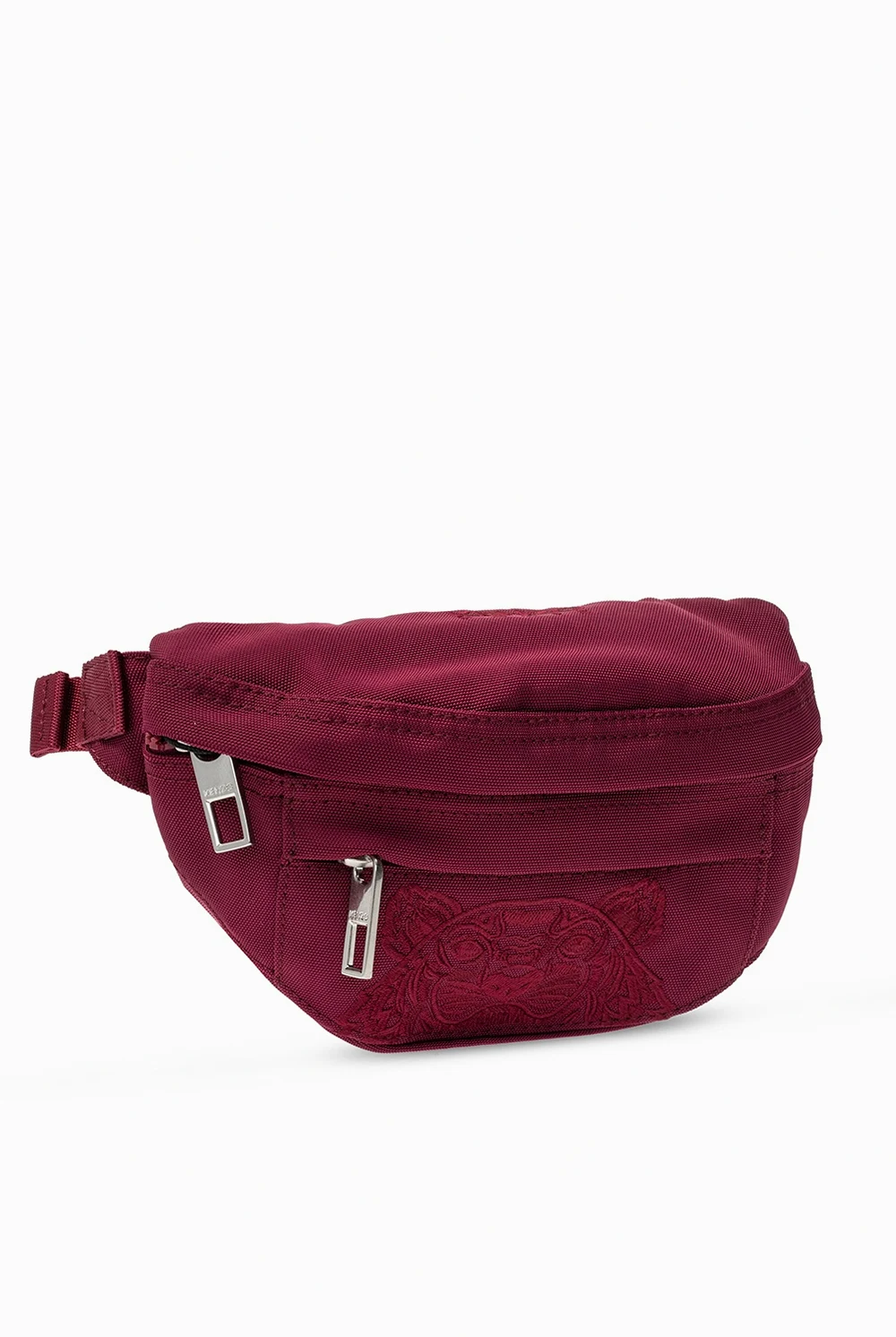 Maroon belt bag from Kenzo. Putting on view the label\'s highly recognisable motif of tiger head accompanied by a logo embroidery, this item fastens via zip and employs two external zip pockets on the front and back, one internal compartment and an adjustable strap.