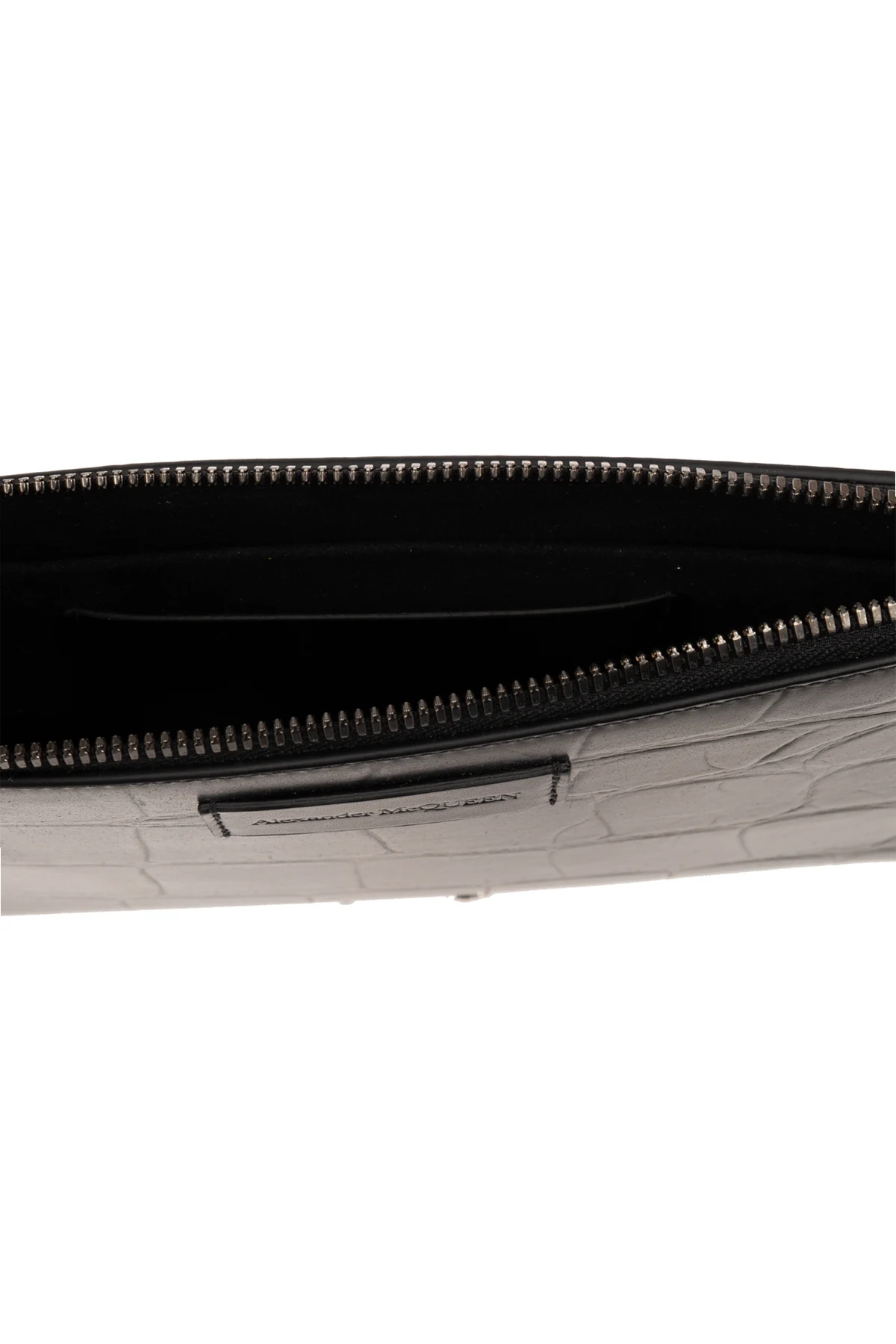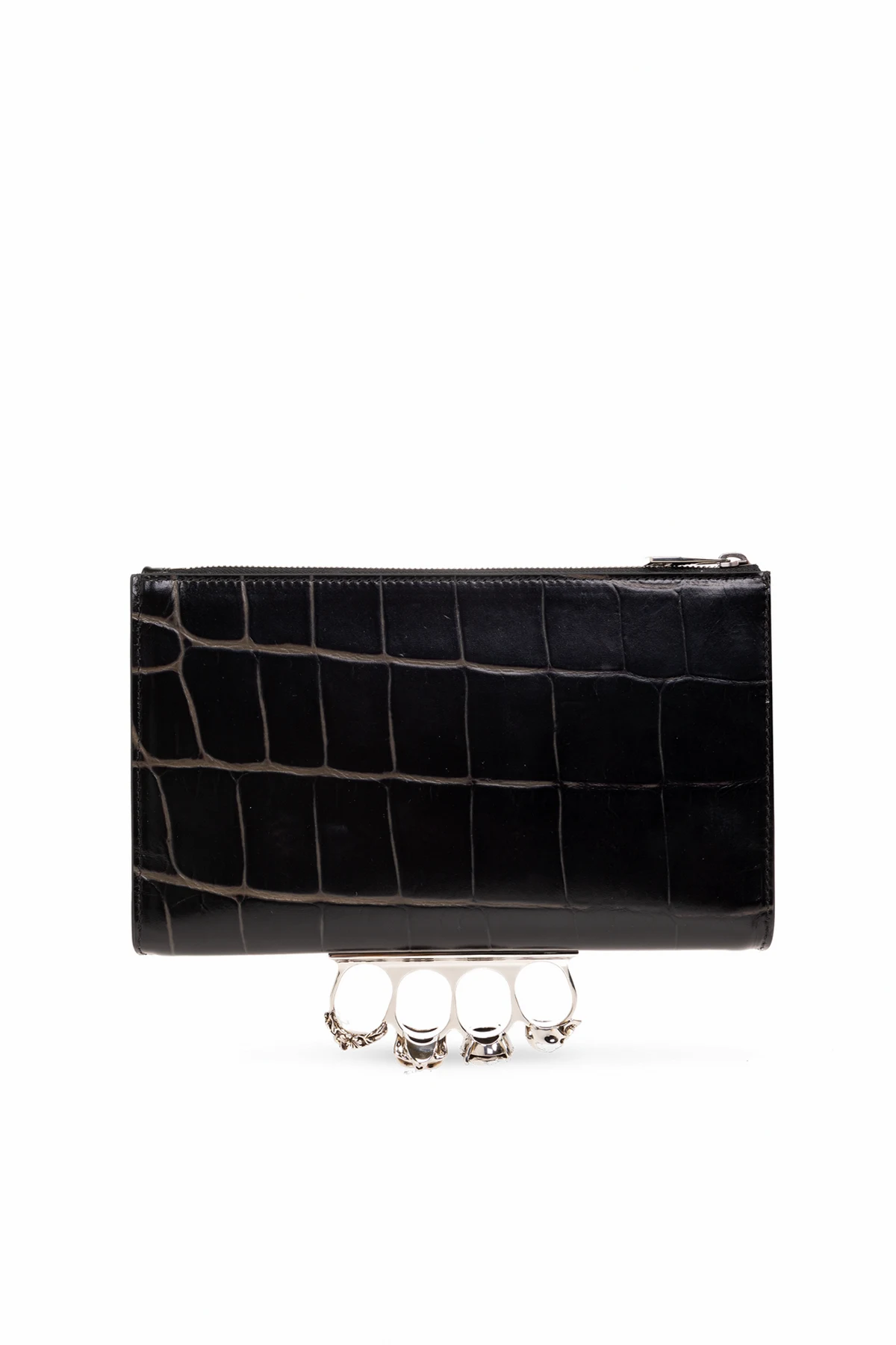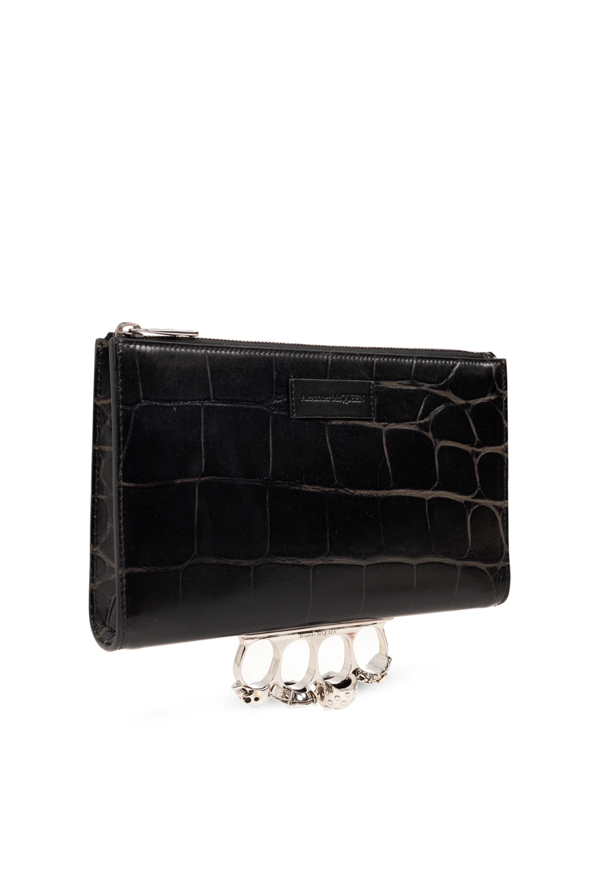 Introducing the epitome of sophistication and versatility - the Alexander McQueen Handbag. Crafted with the utmost attention to detail, this piece transcends the ordinary through its exquisite imitation crocodile leather exterior. The alluring black hue, combined with the unique, large-scale pattern of irregular \"scales\", imbues this handbag with a luxurious essence that\'s unmistakably opulent. The handbag is adorned with four metallic rings, each boasting a distinct, decorative design that enhances its elegance. These silver-toned rings, embellished with crystals and stones on one, are not just aesthetically pleasing but functional, allowing for a comfortable grip. Their mobility adds a practical touch to the bag\'s chic design, ensuring ease of carry. The bag\'s design seamlessly integrates functionality with style. A top zipper closure ensures the security of your belongings, while the interior compartment, slip pocket, and cardholder slot cater to organizational needs without compromising on elegance. Whether paired with a casual ensemble or a more formal outfit, this handbag adapts effortlessly, embodying the versatility that modern life demands. Why Purchase This Product? Luxurious imitation crocodile leather exterior for an opulent look. Unique metallic rings with decorative designs for an elegant touch. Practical top zipper closure for secure storage. Versatile design suitable for various occasions and outfits. Interior compartment, slip pocket, and card slot for organized storage.