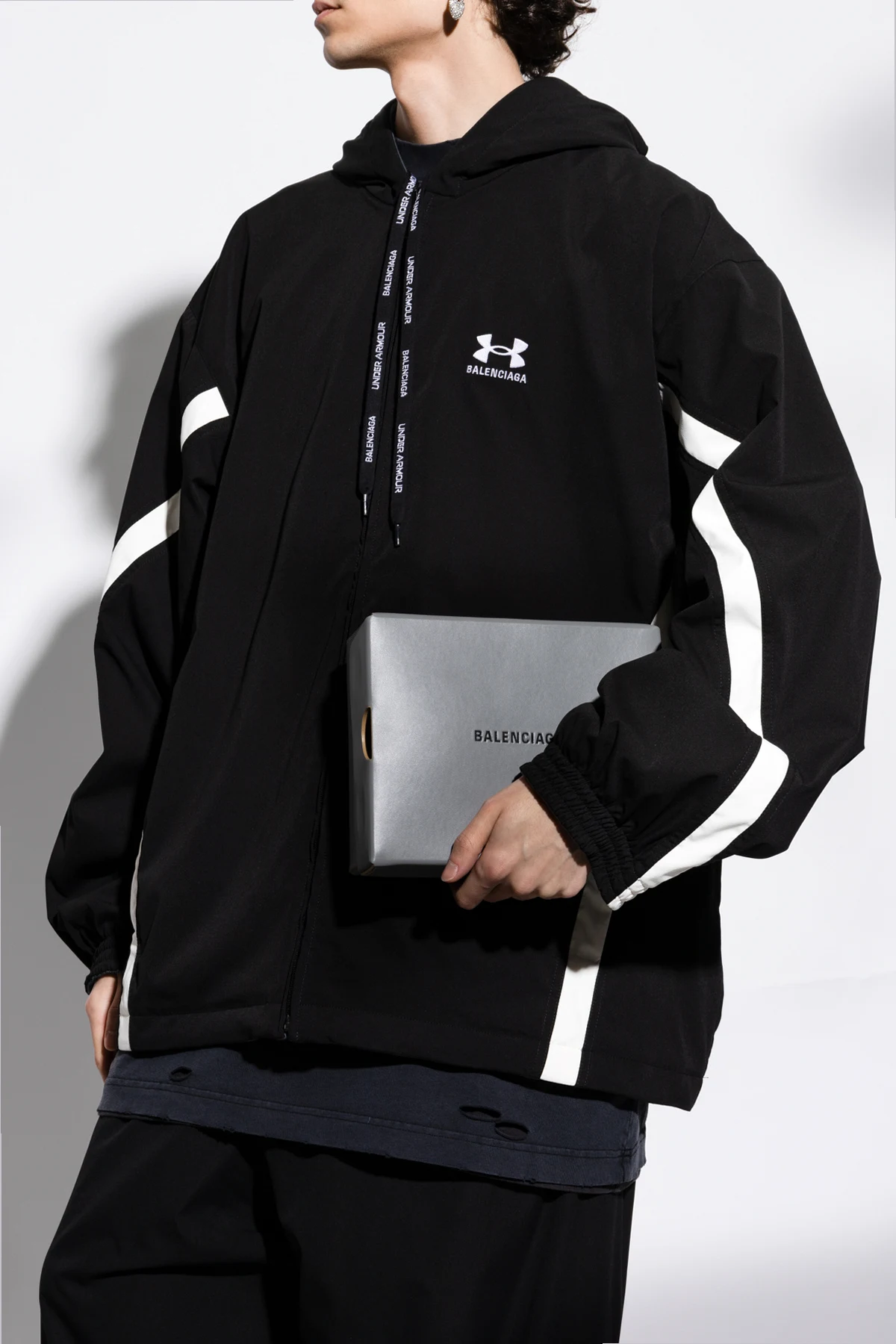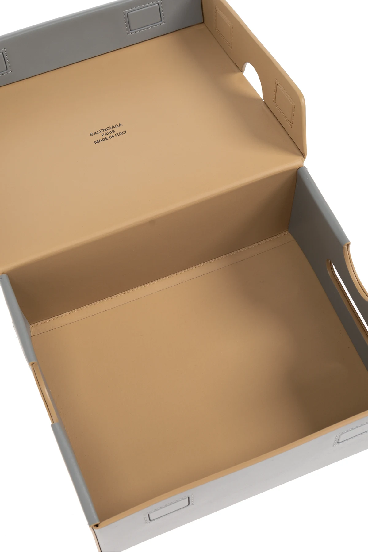 Introducing the SN Box CL Small Clutch by the eminent house of Balenciaga, a paragon of minimalistic elegance and avant-garde design. This exquisite clutch, enveloped in a sophisticated gray hue, is meticulously crafted from premium calfskin leather, exuding an aura of timeless luxury. The clutch boasts a rectangular, box-like silhouette with a robust structure, embodying the brand\'s penchant for precision and innovation. The iconic black \"BALENCIAGA\" logo graces the front, serving as a testament to its rich heritage. Inside, you are greeted with a contrasting beige lining, accentuating the clutch\'s refined sophistication. The design is further enhanced with thoughtfully placed side cutouts, doubling as subtle handles. A magnetic snap closure secures the single interior compartment, offering both functionality and elegance. Why Choose This Product? Elegant gray hue with a luxurious leather finish. Iconic Balenciaga branding with a modern twist. Unique side cutouts for added style and functionality. Secure magnetic snap closure for effortless use. Perfect fusion of classic craftsmanship and contemporary design.