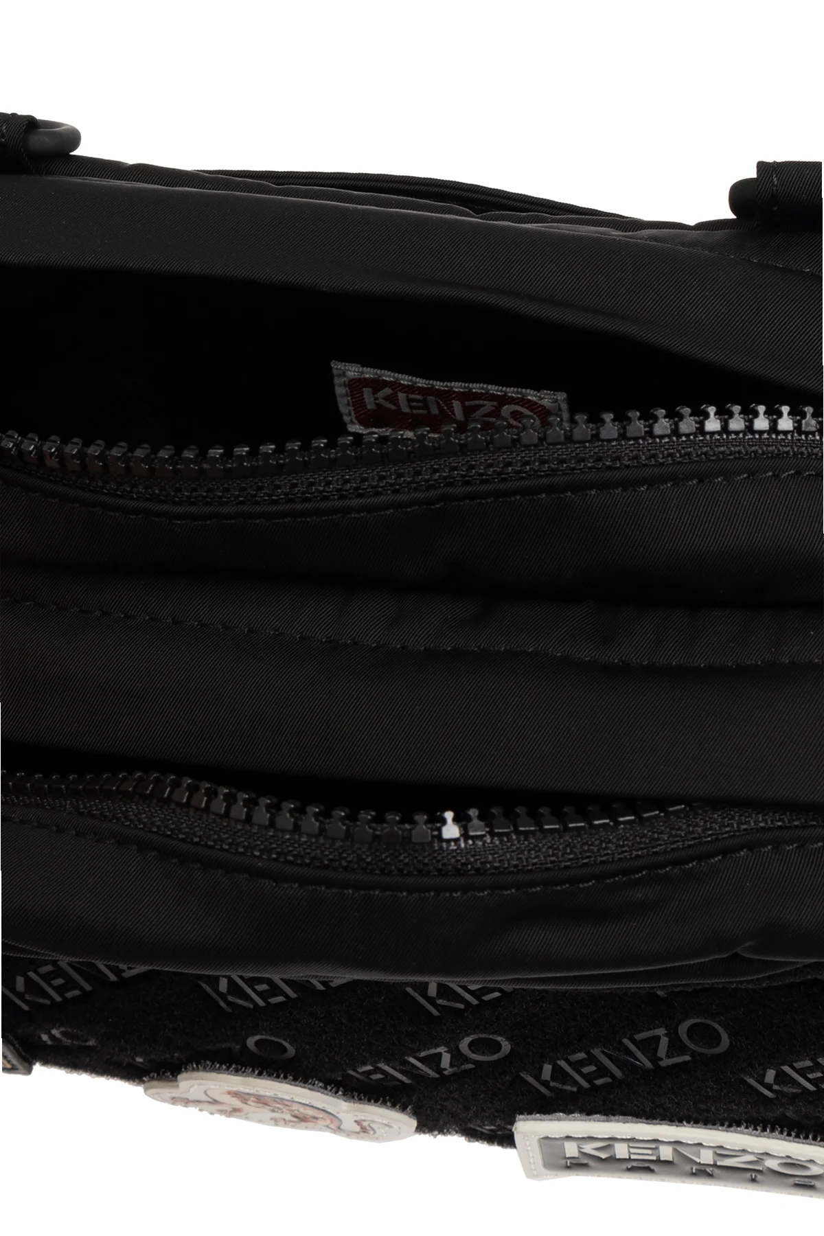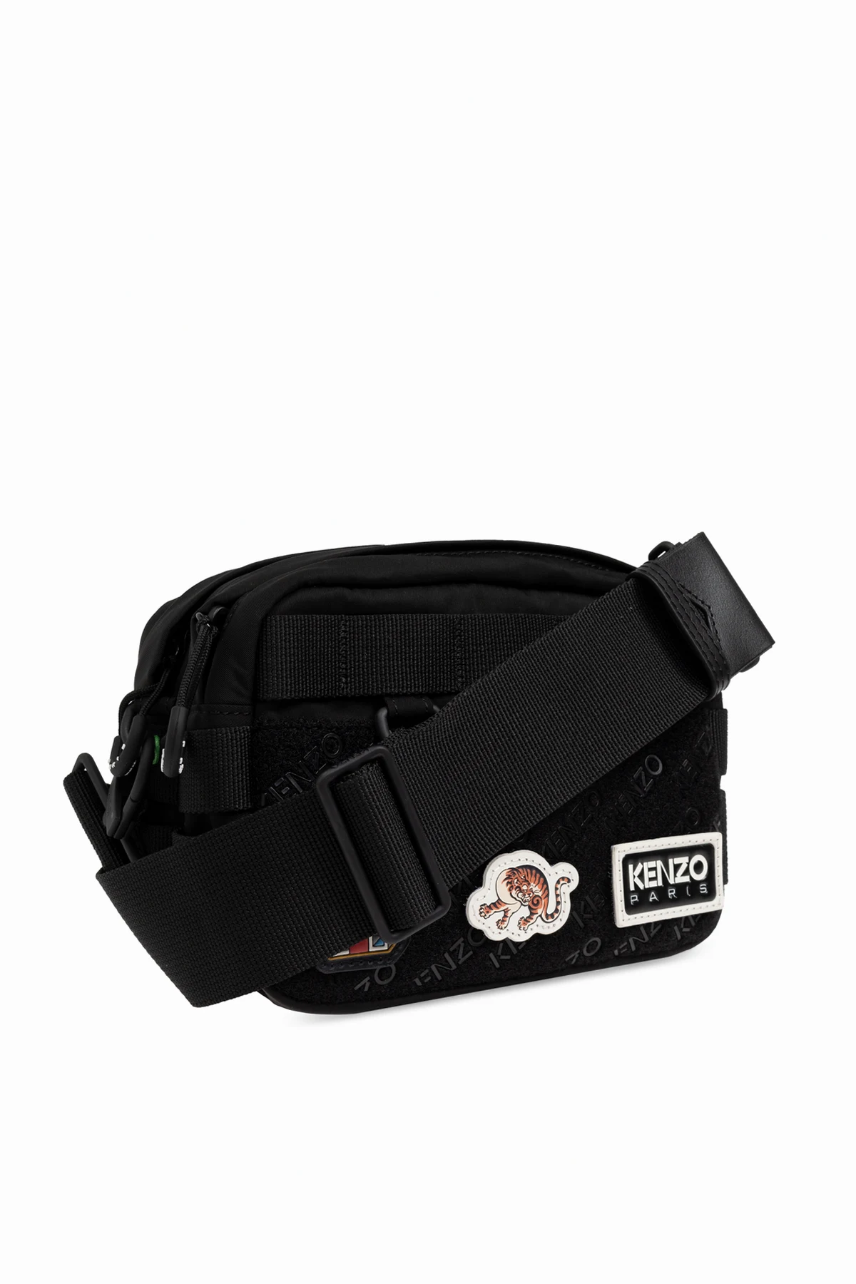 Introducing the exclusive Kenzo Waist Bag, an epitome of refined elegance and contemporary design. This rectangular bag with rounded edges is crafted from a durable black fabric, a blend of polyester and nylon, ensuring resilience against the elements. The bag is adorned with embroidered elements, featuring a subtle repeating pattern of the \"KENZO\" logo on its material. The front is decorated with several distinctive patches, including a black rectangle with \"KENZO PARIS\" bordered in white, a colorful tiger motif, and a vibrant patch with the number \"70.\" Functionality meets style with multiple zippered compartments, providing ample space for organization. The interior boasts two main zippered compartments and a card slot, catering to all your essentials. The adjustable strap offers versatility, allowing the bag to be worn around the waist or over the shoulder for optimal comfort. The dominant black hue bestows a timeless and universal appeal, making this piece a versatile addition to any wardrobe. The Kenzo Waist Bag seamlessly blends practicality with a modern aesthetic, making it an exceptional accessory for the discerning gentleman. Why Choose This Product? Premium Quality: Made from a durable blend of polyester and nylon. Stylish Design: Features unique embroidered elements and distinctive patches. Functional: Multiple zippered compartments for easy organization. Versatile: Adjustable strap for wearing around the waist or over the shoulder. Elegant Appearance: Timeless black color with a modern design.