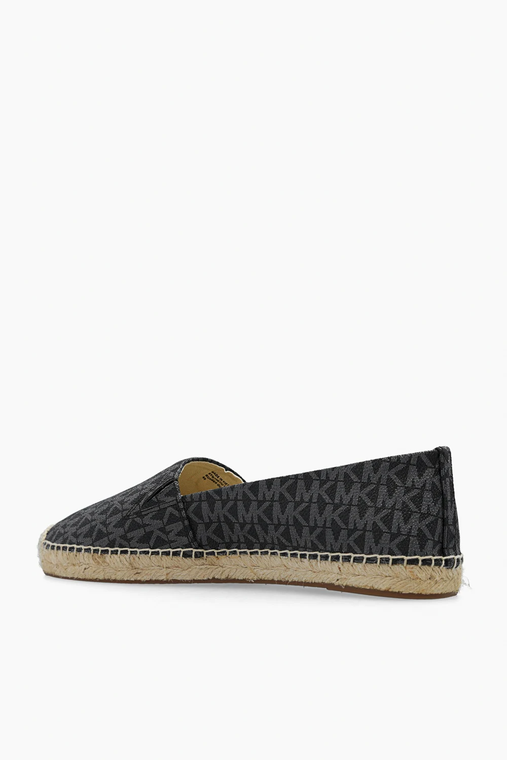 Black and grey ‘Kendrick’ espadrilles from Michael Michael Kors. Crafted from monogrammed coated canvas, this model features logo hardware on the front and a beige sole in woven jute and rubber.