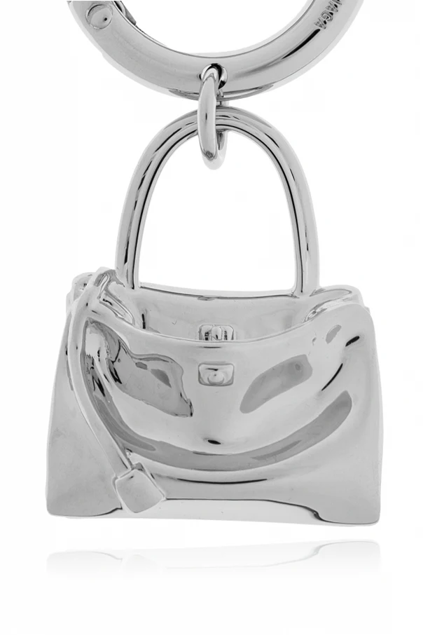 Distinctive in both form and finish, this silver-toned brass keychain by Balenciaga encapsulates refined minimalism with a nod to timeless sophistication. Expertly crafted from highly polished metal, the keychain features a miniature purse silhouette with rounded lines and a well-defined handle—a tribute to iconic baguette and city bag designs. Meticulous attention is paid to the details: subtle engravings emulate authentic features such as a clasp, topstitching, and delineated pockets, all thoughtfully arranged to echo the essence of luxury handbags. Its lustrous, mirror-like surface amplifies both its exclusivity and modern charm, rendering it an exquisite accent for your essentials. The finely inscribed logo elegantly affirms its heritage. Why choose this product? Authentic design inspired by prestigious Balenciaga collections Exquisite, high-gloss silver brass construction for lasting allure Realistic, artful detailing that sets it apart Perfectly balances utility with elevated style