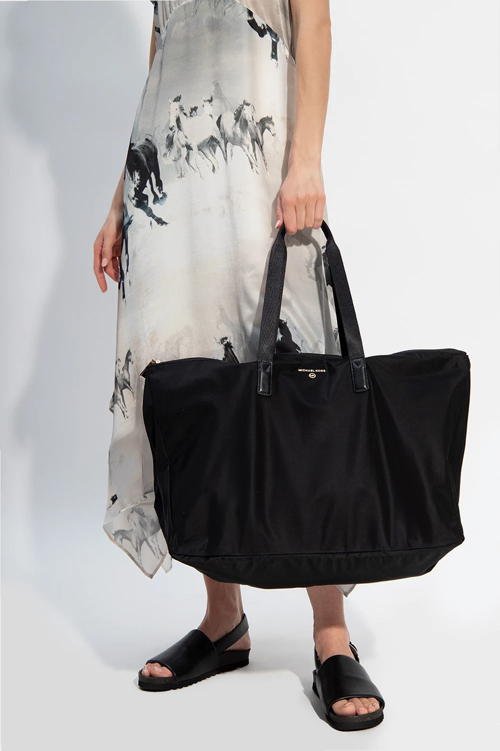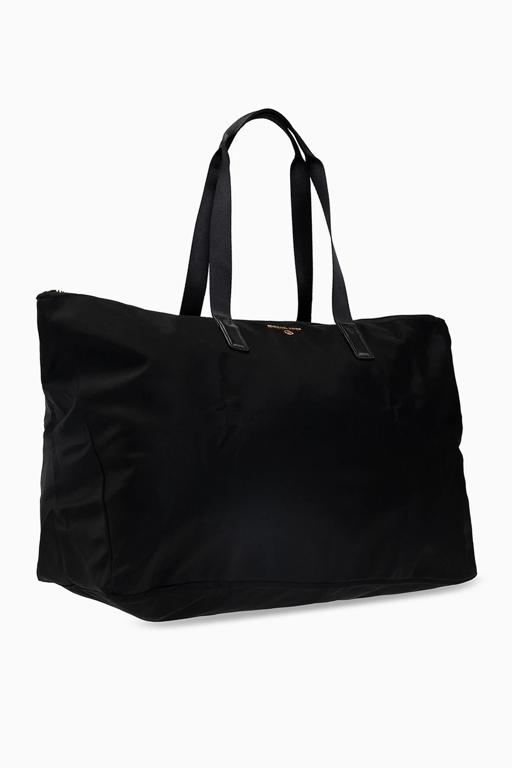 Black ‘Jet Set Travel’ holdall bag from Michael Michael Kors. Fastened with a zip, this design features a metal logo in gold-tone two half-round handles, gold-tone metal hardware and one internal compartment with a detachable zipped pouch.