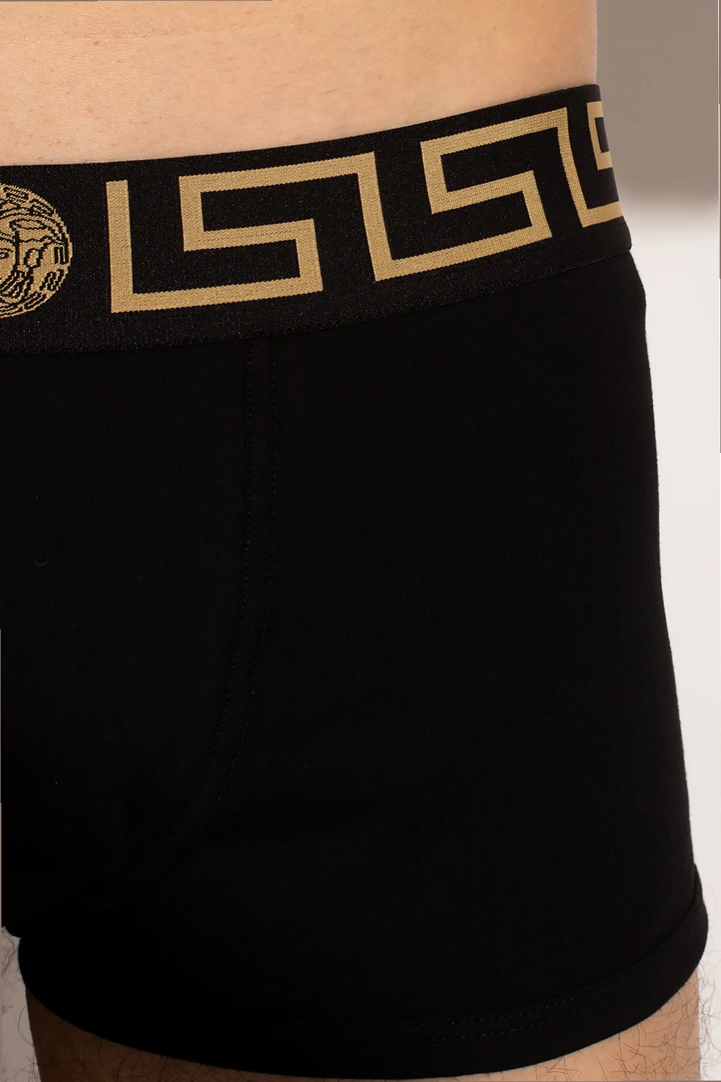 Black boxers three-pack from Versace. Made from stretch cotton, they feature an elasticated waistband with an embroidered gold-tone Medusa head.