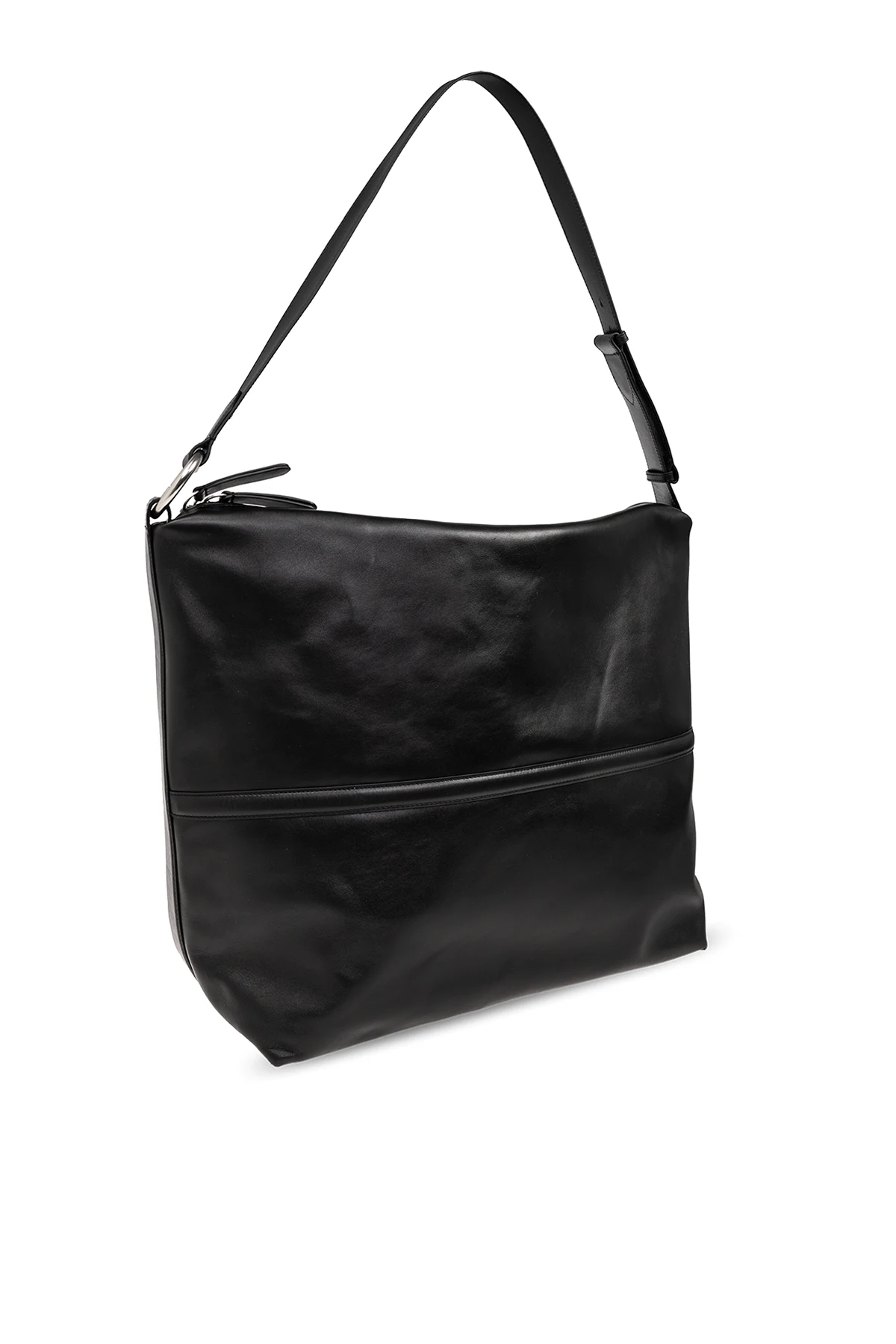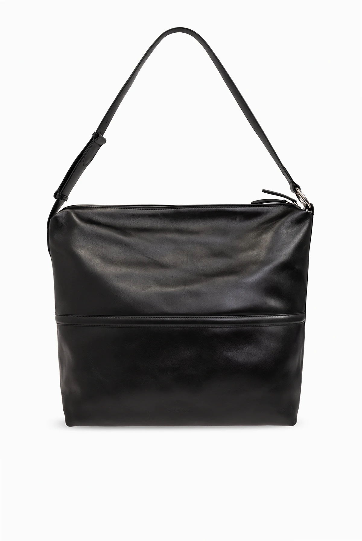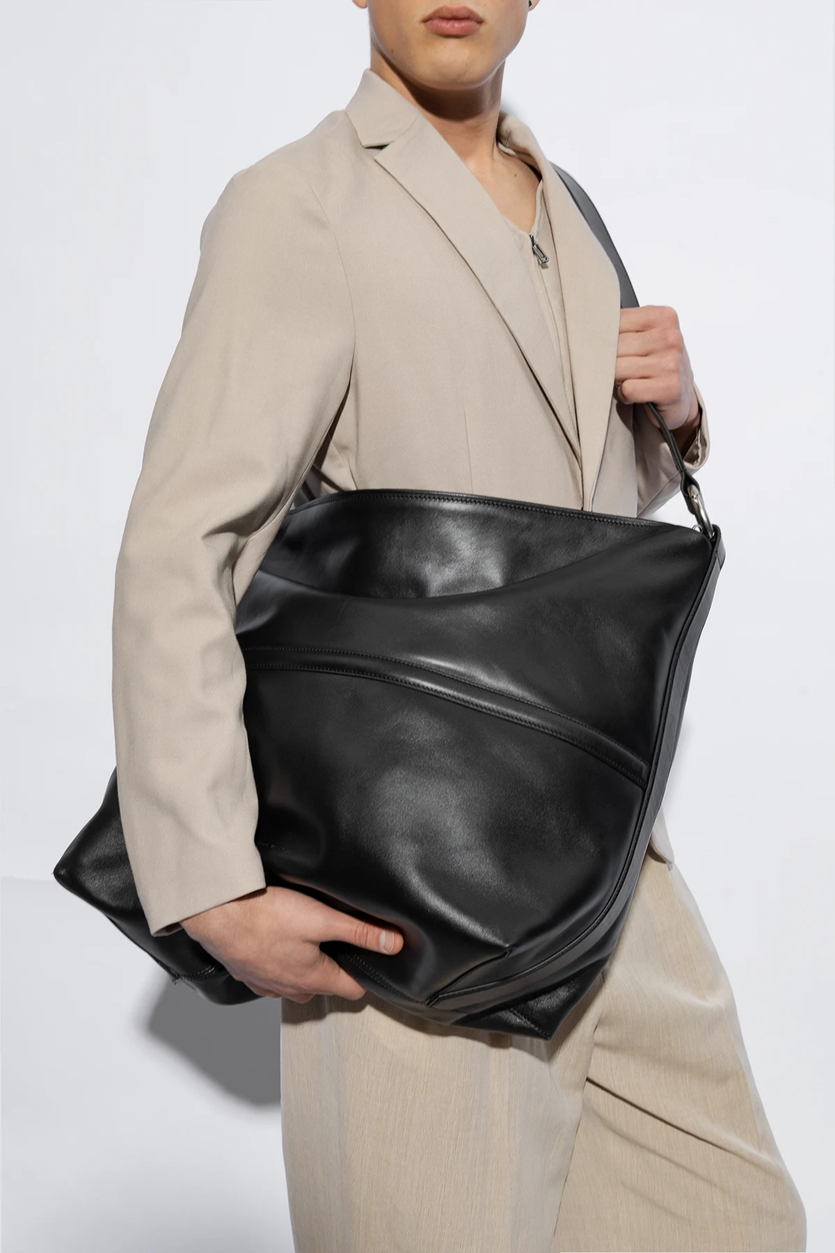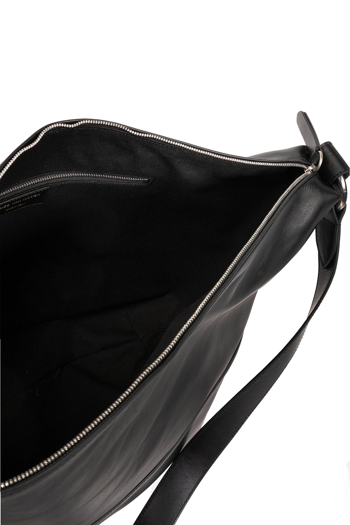 Black travel bag from Dries Van Noten. Made of leather, this design features a two-way zip, embossed logo, adjustable strap, silver-tone metal hardware and one internal compartment with one zip pocket.