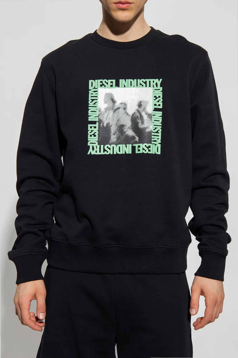 Black \'S-GINN-HS3\' crewneck sweatshirt from Diesel. Made of cotton, this design is enriched by a multicolored logo print as well as ribbed trims at the hem and cuffs.