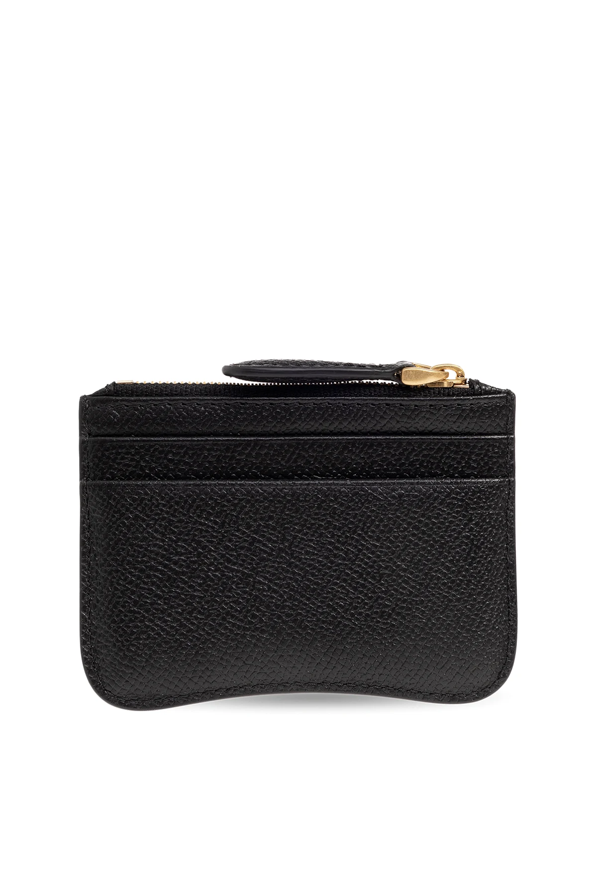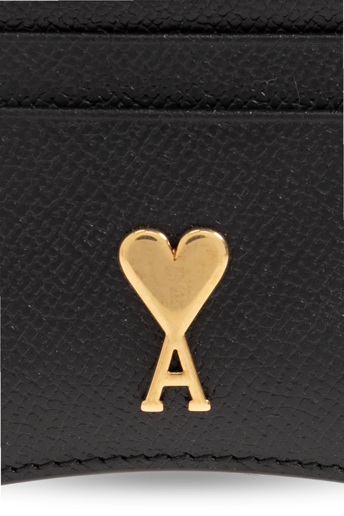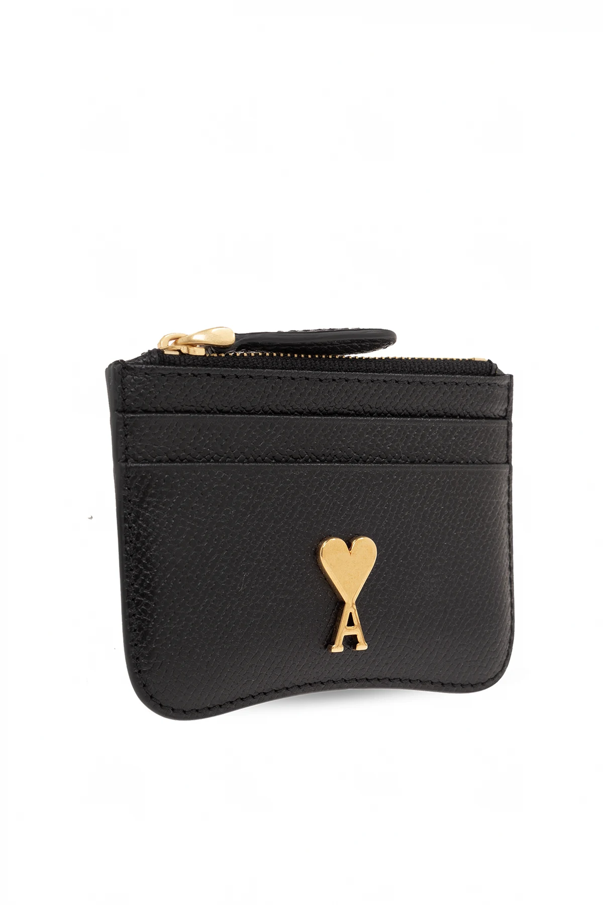 Black card holder from Ami Alexandre Mattiussi. Made of grained goat leather, this item features a metal logo detail in gold-tone, four card slots and one zip pocket.