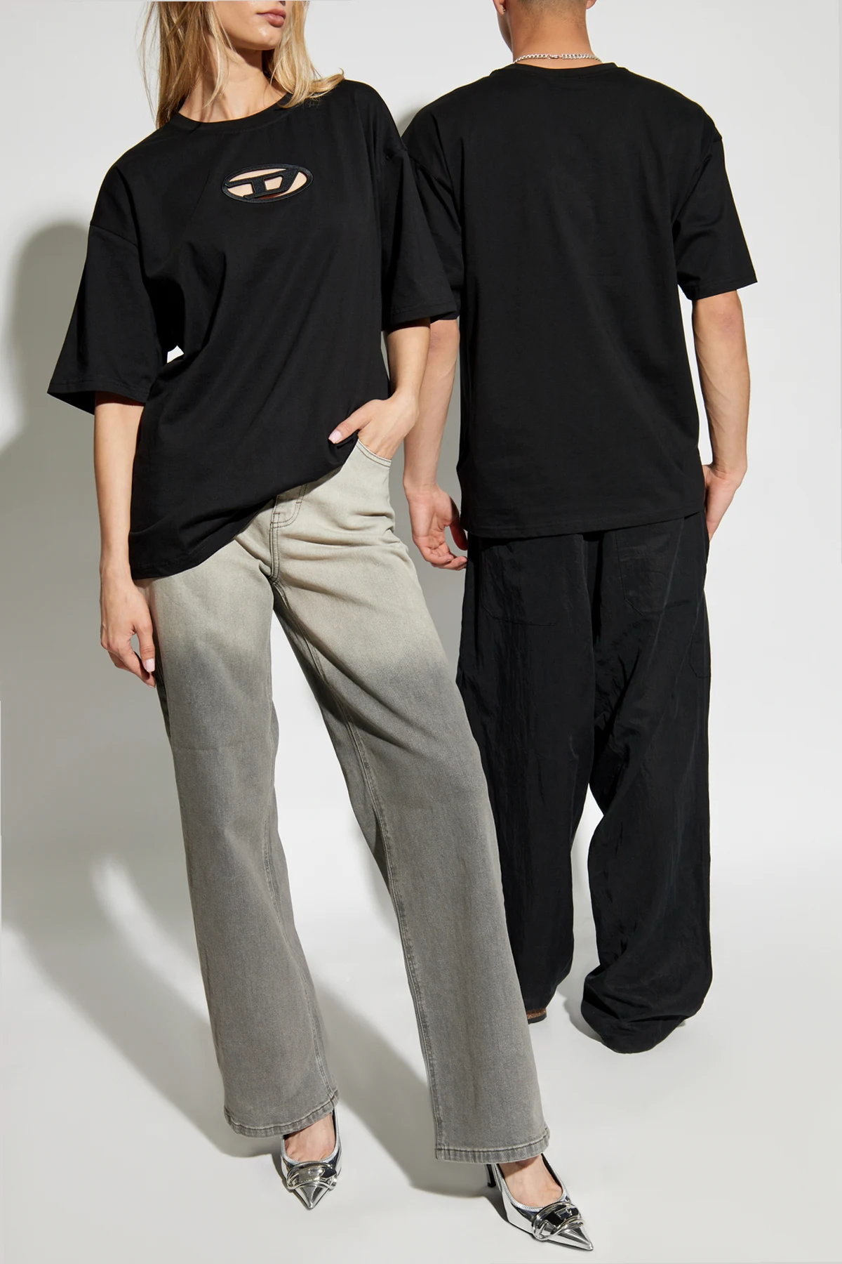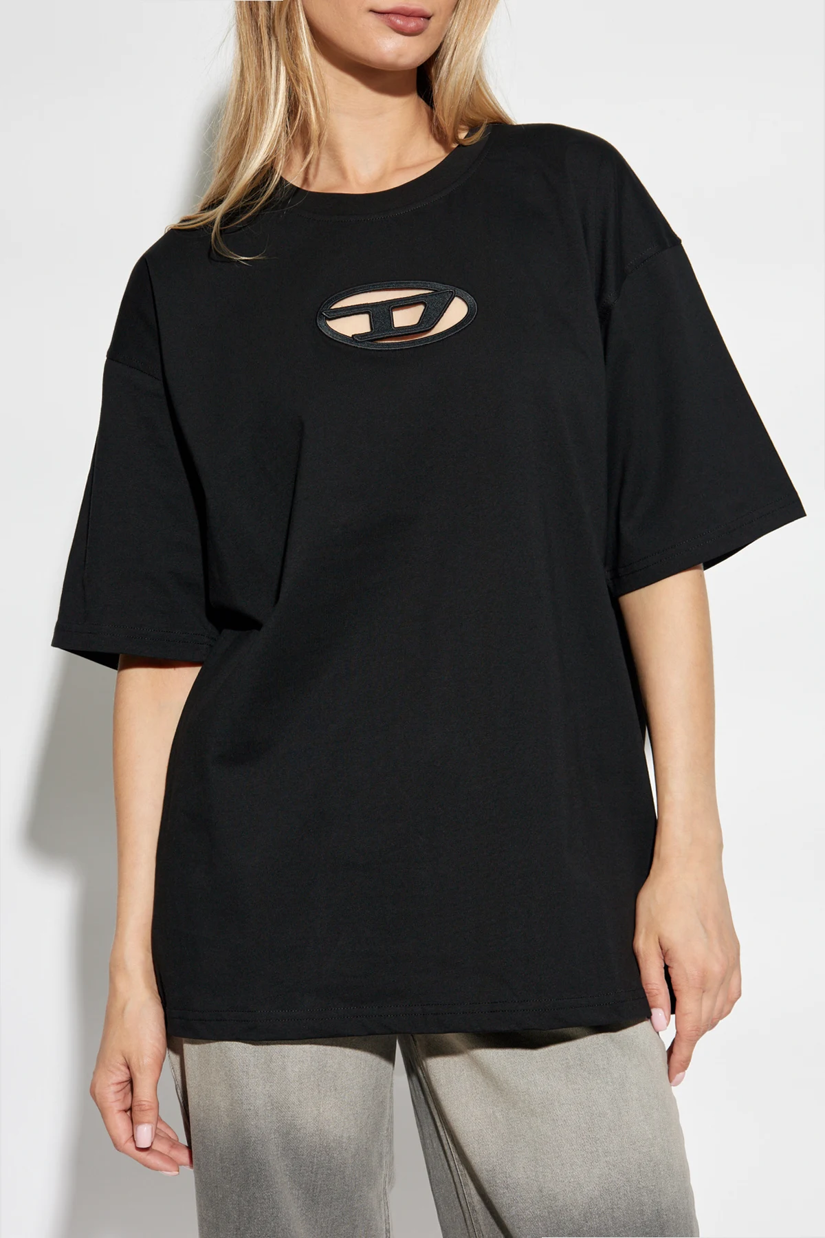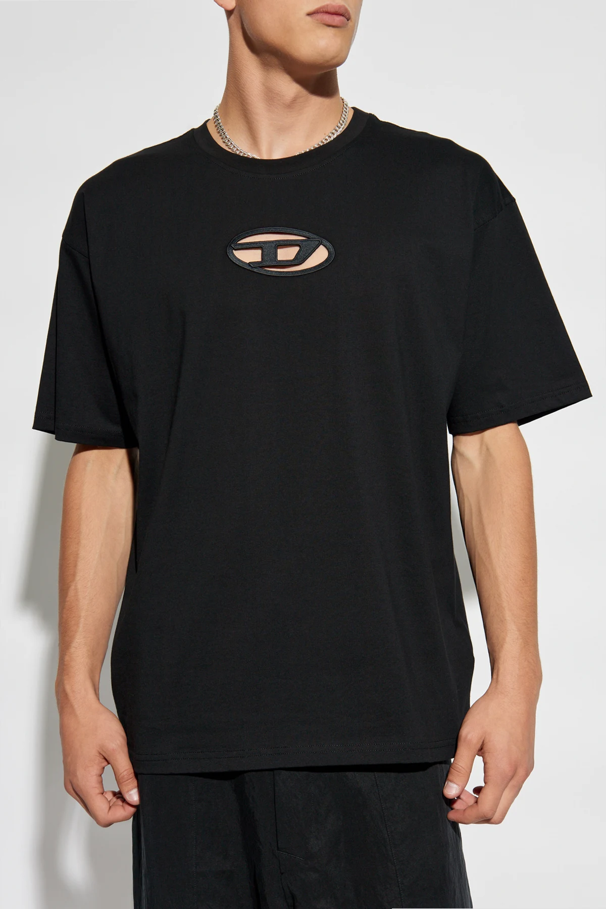 Introducing the T-BOXT-OD, a sublime creation by the esteemed designer, Diesel. This unisex black T-shirt epitomizes minimalist sophistication and features a refined silhouette with short sleeves and a classic round neckline. Crafted from premium quality cotton, it promises unparalleled comfort and durability. The pièce de résistance is the distinctive oval cut-out on the chest, adorned with the designer\'s emblematic \"D\" logo, adding a touch of avant-garde elegance. On the inside, a red label with white lettering subtly indicates the brand\'s hallmark of excellence. The back of the T-shirt remains sleek and unadorned, providing a clean and timeless look. Why Choose This Product? Exclusive design by Diesel, renowned for its innovative fashion. Unisex appeal, showcased on both male and female models. High-quality cotton material ensures comfort and longevity. Unique oval cut-out with a prominent \"D\" logo for a distinctive look. Timeless black color that complements any wardrobe.