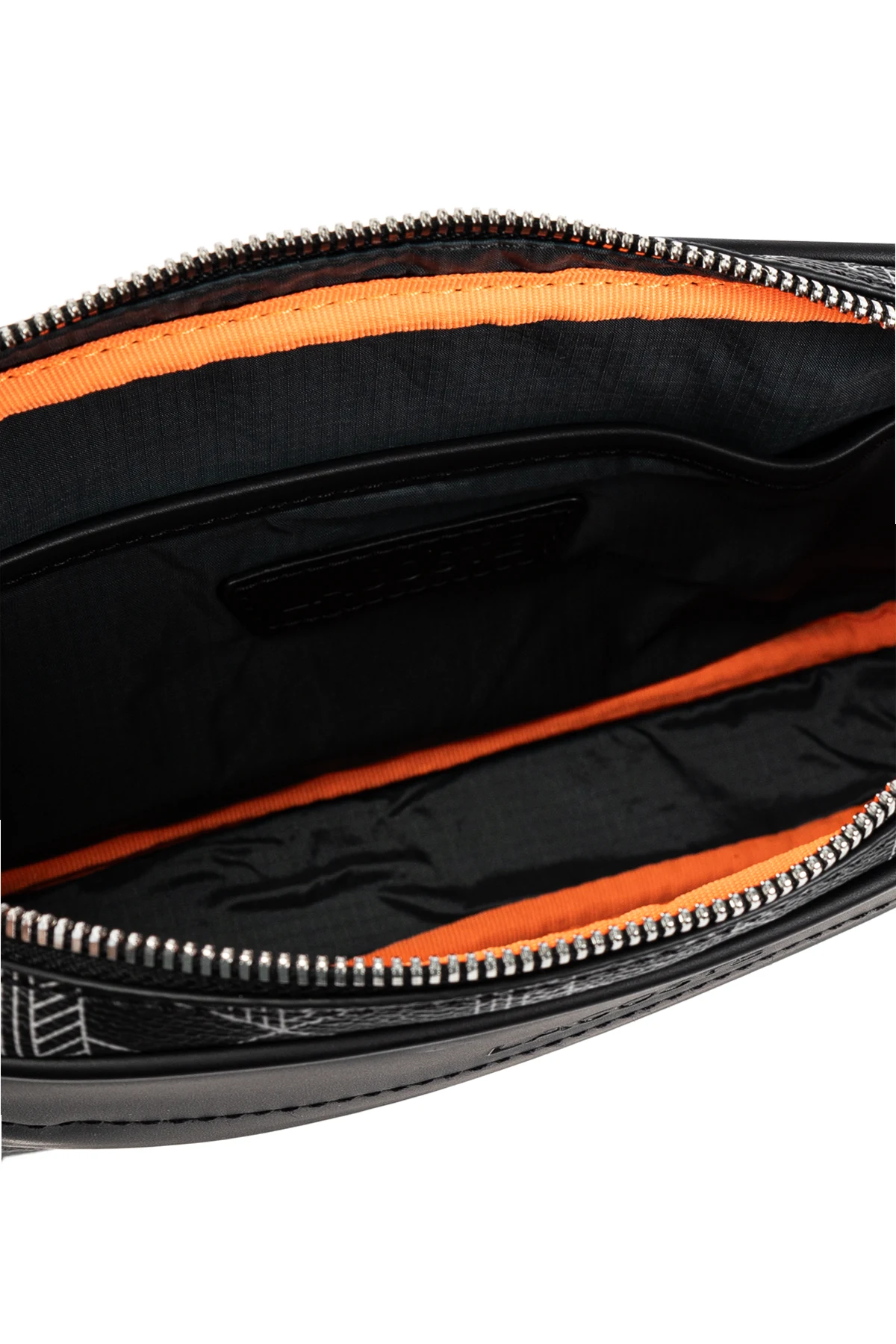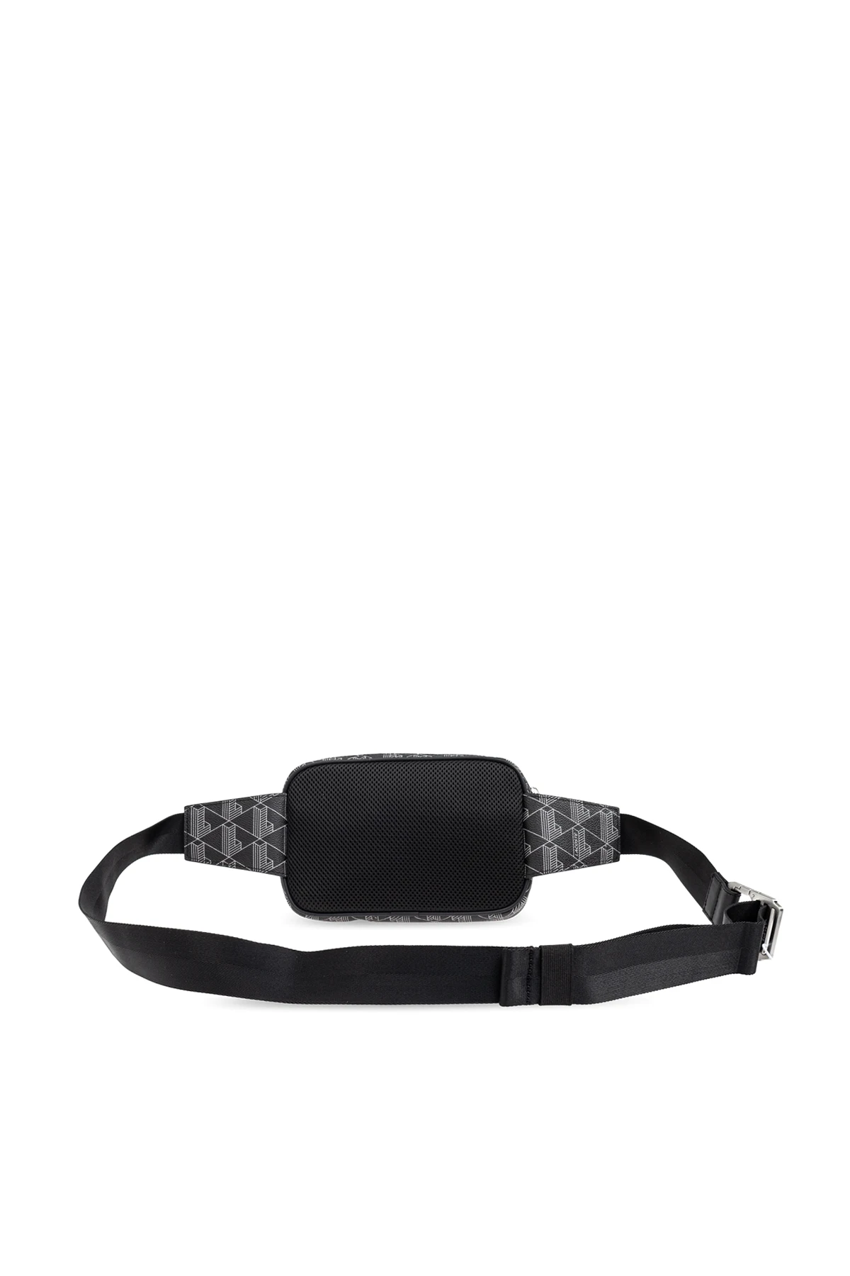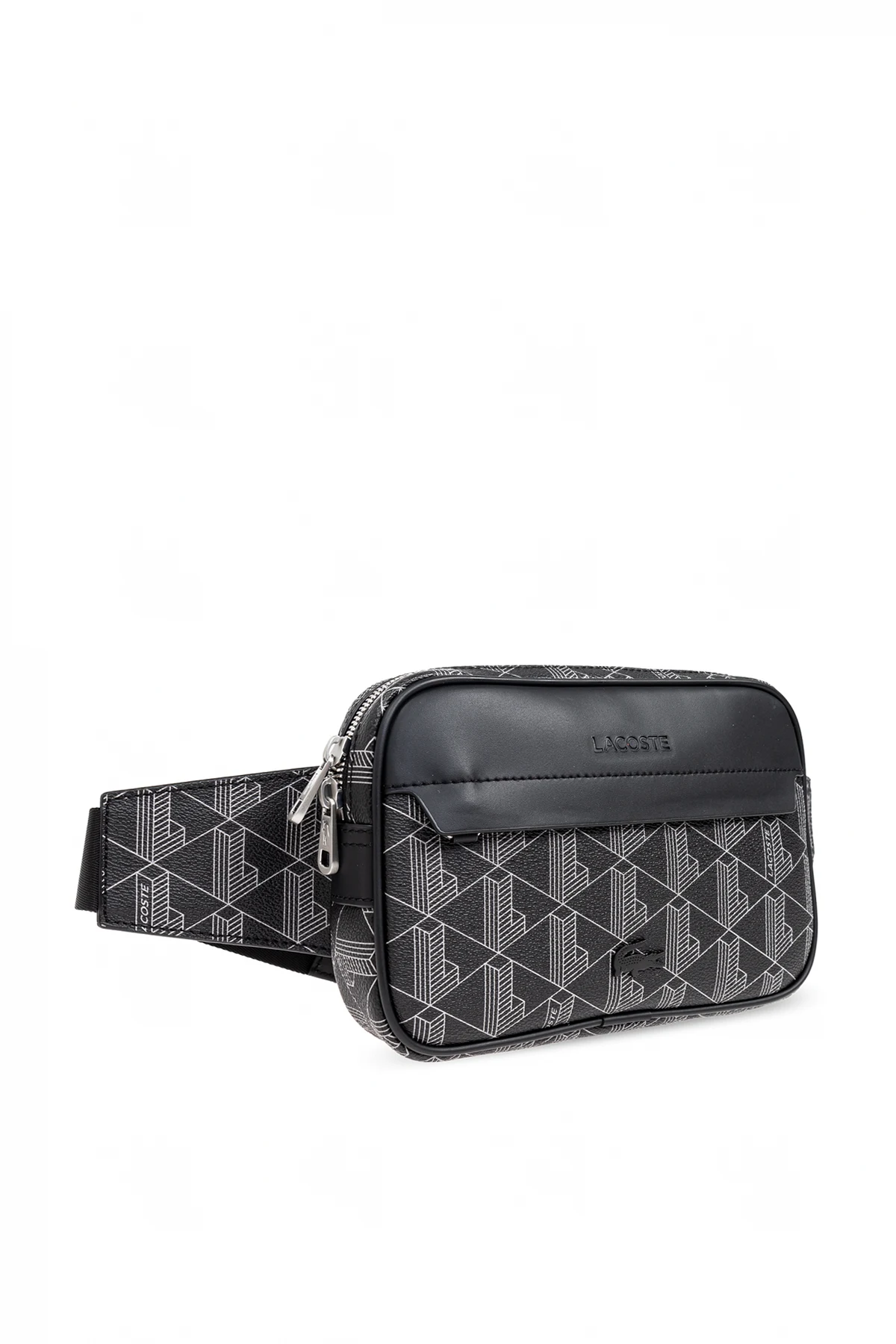 Introducing the Black Belt Bag from Lacoste\'s exclusive collection—an epitome of modern elegance and practicality. This compact bag, designed with a sleek rectangular shape and rounded corners, is perfect for wearing around the waist or across the shoulder. Adorned with a sophisticated geometric pattern of white lines forming three-dimensional cubes, the bag exudes a contemporary and refined appeal. Crafted from high-quality canvas with a matte finish, the front showcases an additional element of smooth, darker material, enhancing its luxurious texture. The front features the embossed Lacoste logo accompanied by the iconic black crocodile, a testament to the brand\'s heritage. The bag is equipped with a top zipper and an extra front pocket secured with a silver-finished zipper, adding a touch of elegance. The interior, lined with black material and accented with a striking orange detail, offers a main compartment and additional small pockets for organizing essentials. The adjustable strap, partially made from the same material as the bag and partially from black tape, ensures a comfortable fit for every individual. This belt bag, designed for men, seamlessly combines functionality with stylish design, making it an ideal accessory for daily use and a chic addition to any outfit. Why choose this product? High-quality canvas material with a matte finish Elegant geometric pattern with 3D cubes Embossed Lacoste logo and iconic crocodile emblem Secure silver-finished zippers Spacious interior with additional pockets Adjustable strap for versatile wear Perfect blend of functionality and style