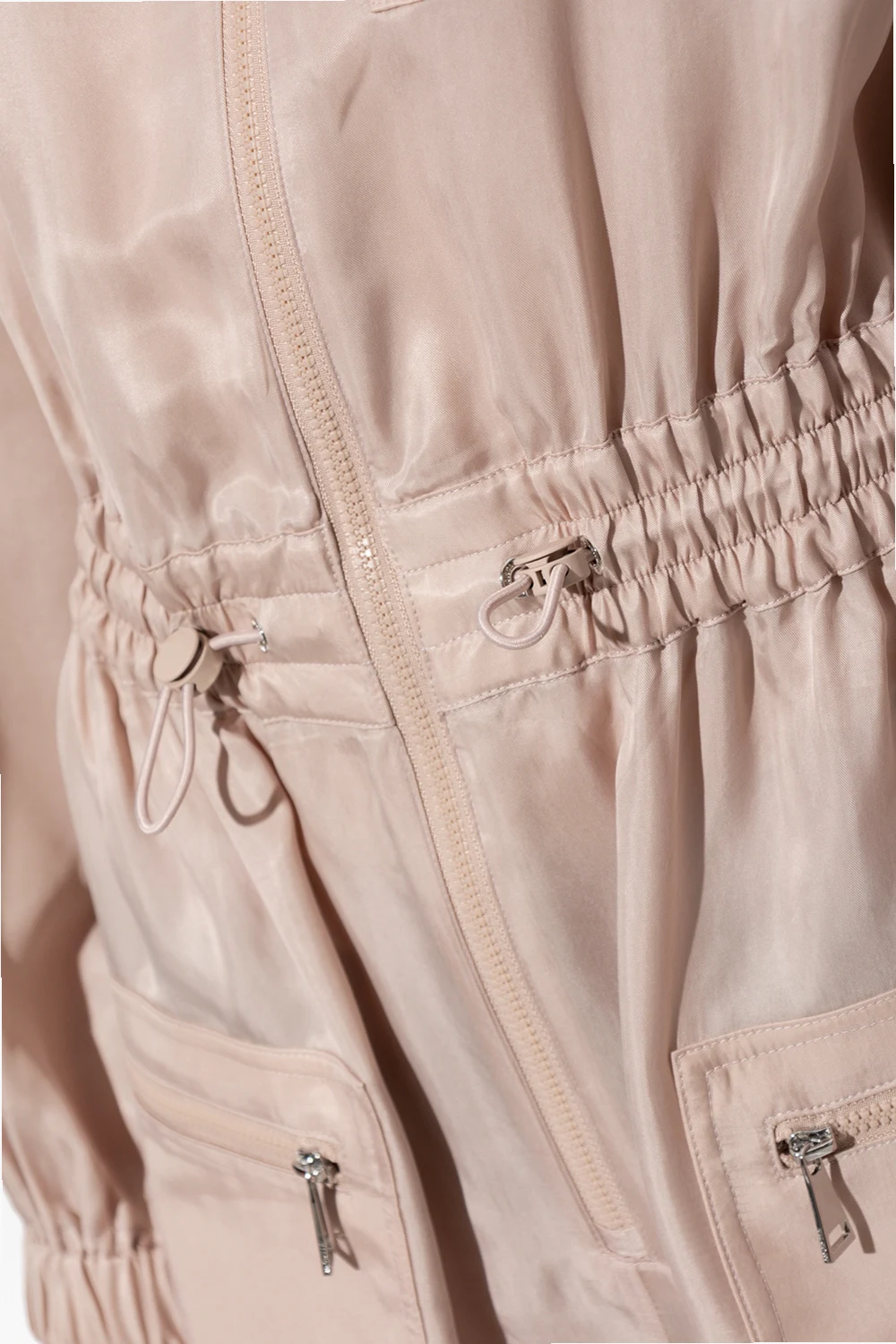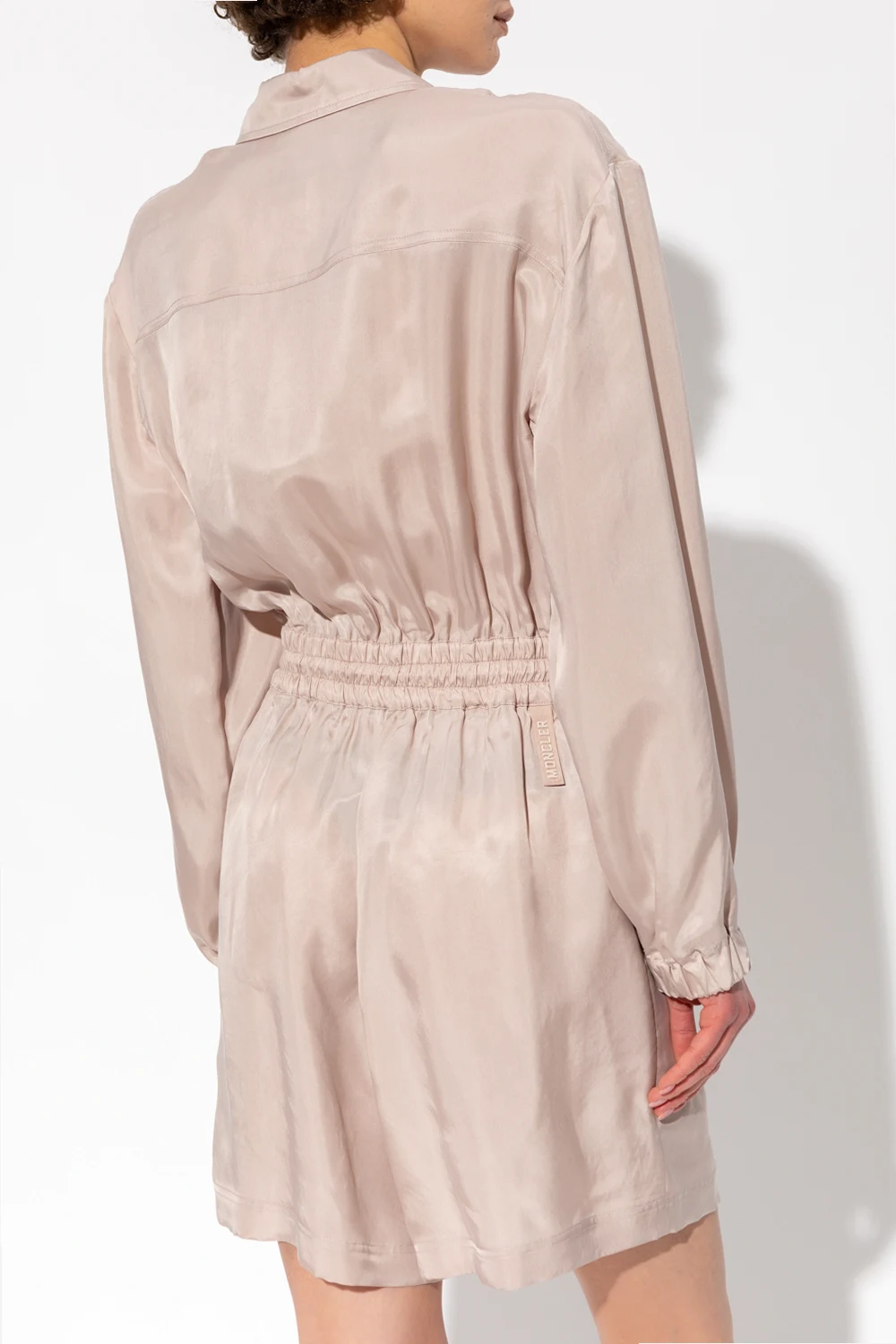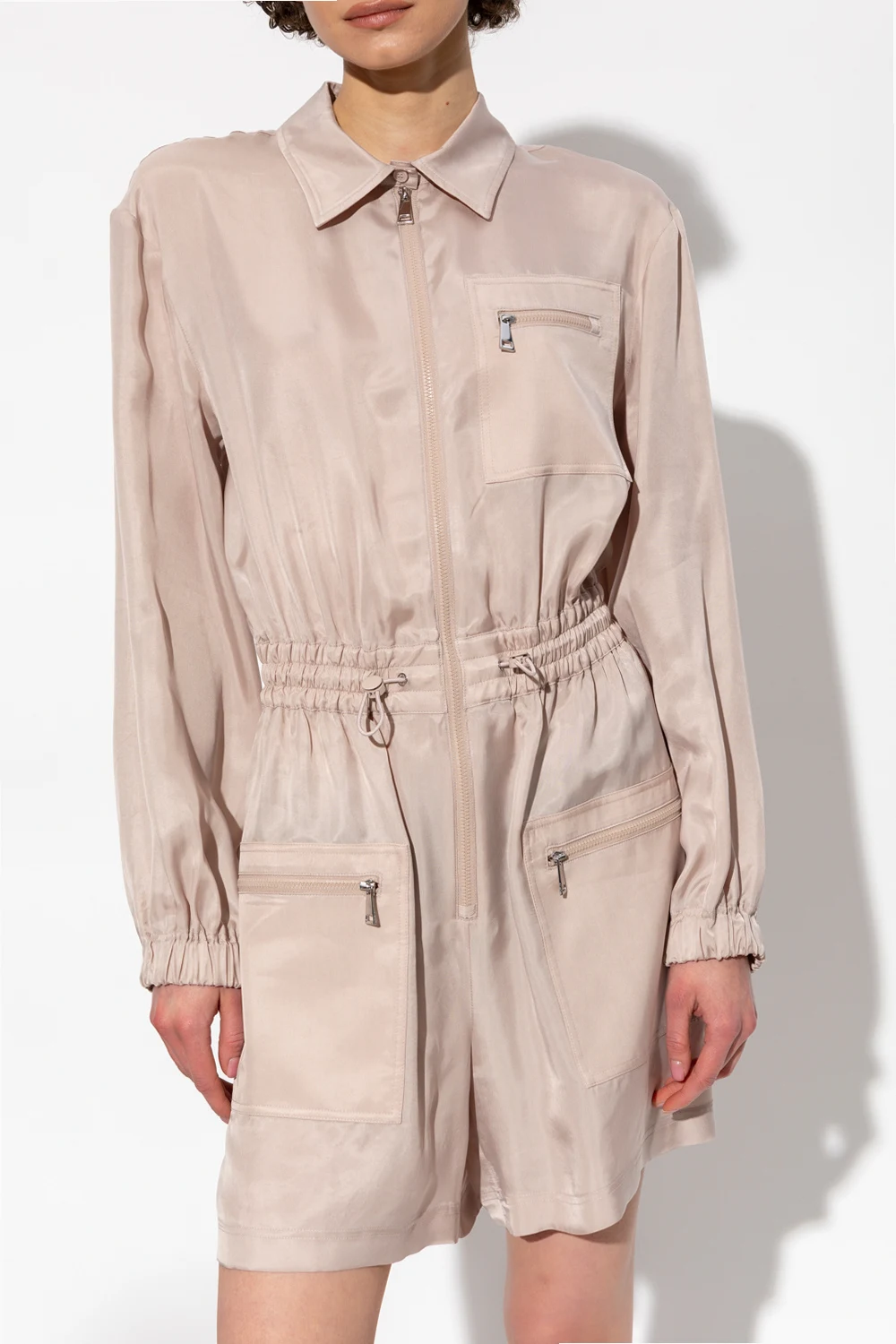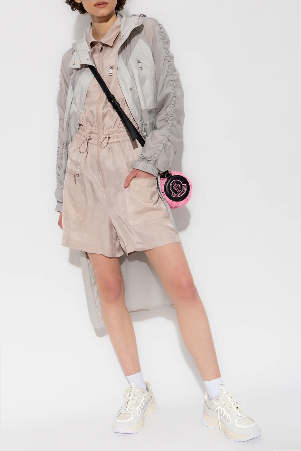 Greyish beige jumpsuit from Moncler. Fastened with a zip, this design features a drawstring waist, three zip pockets and long sleeves with ribbed cuffs.