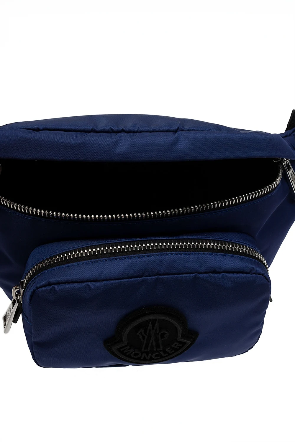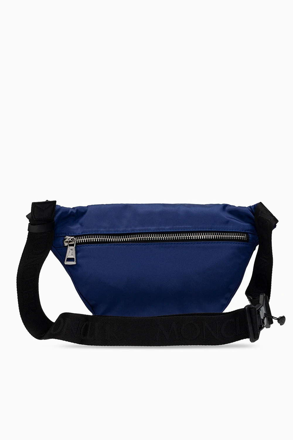 Navy belt bag from Moncler. Fastened with a zip, this design features a zip fastening, raised logo in black, front zip pocket, adjustable belt and one internal compartment.
