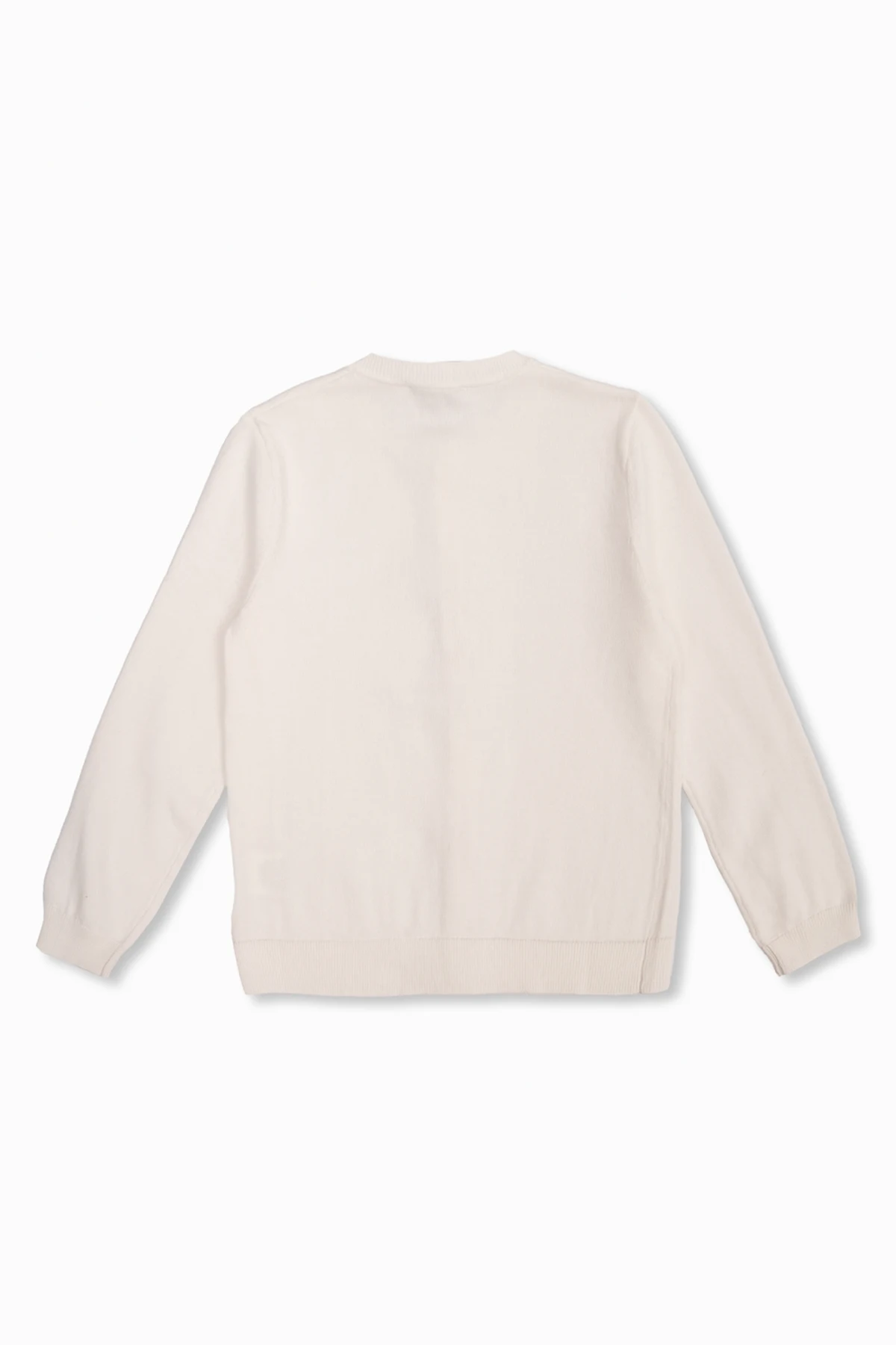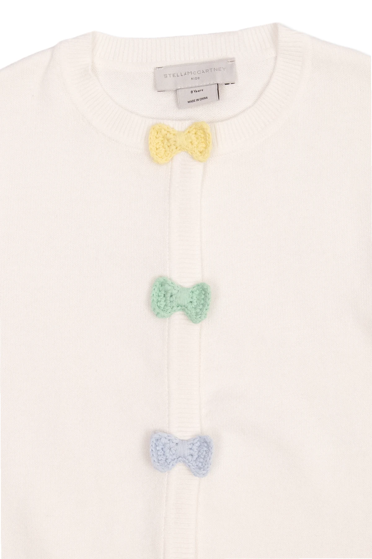 White sweater from Stella McCartney. Made of cotton, this garment features snap buttons, multicolored bows and ribbed trims at the crew neck, hem and cuffs.