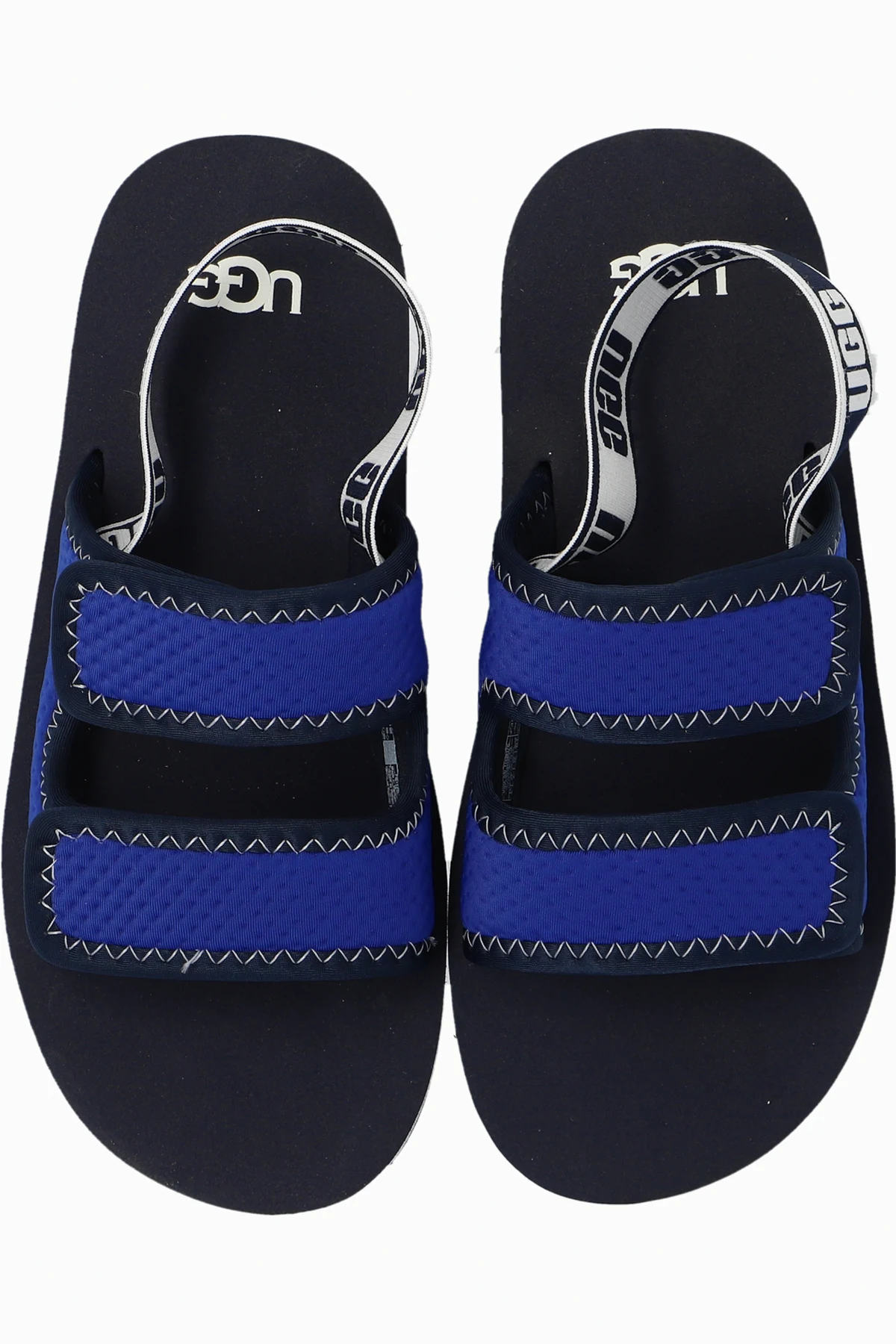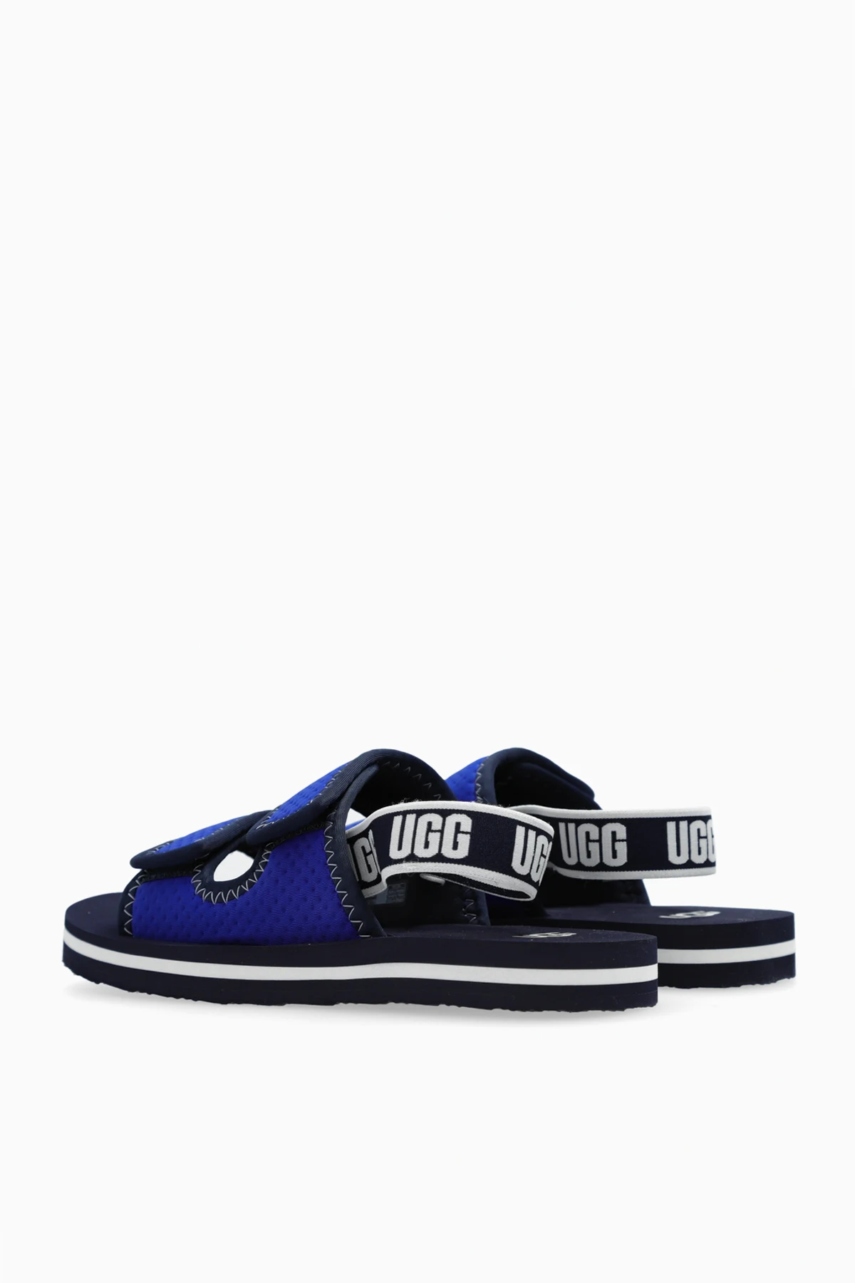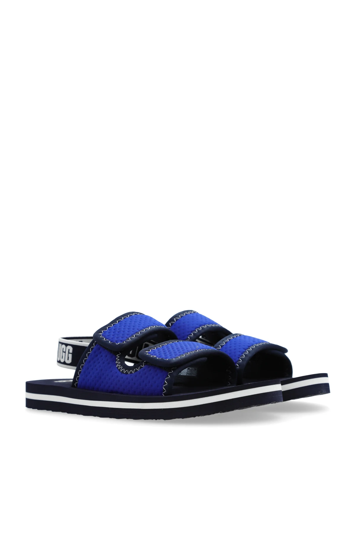 Introducing the exquisite ‘K Lennon Slingback’ Sandals by UGG Kids, a testament to sophisticated style and comfort for the youthful spirit. Crafted with meticulous attention to detail, these navy-blue sandals are the epitome of luxury for children\'s footwear. The classic open-front design, adorned with adjustable hook-and-loop straps, ensures a snug and secure fit, catering to the dynamic needs of growing children. The sandals feature a textile upper in a rich navy hue, complemented by contrasting stitches that add a dash of character. The material not only exudes elegance but also promises enhanced breathability for those warm summer days. A designer logo conspicuously placed on the heel strap underscores the exclusive pedigree of these sandals, marking them as a distinguished choice from the UGG Kids collection. Designed with a flat, black-and-white rubber sole, these sandals offer unparalleled comfort and safety, making them perfect for active children. The blend of functionality and flair makes the ‘K Lennon Slingback’ sandals an indispensable addition to any child\'s summer wardrobe. Why Choose ‘K Lennon Slingback’ Sandals? Classic design with open front and adjustable straps for a perfect fit. High-quality textile upper with breathable texture for comfort. Signature designer logo, emphasizing the exclusive nature of the product. Durable, flat rubber sole for safety and comfort during play.