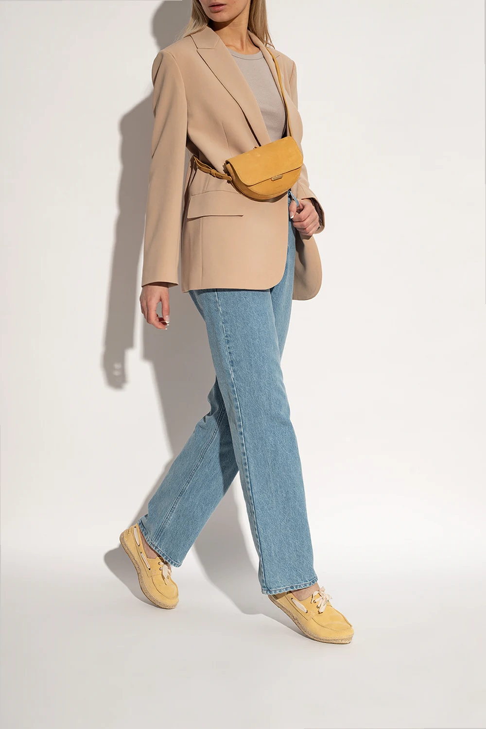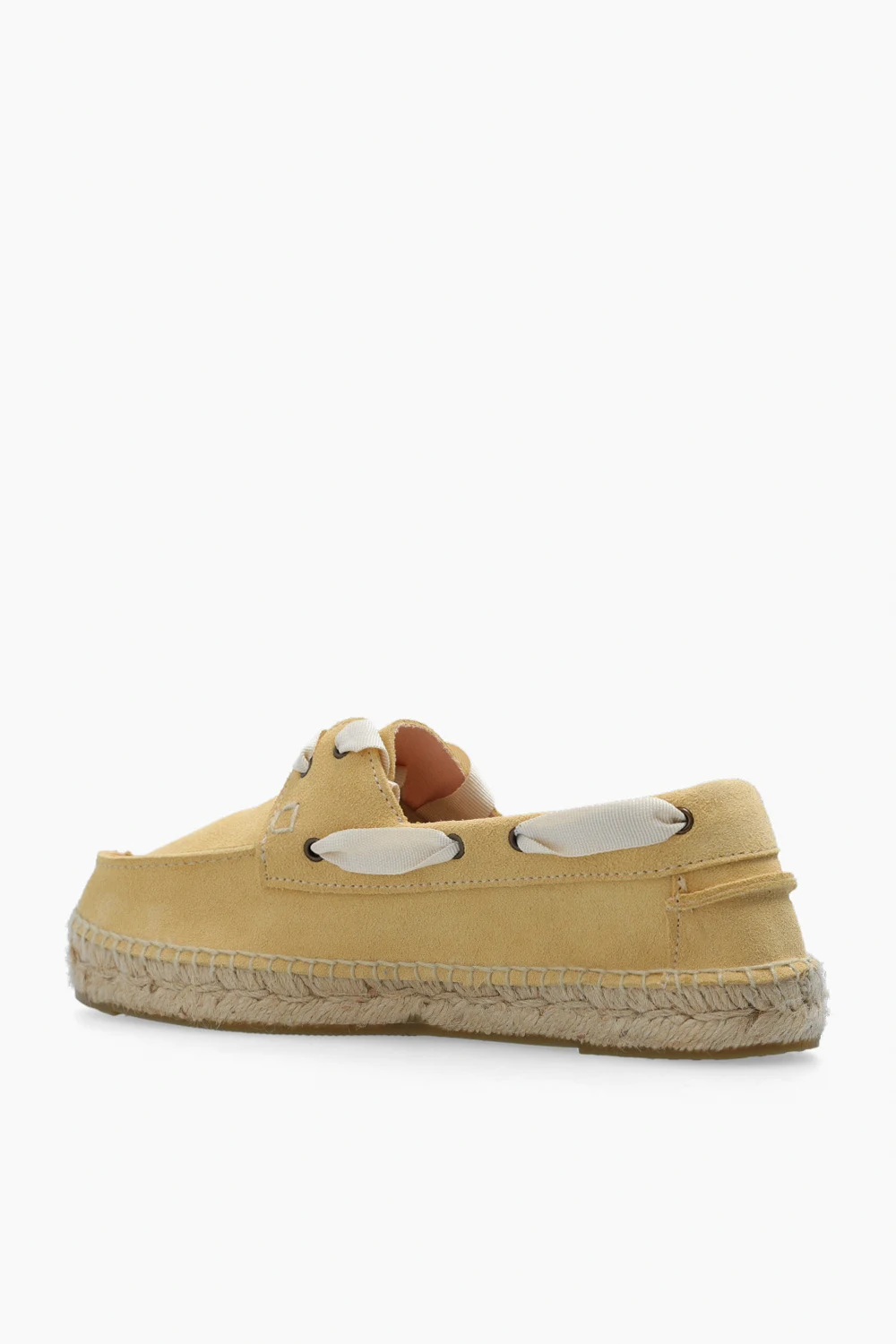 Yellow shoes from Manebi. Made of suede, this lace-up model sits on a natural jute sole with a thin layer of beige rubb