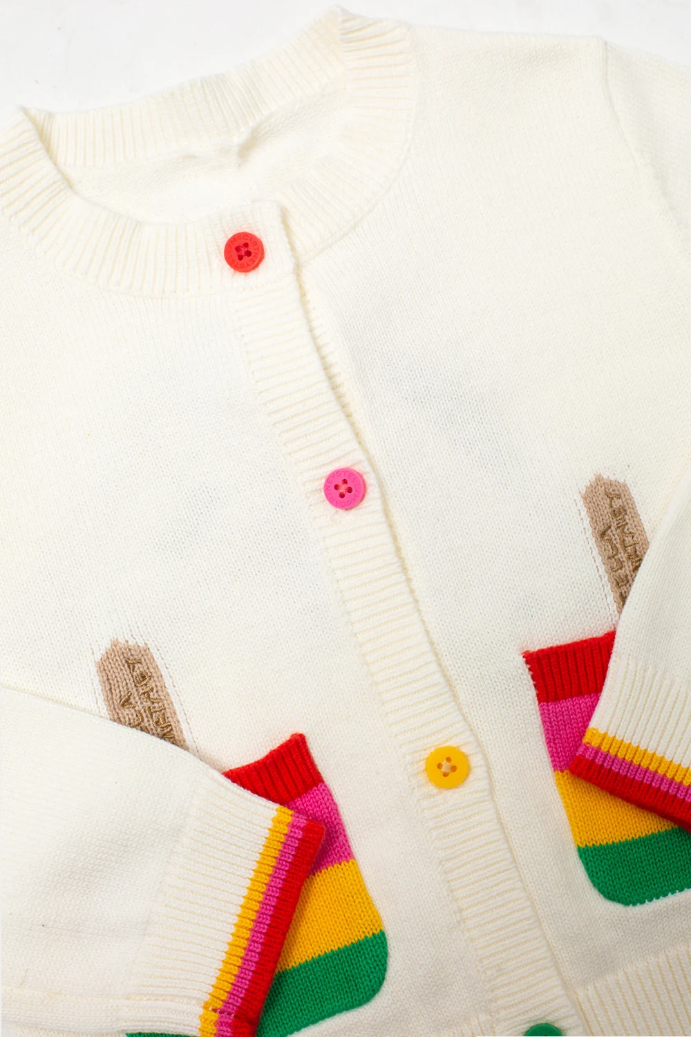 Cream cardigan from Stella McCartney Kids. Crafted from cotton, this style features a round neckline, button fastenings, two slip pockets and an embroidered logo on the front, colourful trims and long sleeves.
