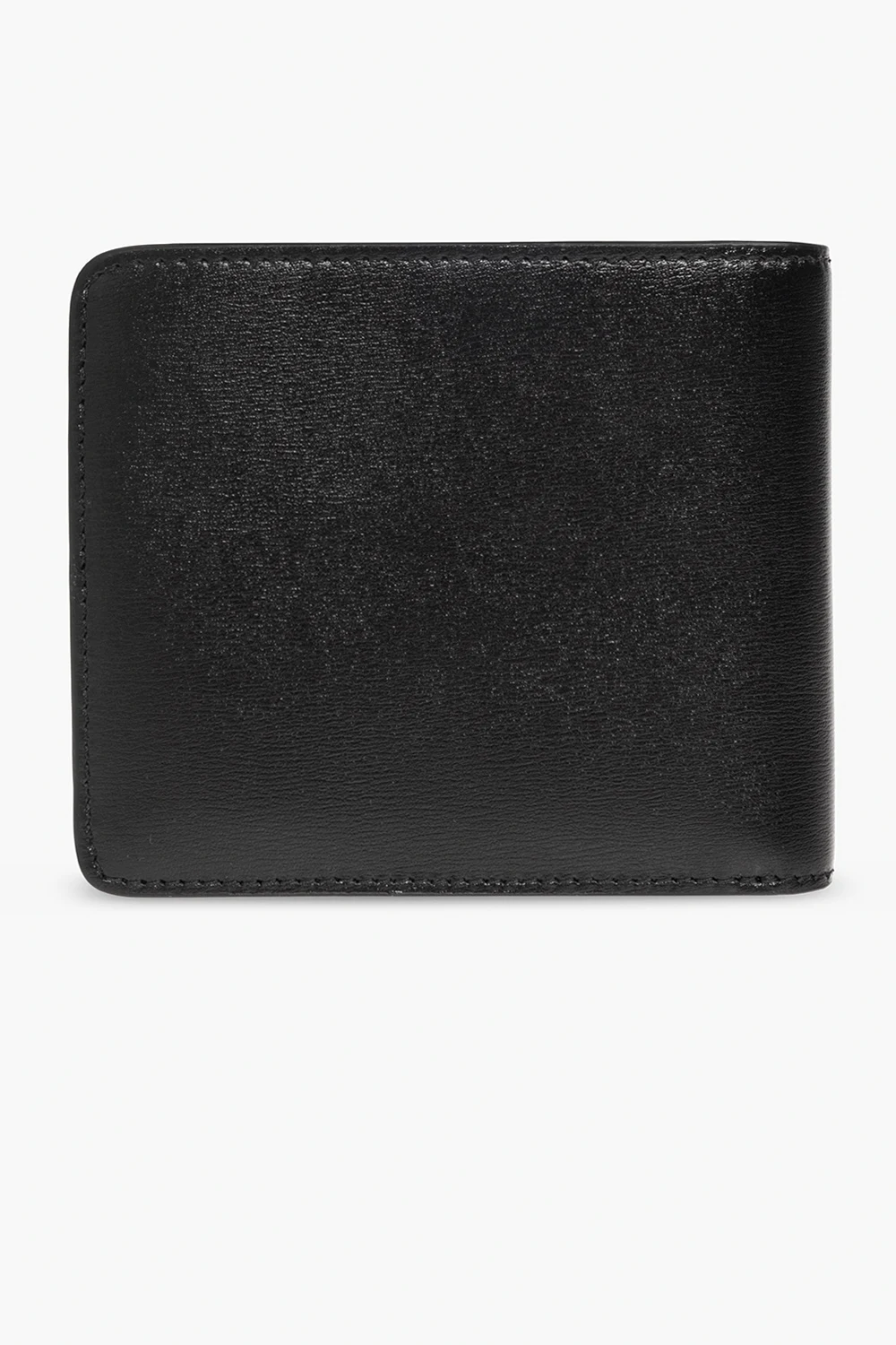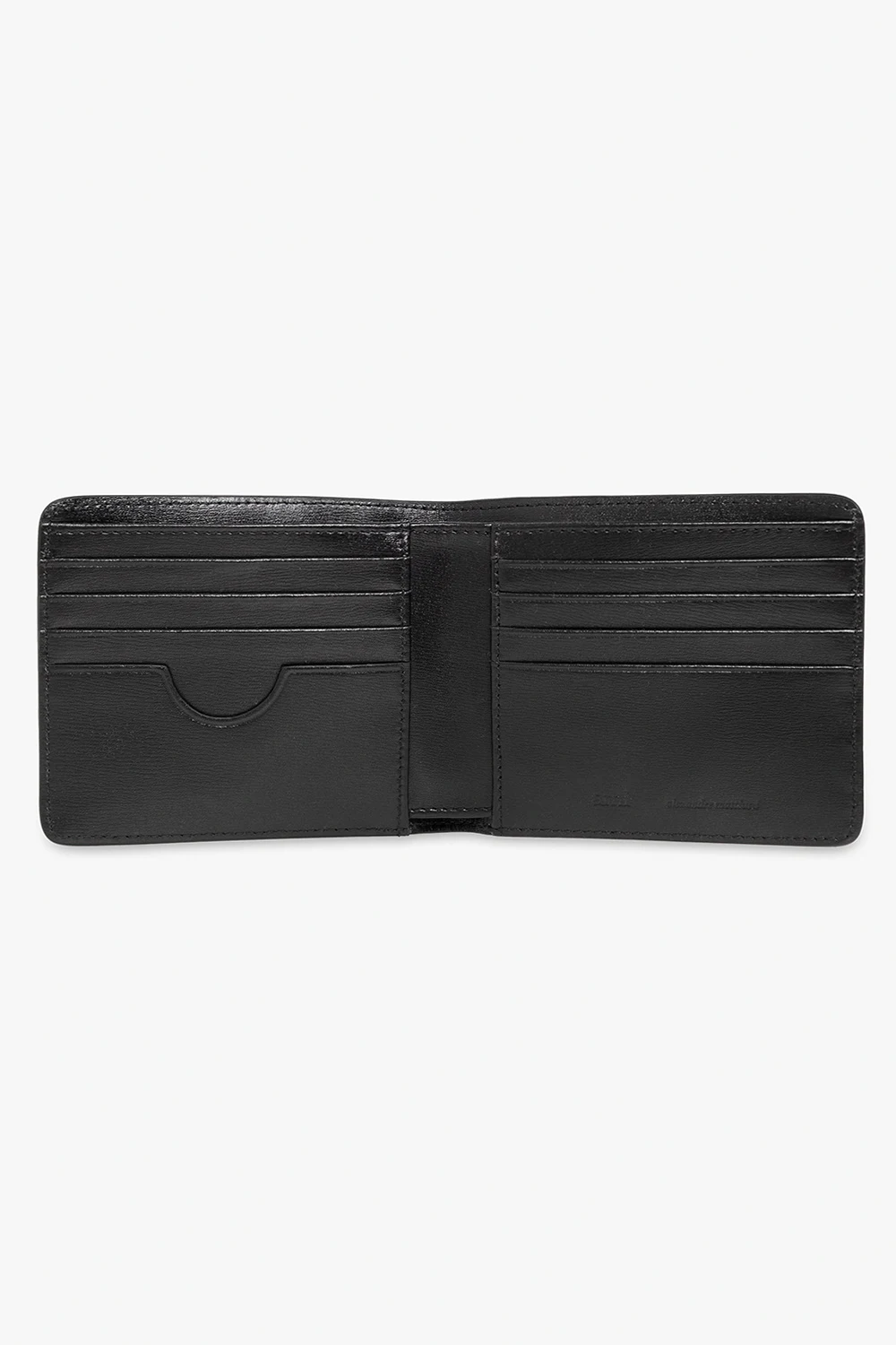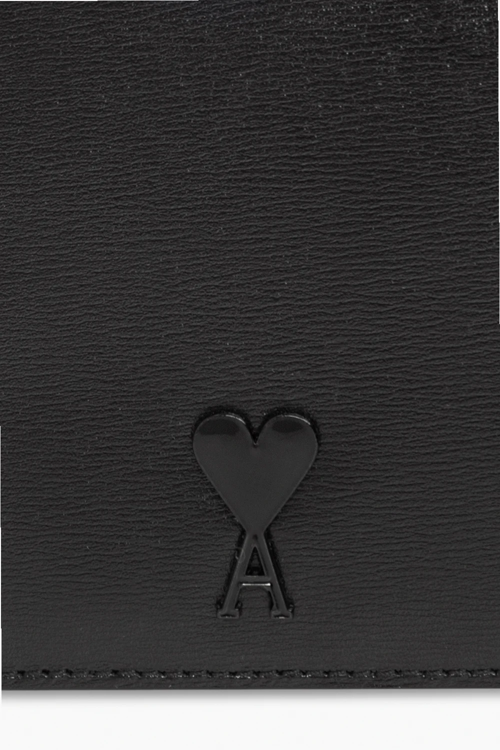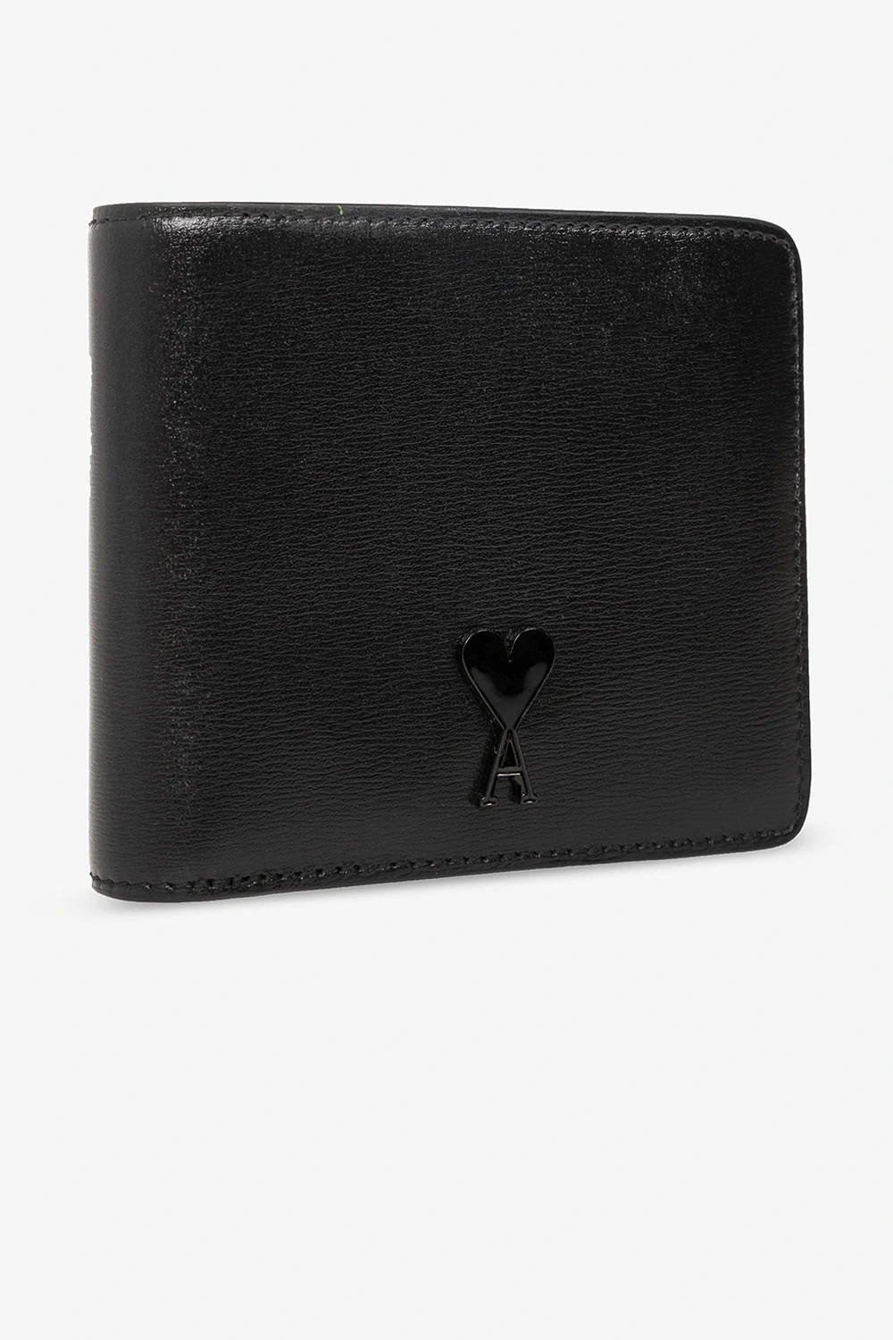 Black bifold wallet from Ami Alexandre Mattiussi. Crafted from leather, this item is decorated with an ‘Ami De Coeur’ logo appliqué and has a bill compartment, two slip pockets and eight card slots inside.