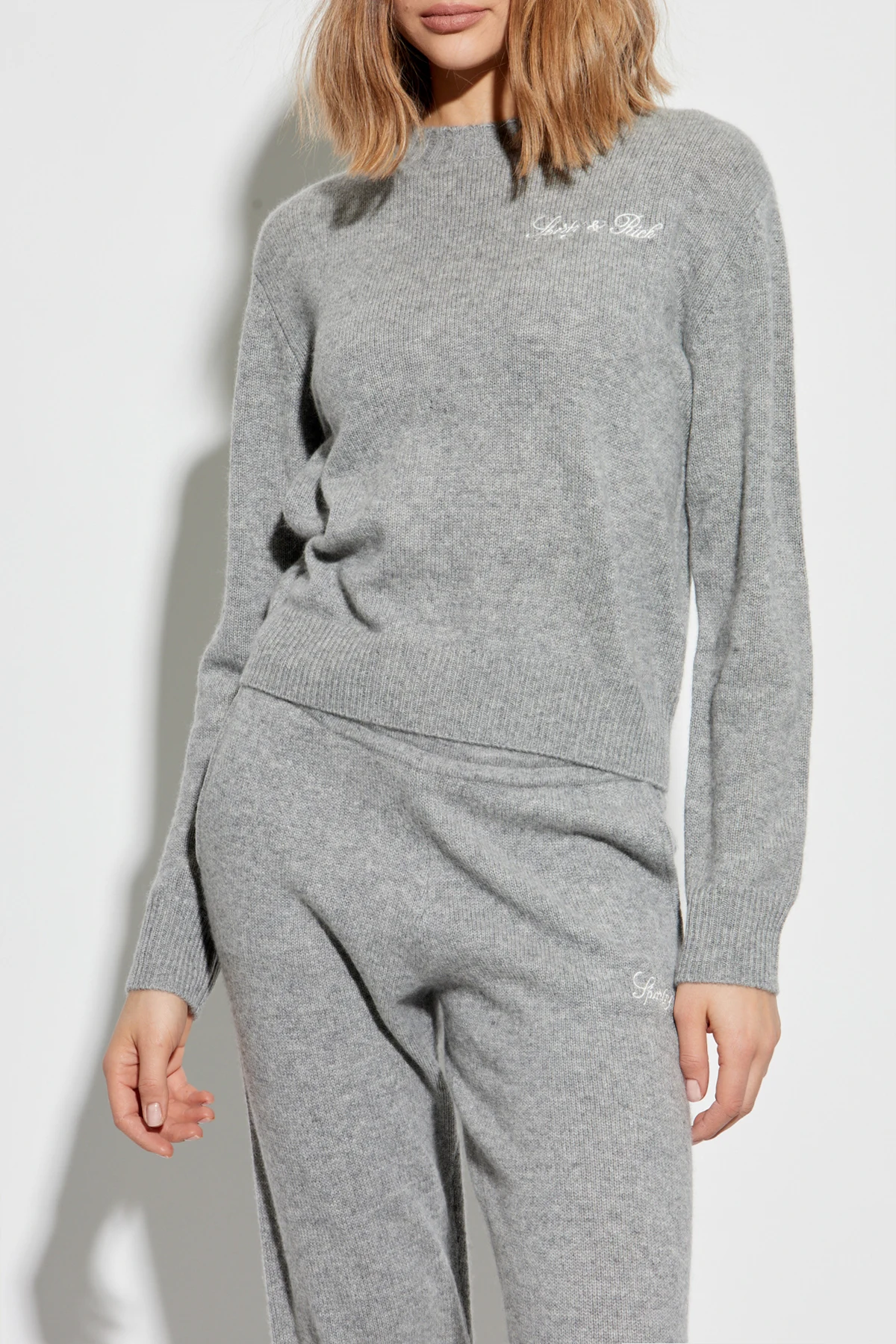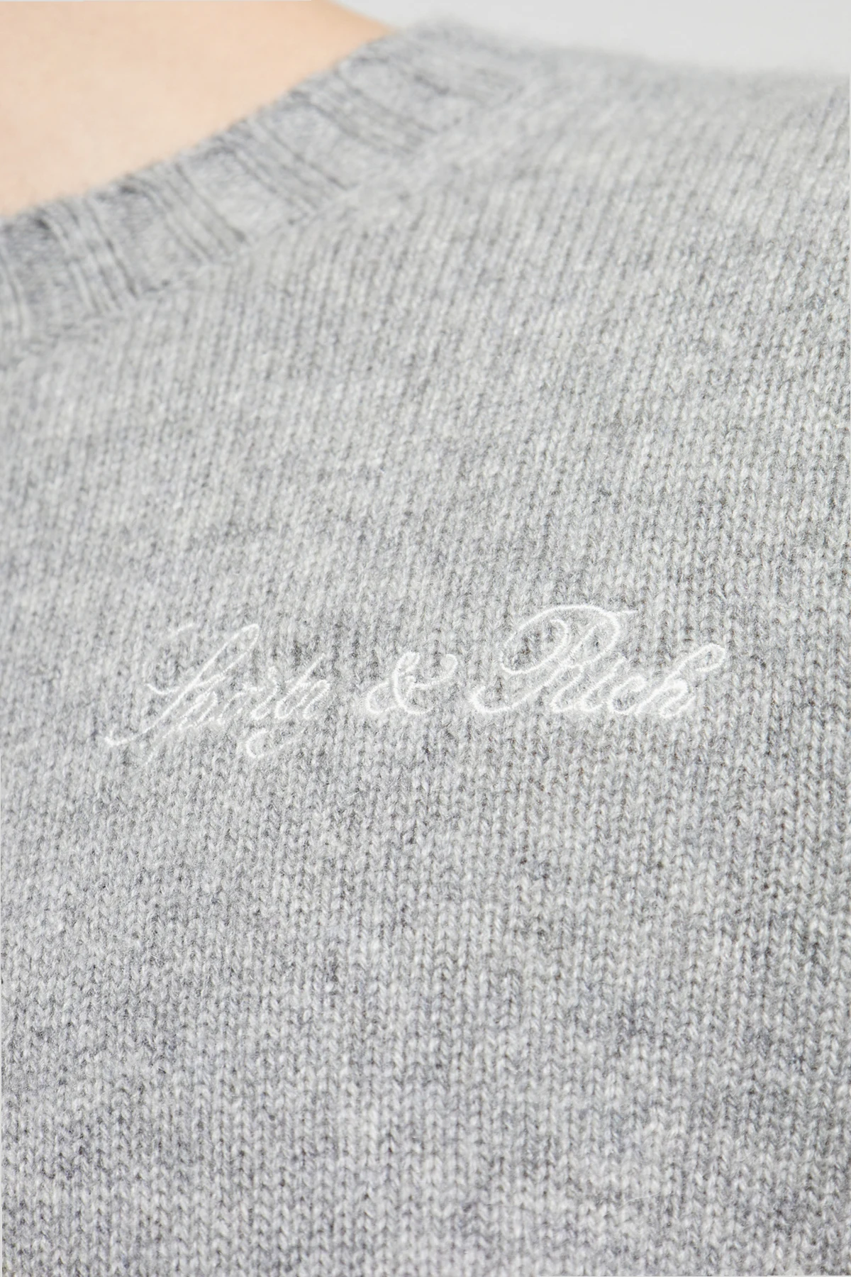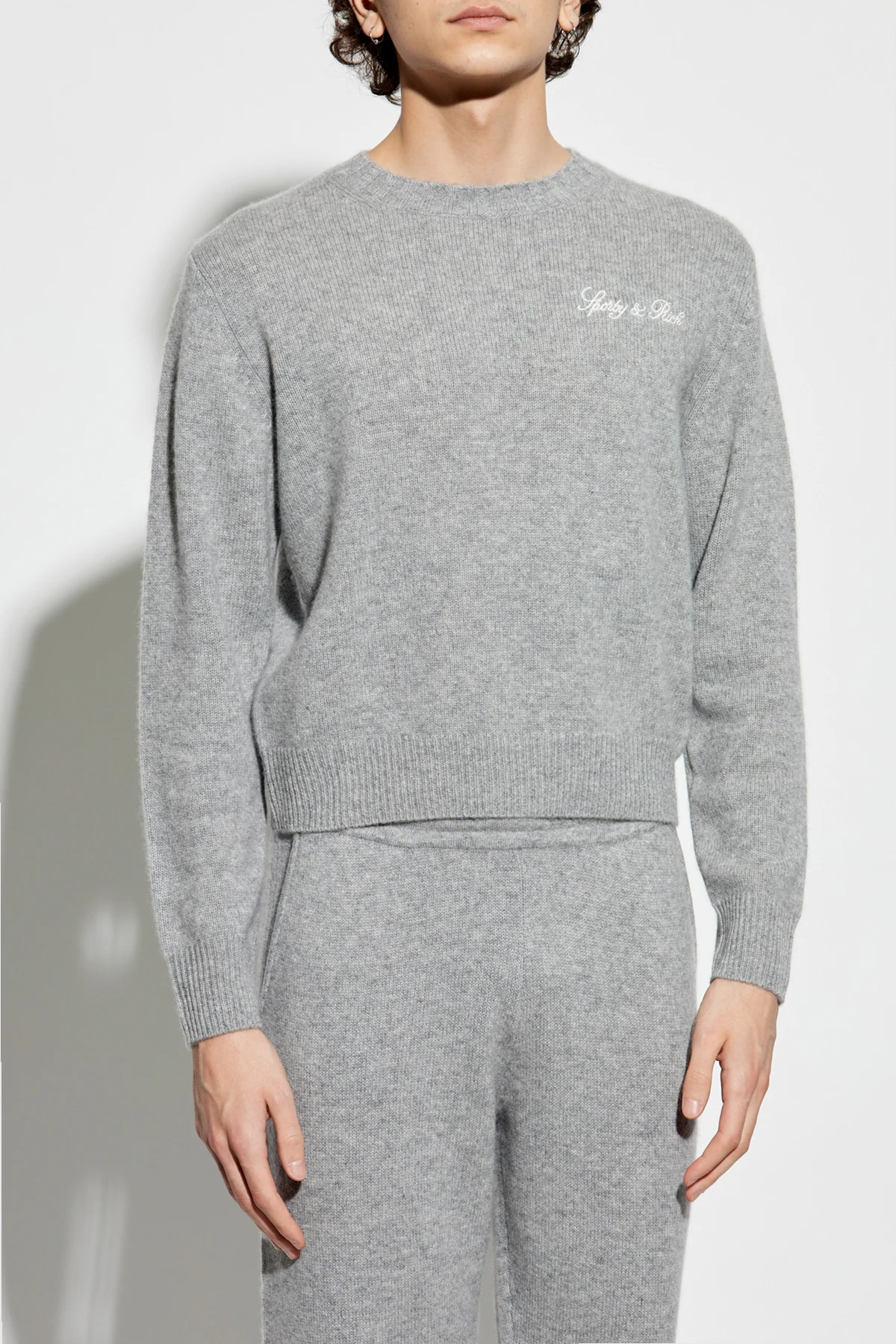 Discover the exquisite Paris Drop Sweater by the renowned brand Sporty & Rich. This elegant gray sweater exemplifies timeless sophistication with its classic cut, long sleeves, and a round neckline. Crafted from a luxurious blend of cashmere and wool, it promises unmatched comfort and a soft touch. The subtle white inscription on the chest adds a touch of elegance, representing either the brand or the collection\'s mantra. This unisex piece is designed to flatter diverse silhouettes, making it a versatile addition to any wardrobe. Its minimalist yet refined design showcases the exclusive nature of the collection. Why Choose This Product? Exquisite blend of cashmere and wool for ultimate comfort. Timeless design with a classic cut suitable for any occasion. Unisex style that complements various body types. Exclusive piece from the distinguished Sporty & Rich brand.