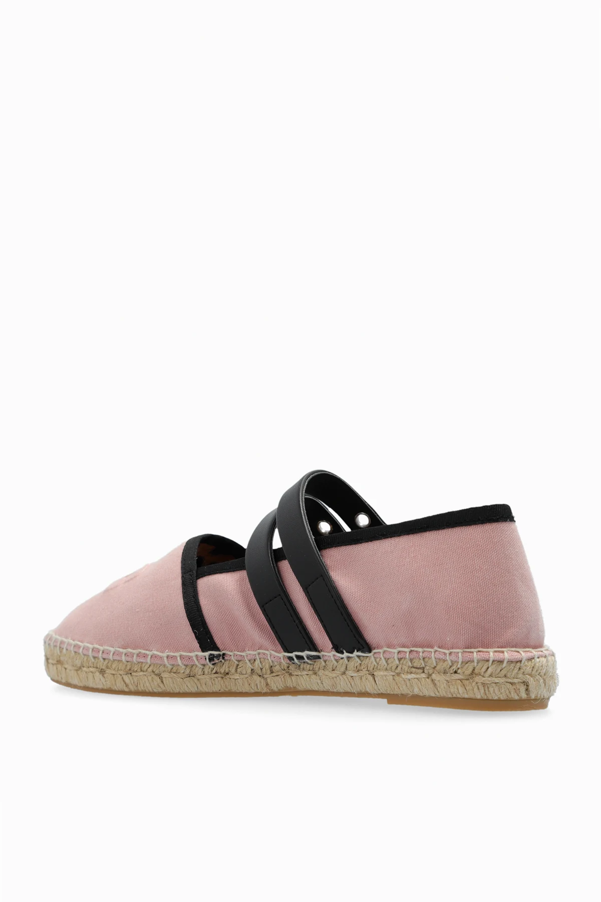 Introducing the captivating Ganni Espadrilles with Buckles, epitomizing summer elegance. Their delicate pink shade harmonizes with the subtle shine of black metal buckles, creating a refined contrast that commands attention. The classic, low-profile design with a rounded toe underscores the versatility of this footwear, while the braided jute sole adds authenticity and lightness. The upper part of the shoe, crafted from smooth fabric, ensures comfort, while the inner lining, adorned with the designer\'s logo and a leopard print, represents a clear symbol of luxury and prestige. The metal buckles not only accentuate the espadrilles\' aesthetics but also provide adjustable fitting, ensuring a perfect fit for the foot. Why Purchase This Product? Distinctive design highlighted by contrasting colors and metal buckles. Exclusive details, such as the designer\'s logo and leopard print on the inner lining. High-quality craftsmanship ensuring comfort and durability. Versatile style, making the espadrilles a perfect match for various summer outfits.