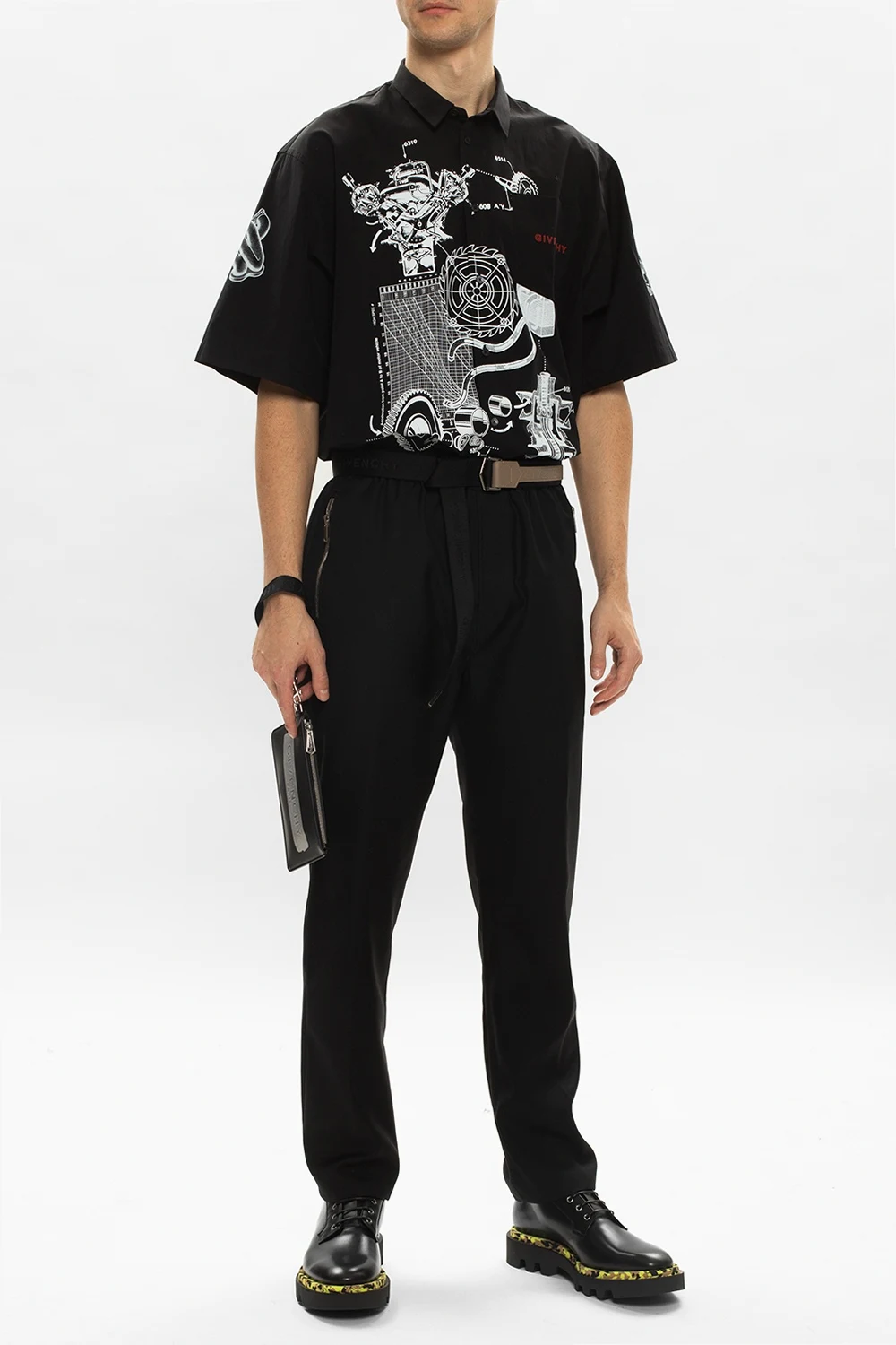 Black derby platform shoes from Givenchy. Crafted from calf leather, this a lace-up model features an embossed logo, green, brown and black camo pattern and black rubber sole.