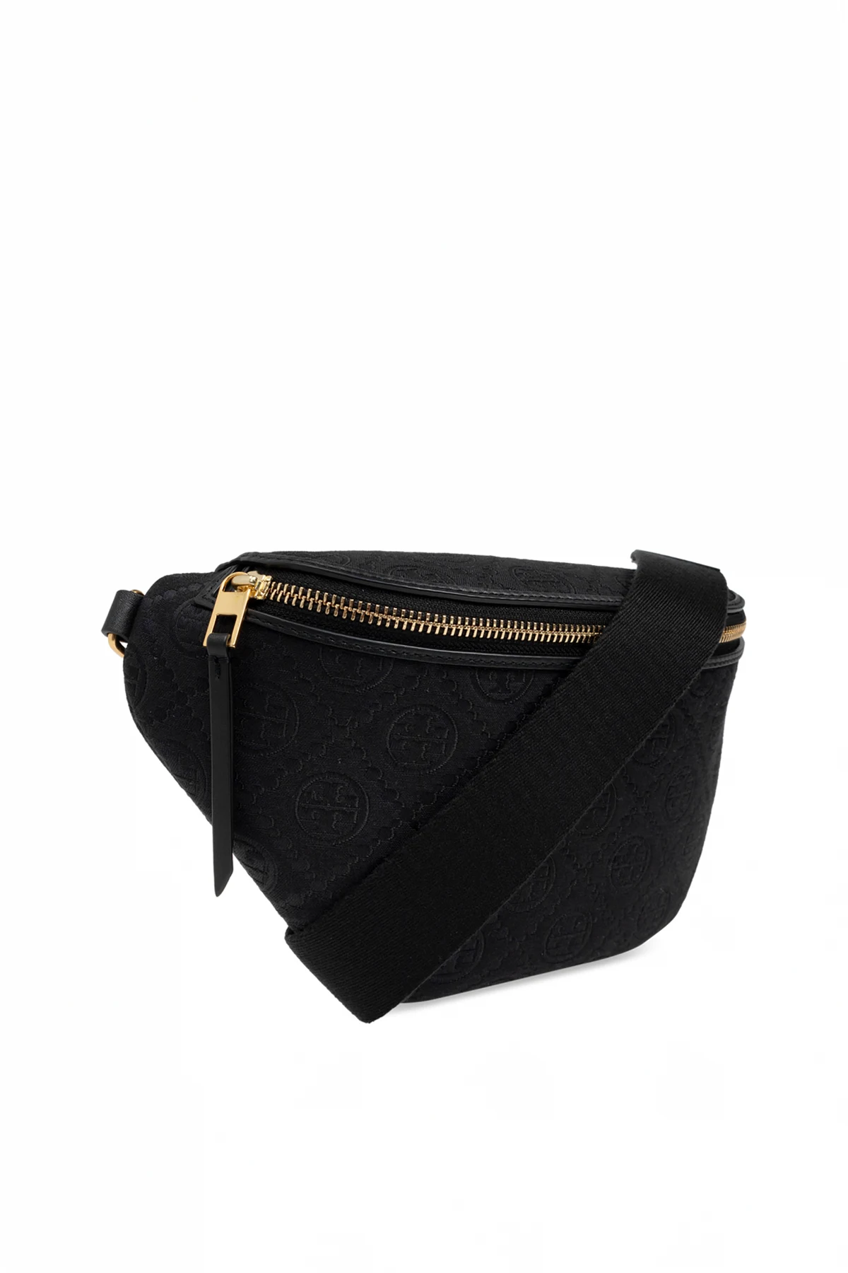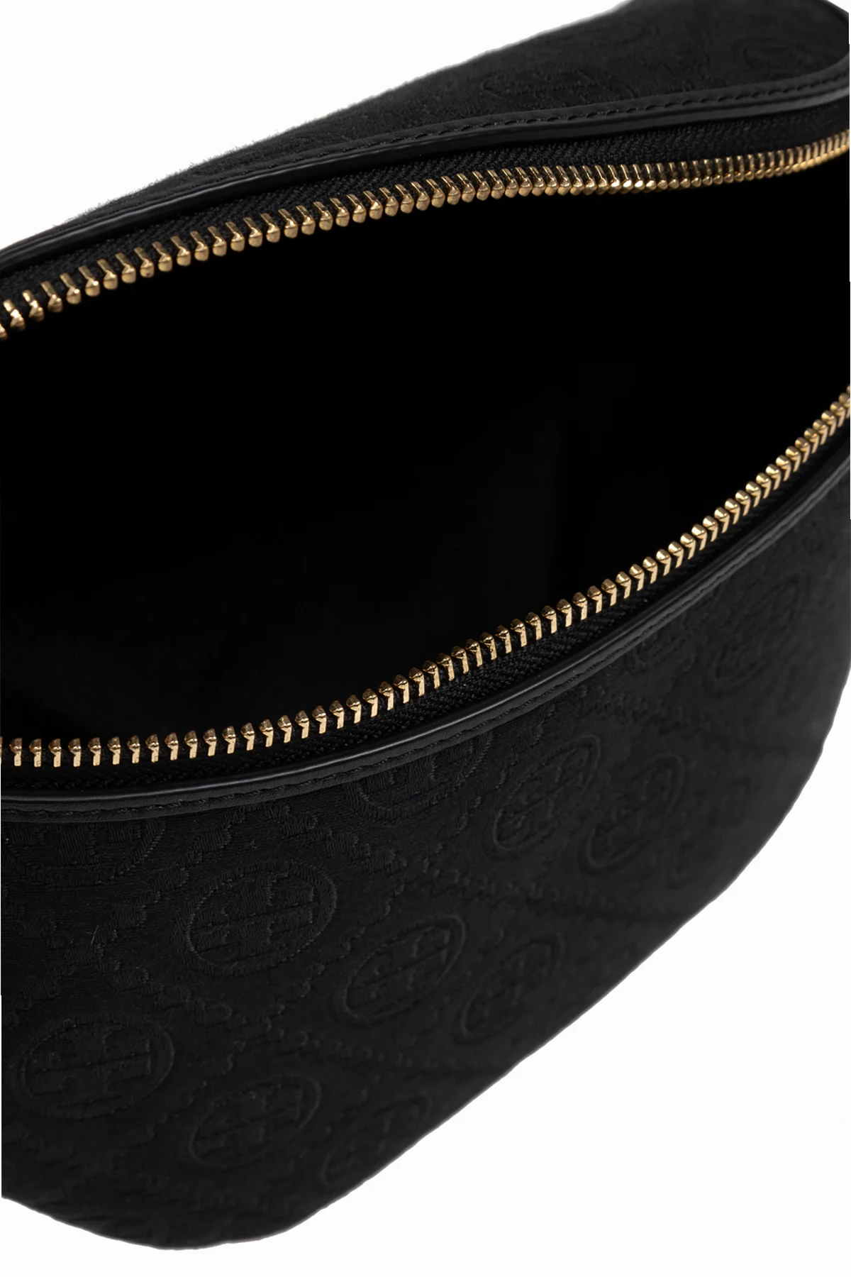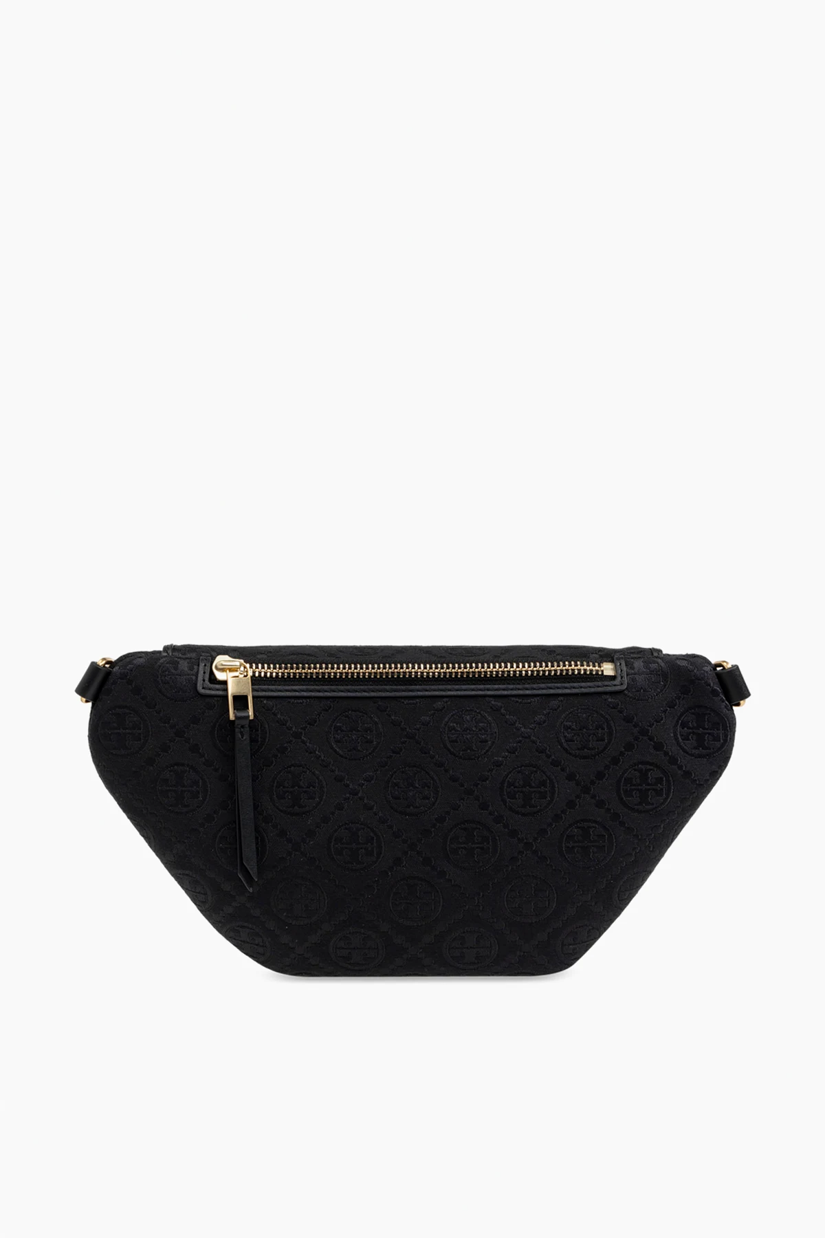 Experience the epitome of sophistication with the T Monogram Belt Bag from the exclusive collection of renowned designer Tory Burch. This exquisite black bag features a classic trapezoidal shape, crafted from luxurious leather adorned with a delicate embossed monogram pattern. The subtle elegance of the design is accentuated by golden elements, including a zipper and clasps, elevating its opulence. The wide, adjustable strap ensures comfort and versatility, allowing you to wear it effortlessly on various occasions. The golden zipper provides easy access to the spacious interior compartment, making it both functional and stylish. Why Choose This Product? Elegant black color with a timeless design. Luxurious embossed monogram pattern. Golden accents for a touch of sophistication. Comfortable, adjustable strap for versatile wear. Designed by the esteemed Tory Burch, known for empowering women through fashion.